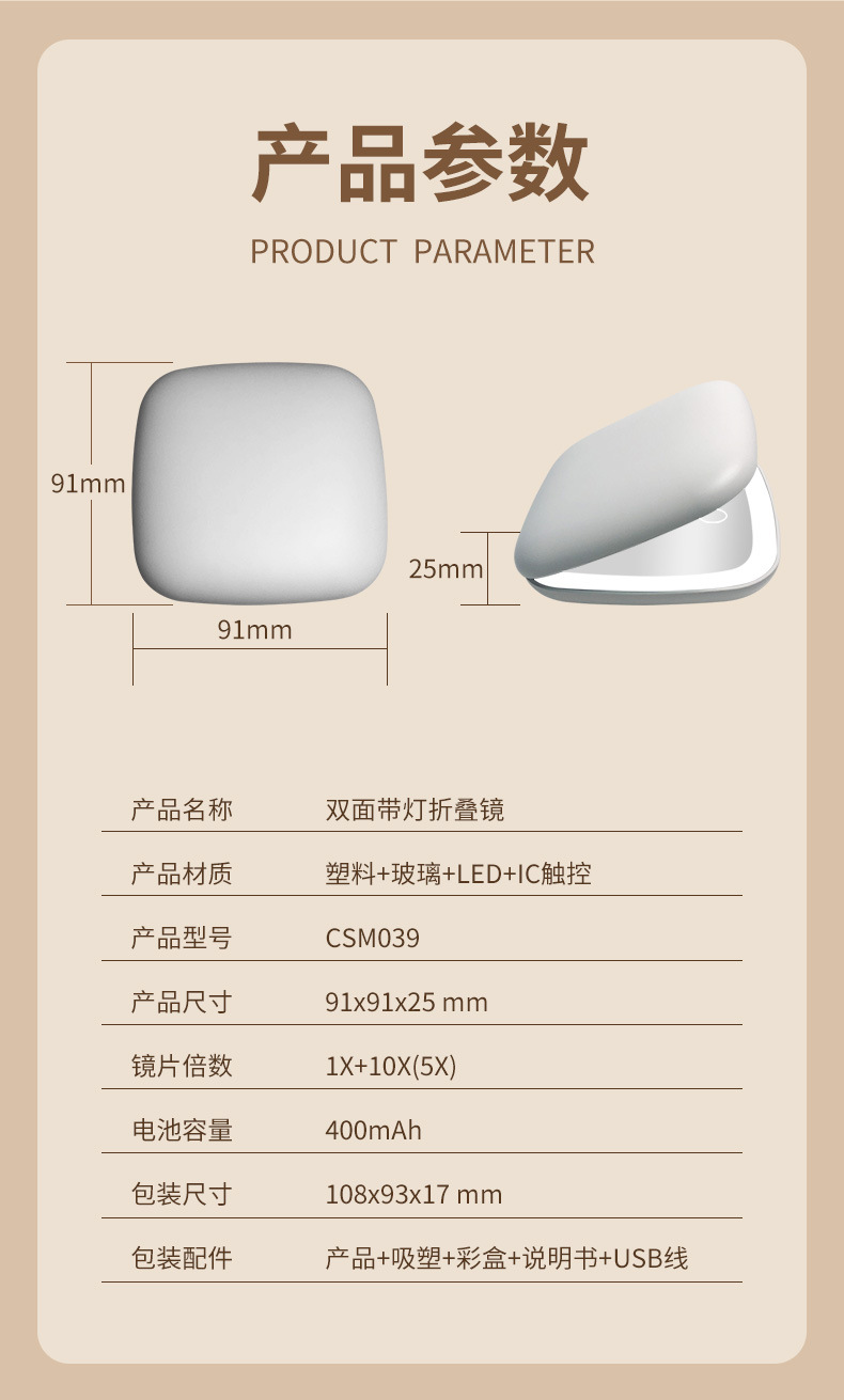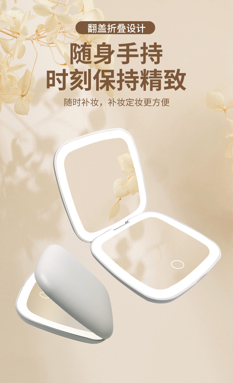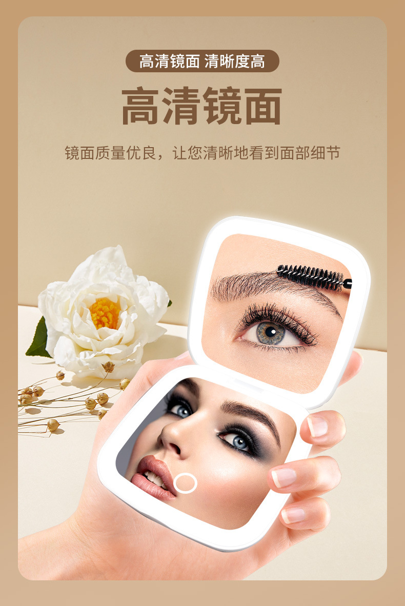 Diseño de fábrica regalo pequeño espejo Amazon LED espejo de maquillaje con luz Flip portátil de mano pequeño espejo logo