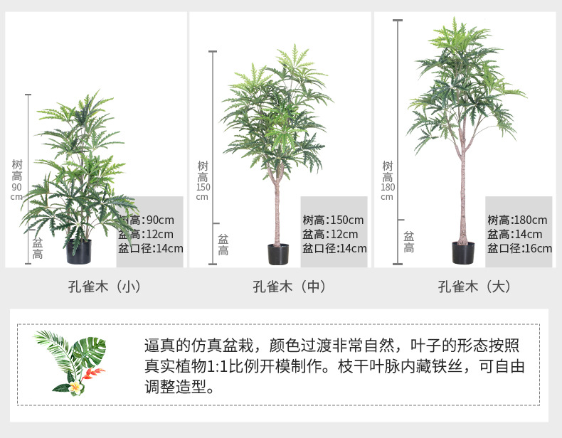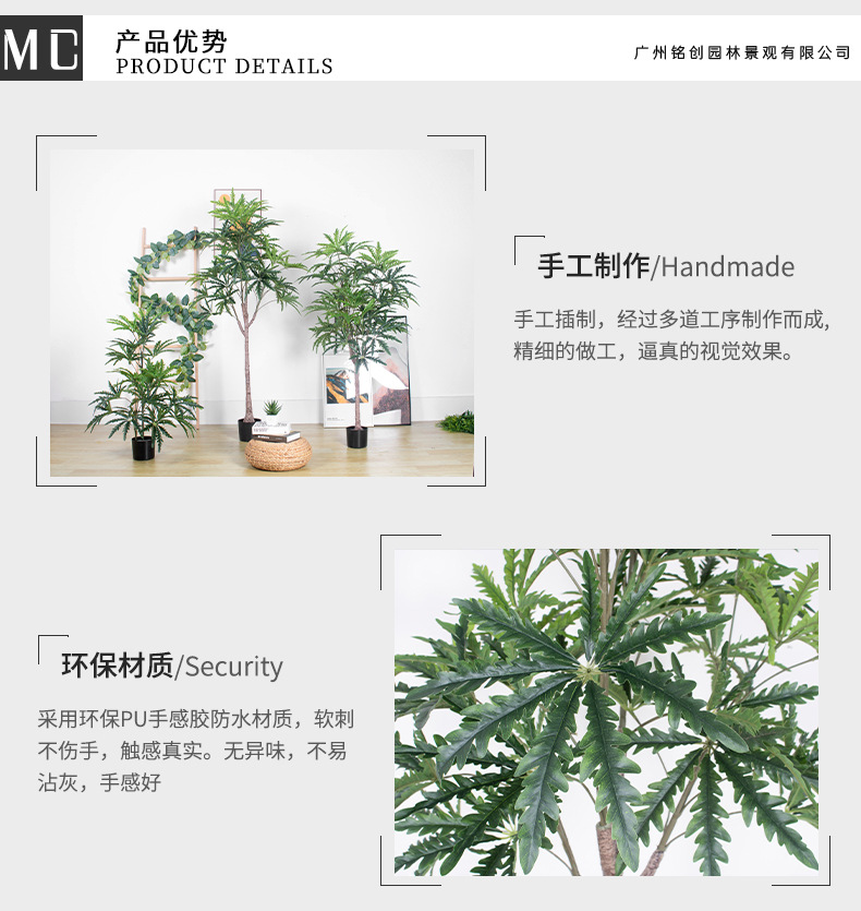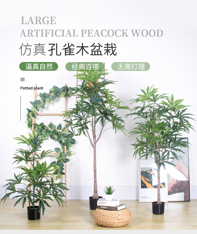 仿真植物客厅带盆孔雀木 仿真绿植八角叶盆栽室内大型孔雀木绿植