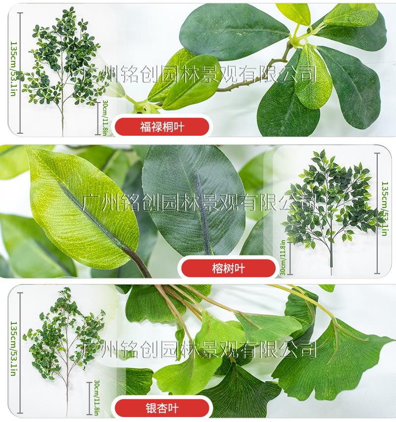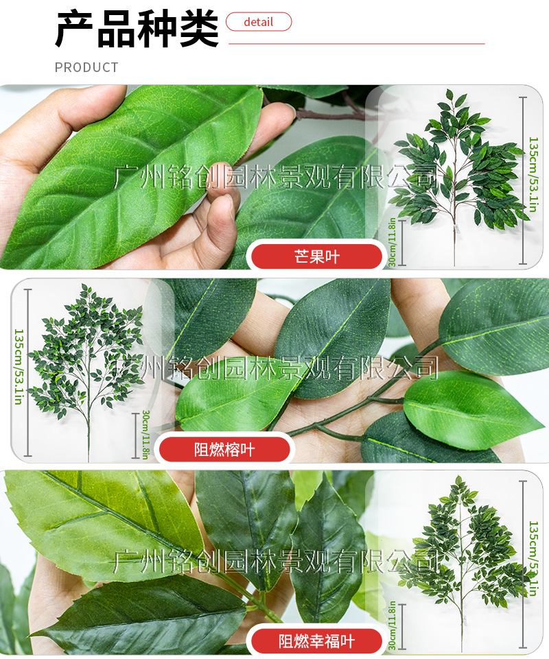 | Colores | 5 hojas de baniano tenedor,6 pinzas verdes,6 hojas de mango tenedor,6 hojas de felicidad ignífugas,Hojas de eucalipto retardantes de llama |