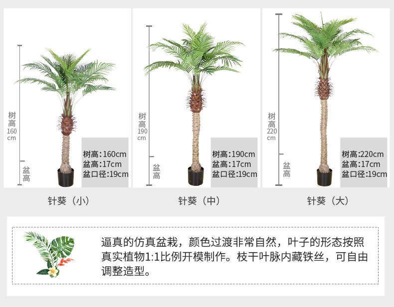 室内大型仿真美丽针葵造景椰子树 仿真针葵绿植盆栽葵树棕榈树