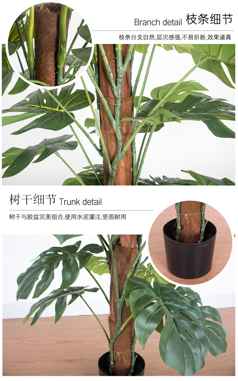 Paquete de tallo marrón sala de estar gran planta en maceta con simulación en maceta Monstera estilo selva tropical planta de hoja grande simulación espalda de tortuga