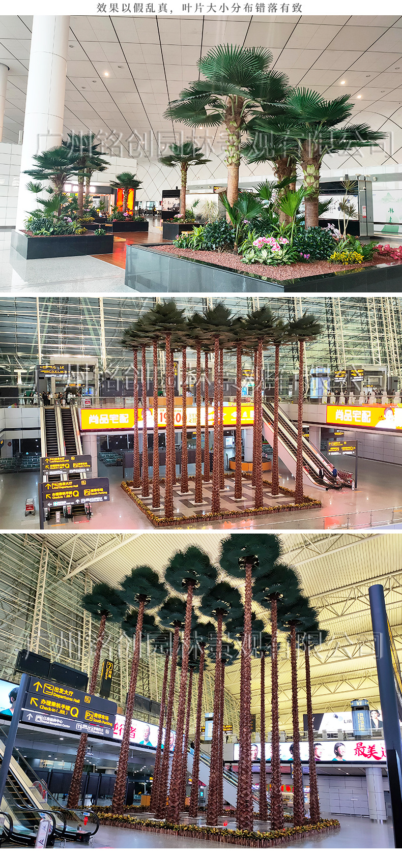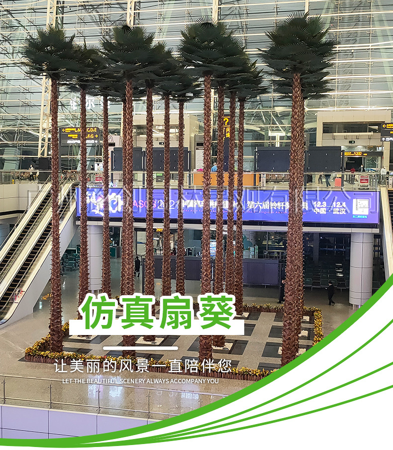 车站机场大厅景观装饰仿真假树扇葵蒲葵树 大型玻璃钢仿真棕榈树
