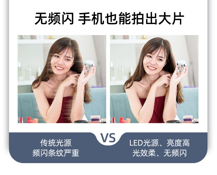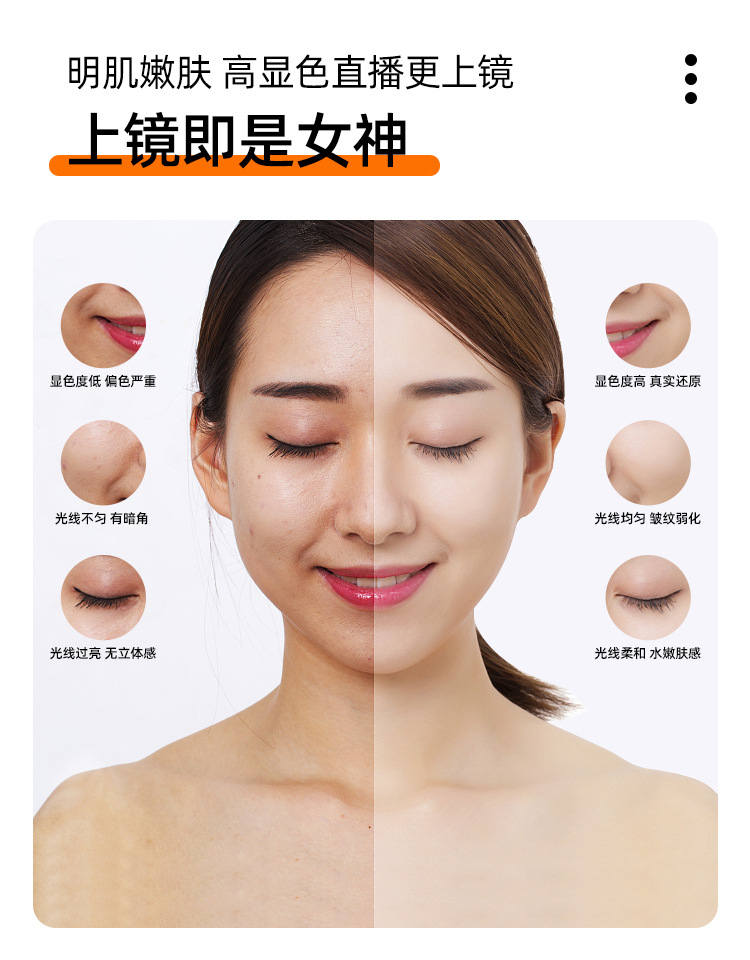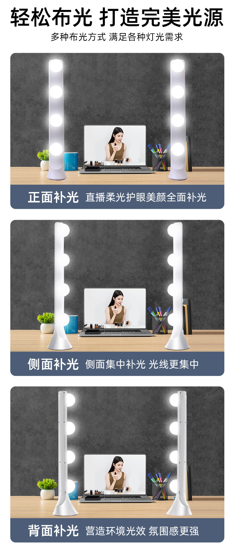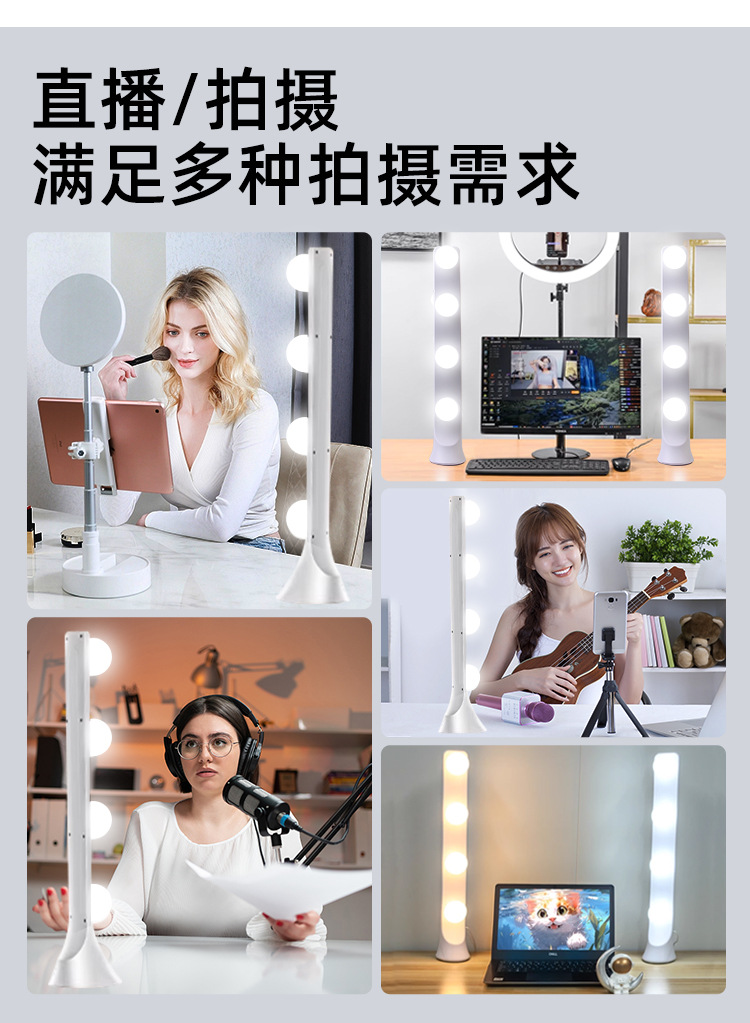 | Especificaciones | [Actualizar y resaltar] una sola fila 4 bombillas (de tres colores sin electrodeless atenuación),[Versión mejorada e iluminada] Doble fila de 8 bombillas (atenuación continua de tres colores),[Versión mejorada e iluminada] Doble fila de 8 bombillas (atenuación continua de tres colores) + soporte para teléfono móvil de escritorio,[Versión mejorada e iluminada] Doble fila de 8 bombillas (atenuación continua de tres colores) + lámpara de brillo y belleza con clip de 20 cm + posición de cámara única,[Versión mejorada e iluminada] Doble fila de 8 bombillas (atenuación continua de tres colores) + belleza de escritorio de 20 cm y luz para la piel + posición de cámara única,[Versión mejorada e iluminada] Doble fila de 8 bombillas (atenuación continua de tres colores) + belleza de escritorio de 26 cm y luz para la piel + posición de cámara única |