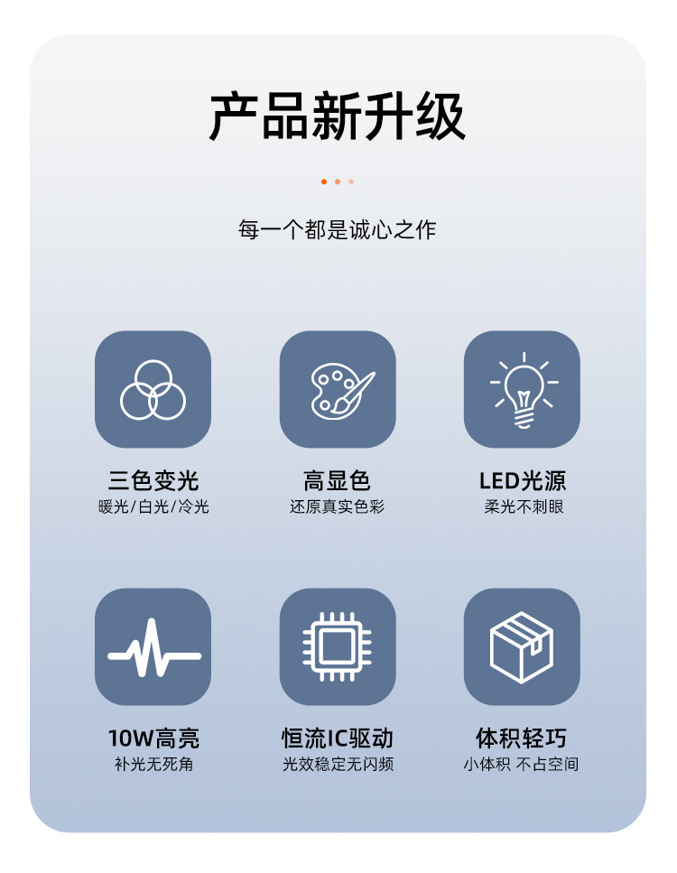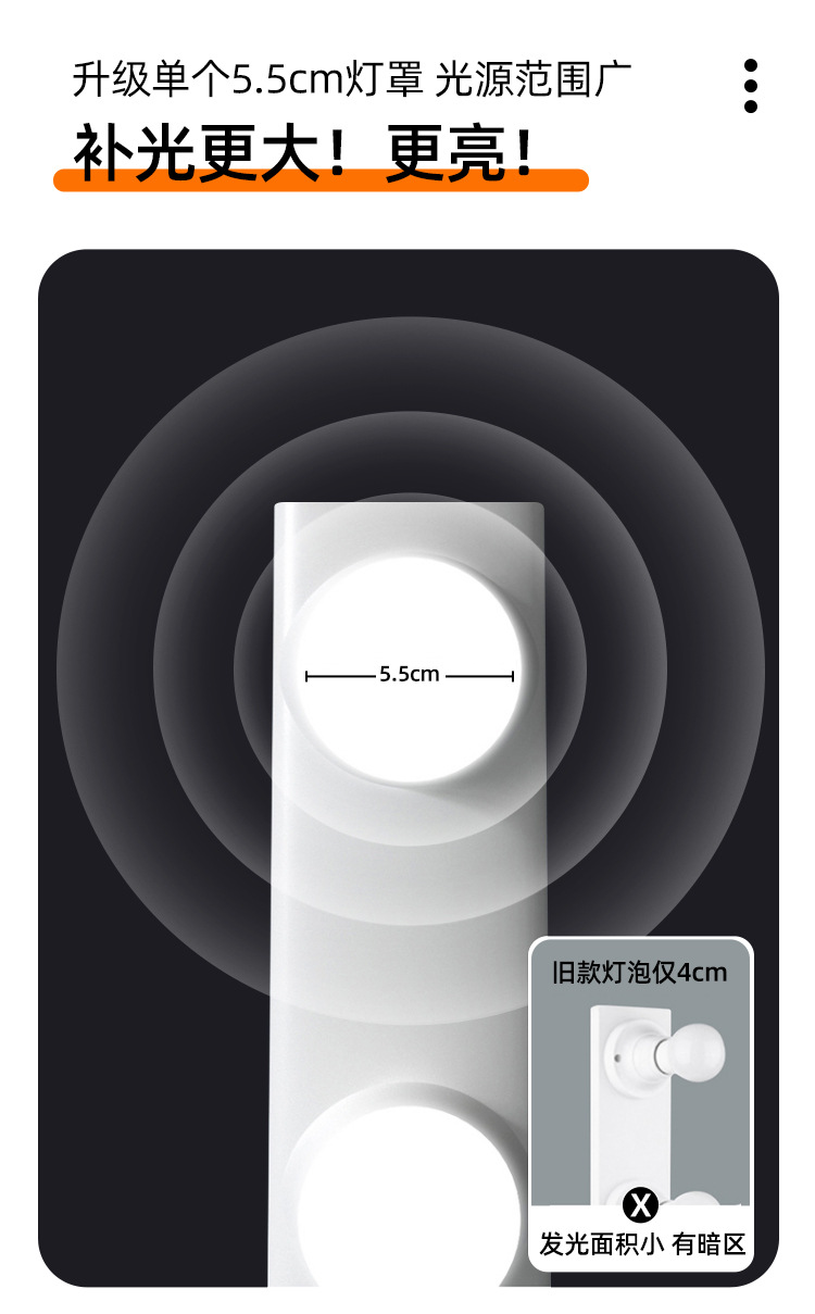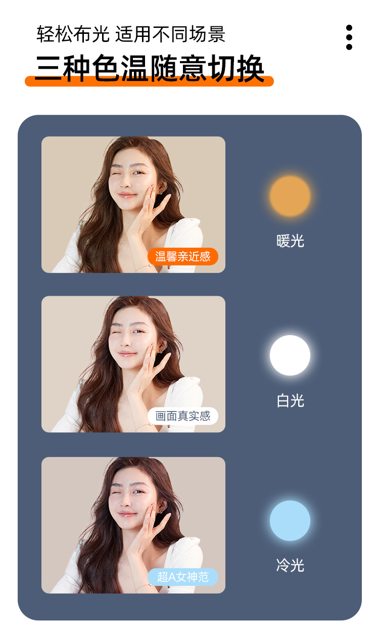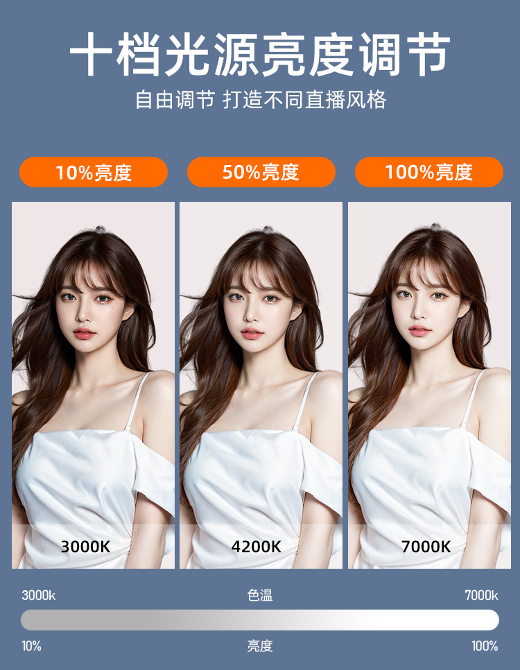 | Especificaciones | [Actualizar y resaltar] una sola fila 4 bombillas (de tres colores sin electrodeless atenuación),[Versión mejorada e iluminada] Doble fila de 8 bombillas (atenuación continua de tres colores),[Versión mejorada e iluminada] Doble fila de 8 bombillas (atenuación continua de tres colores) + soporte para teléfono móvil de escritorio,[Versión mejorada e iluminada] Doble fila de 8 bombillas (atenuación continua de tres colores) + lámpara de brillo y belleza con clip de 20 cm + posición de cámara única,[Versión mejorada e iluminada] Doble fila de 8 bombillas (atenuación continua de tres colores) + belleza de escritorio de 20 cm y luz para la piel + posición de cámara única,[Versión mejorada e iluminada] Doble fila de 8 bombillas (atenuación continua de tres colores) + belleza de escritorio de 26 cm y luz para la piel + posición de cámara única |
