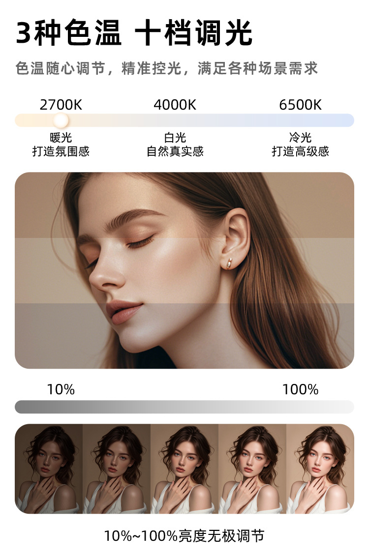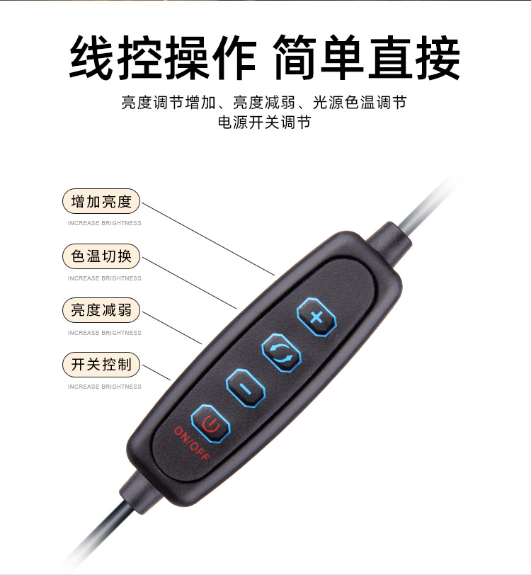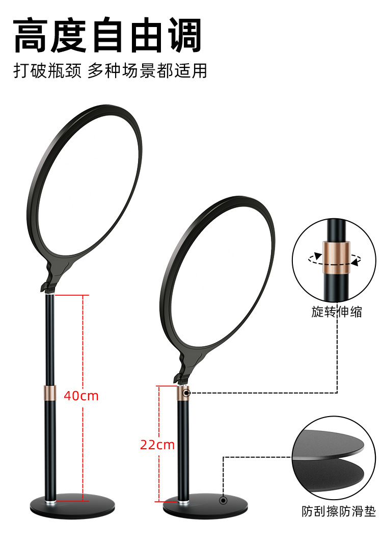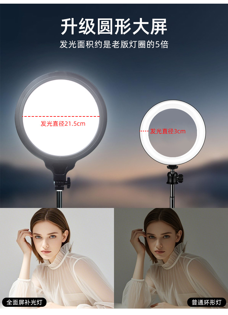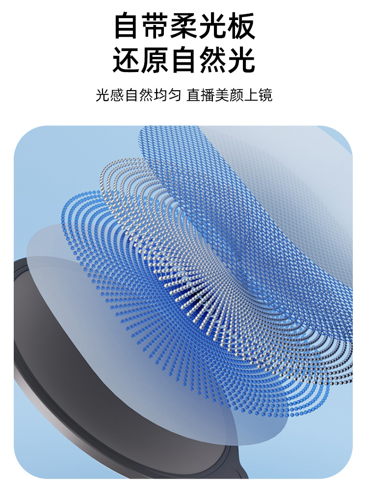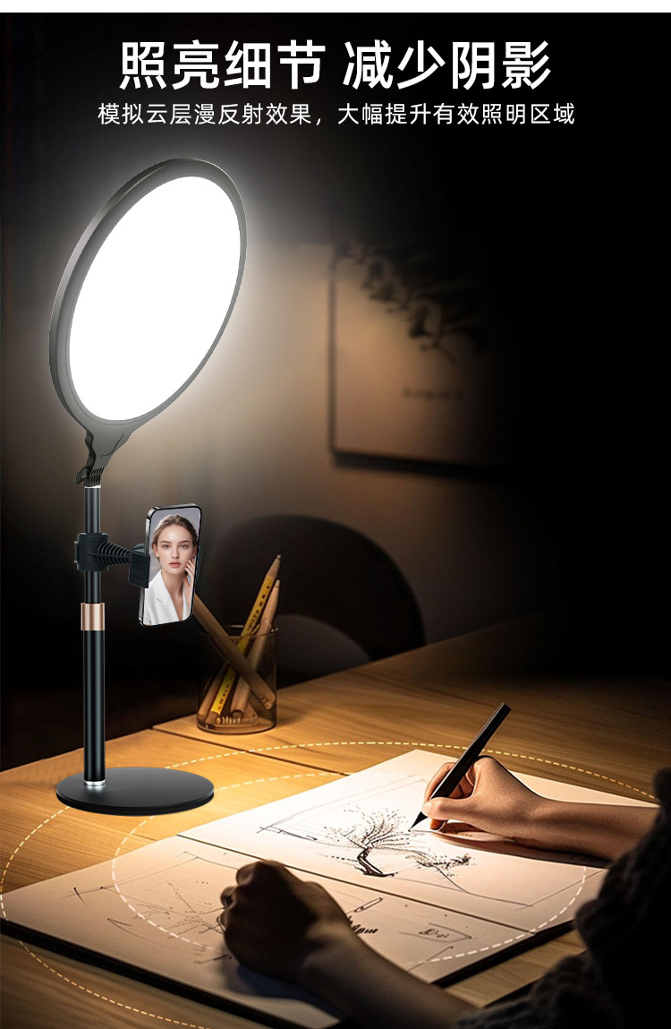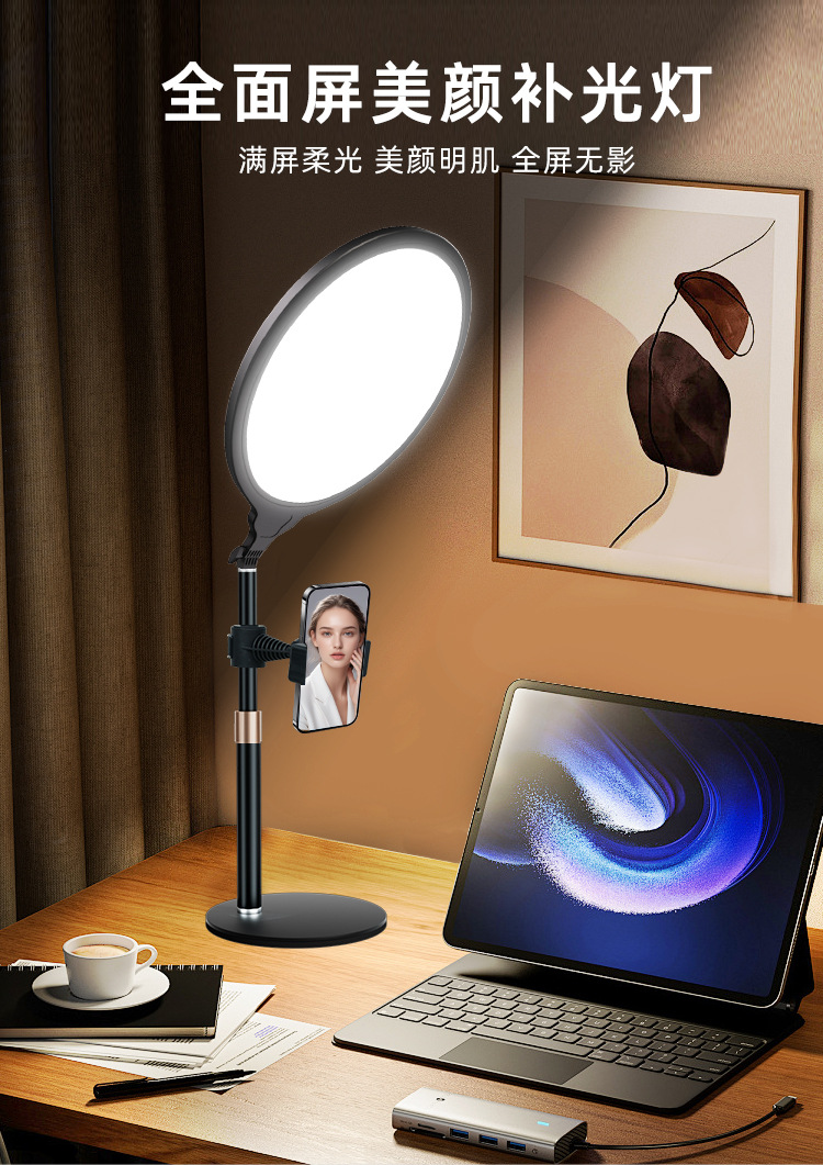 | Número de artículo | Luz de pantalla completa de 26CM, luz de relleno de escritorio, luz de relleno redonda, luz de belleza, luz en vivo, luz de iluminación facial, luz de video |