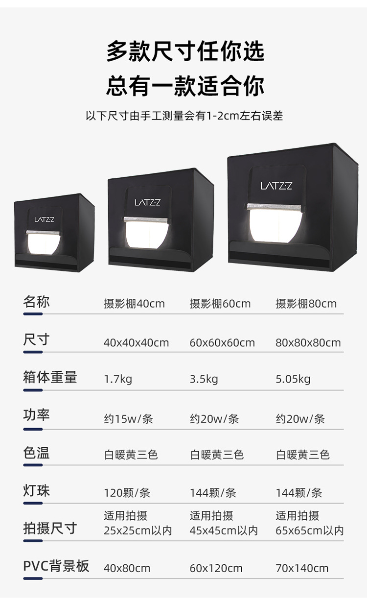 | Colores | Estudio plegable de 40CM (panel de luz circular),Estudio plegable de 60CM (panel de luz doble cuadrado),Estudio plegable de 60CM (panel cuadrado de cuatro lámparas de tres colores de temperatura),Estudio plegable de 80CM (panel de luz doble cuadrado de tres colores de temperatura),Estudio plegable de 80CM (panel cuadrado de cuatro lámparas de tres colores de temperatura) |