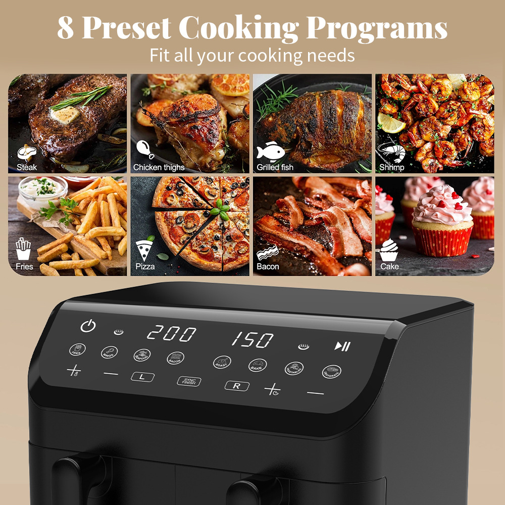 空气炸锅,ST-9692,电压:AC220-240V,功率:1800-2000W,容量:4.5L+4.5L,触摸屏,尺寸:370*380*305mm