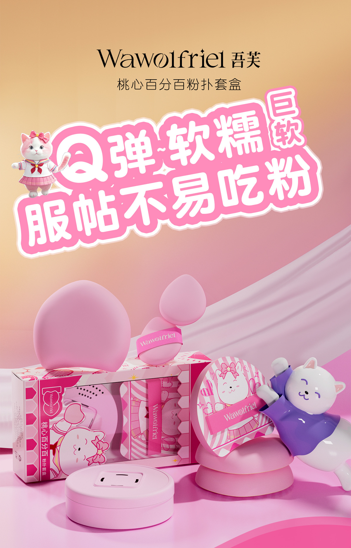Juego de soplo de polvo 100% Wufu WUFU Peach Heart
