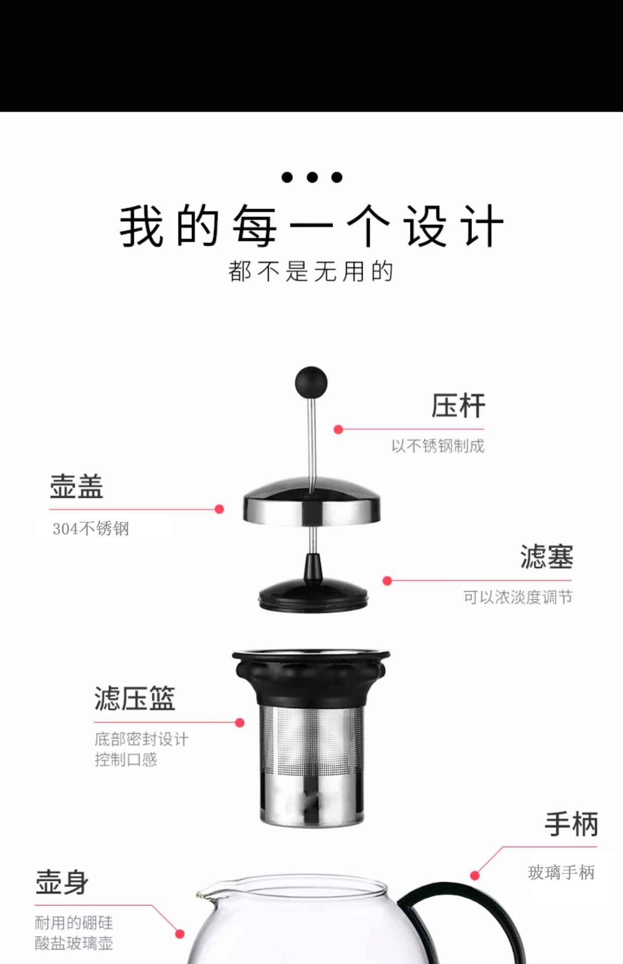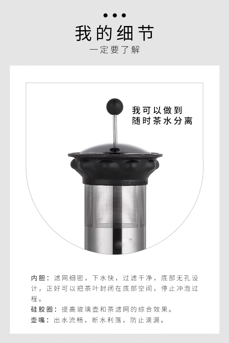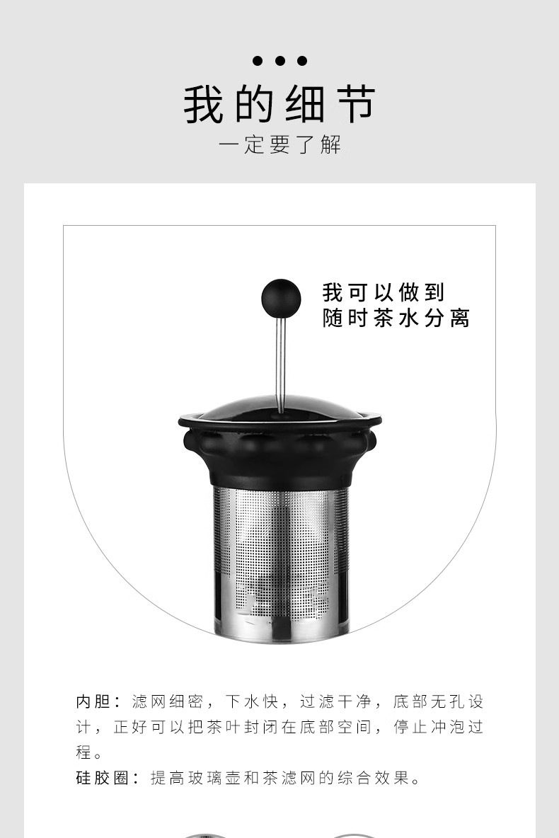 材质:高硼硅玻璃+304不锈钢+食品级哇胶