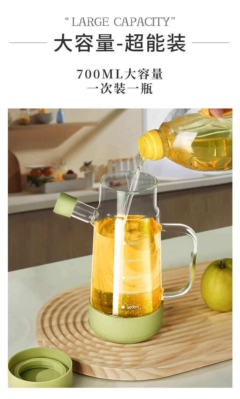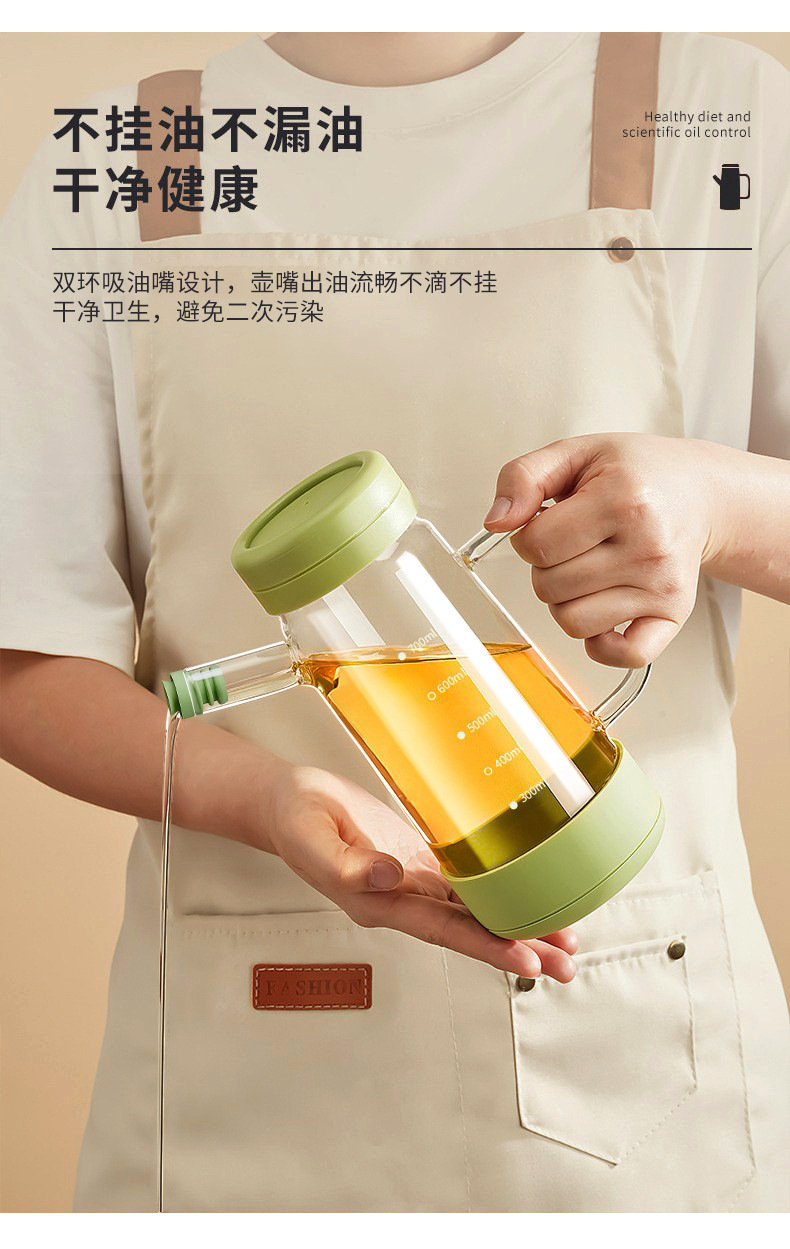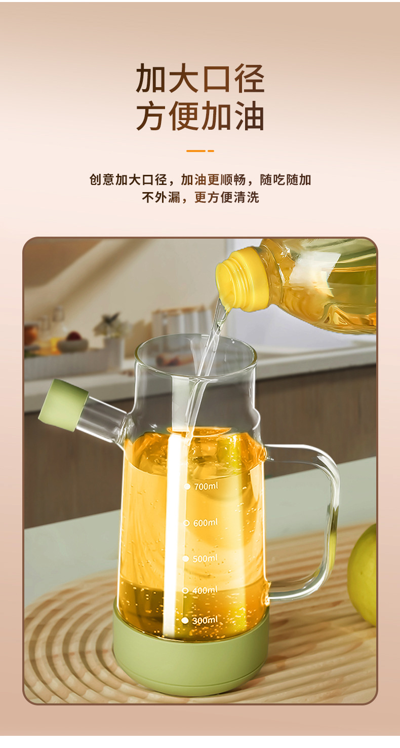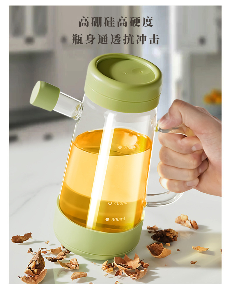 Olla de aceite de vidrio resistente a altas temperaturas sin aceite colgante, mango doméstico, botella de salsa de soja de cocina integrada, botella de vinagre de aceite a prueba de fugas, botella de aceite por gravedad