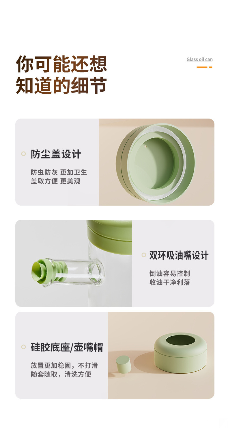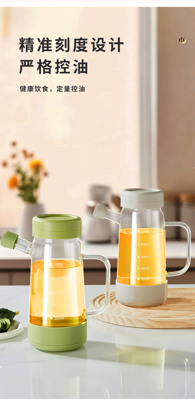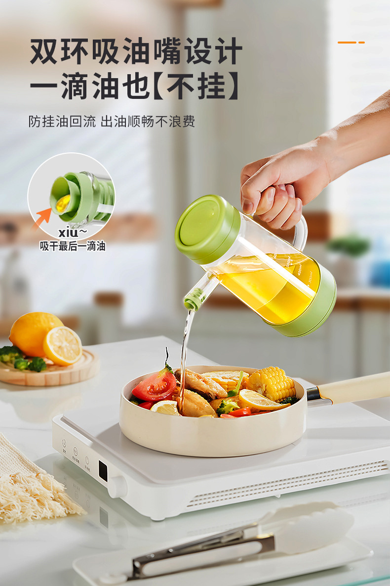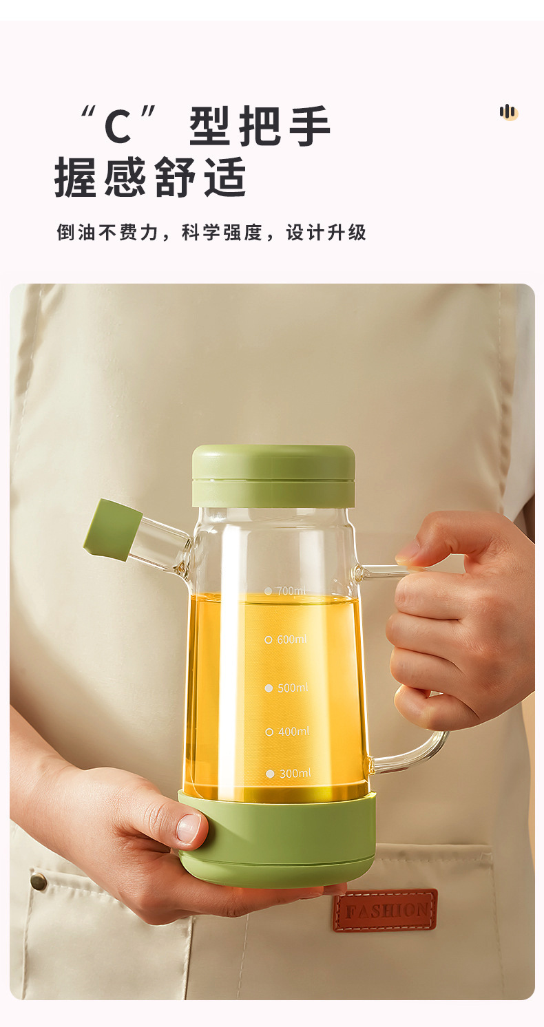 Olla de aceite de vidrio resistente a altas temperaturas sin aceite colgante, mango doméstico, botella de salsa de soja de cocina integrada, botella de vinagre de aceite a prueba de fugas, botella de aceite por gravedad