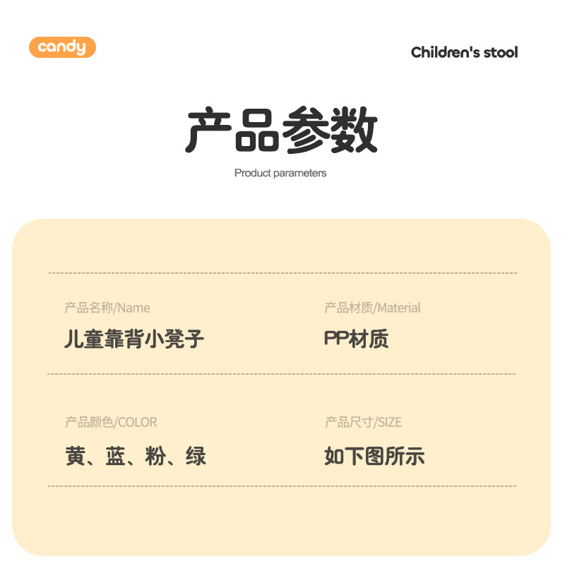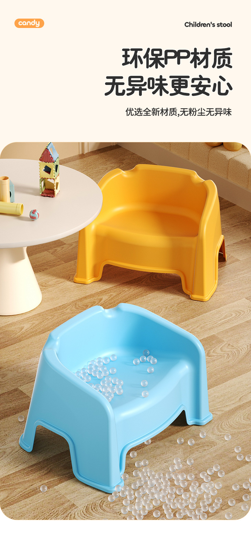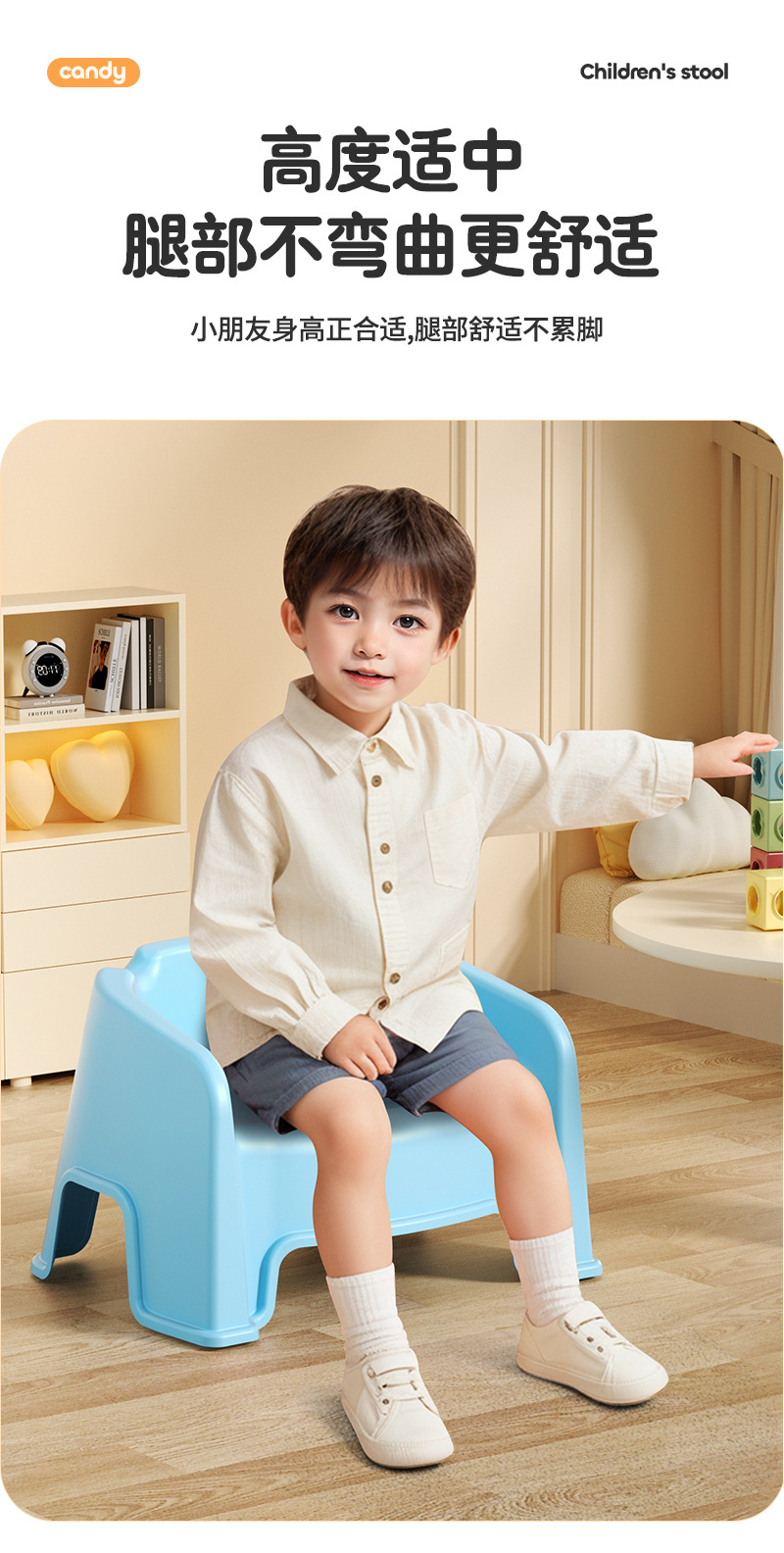 Taburete pequeño, respaldo corto, silla pequeña de jardín de infantes, banco de plástico, niño, niño, sala de estar, lindo taburete corto