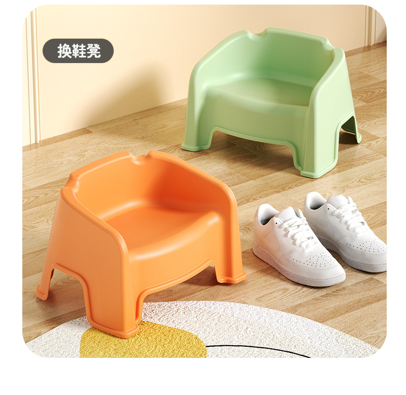 Taburete bajo pequeño, banco doméstico, silla pequeña, taburete con respaldo, taburete apilado, taburete de plástico ultracorto en la sala de estar