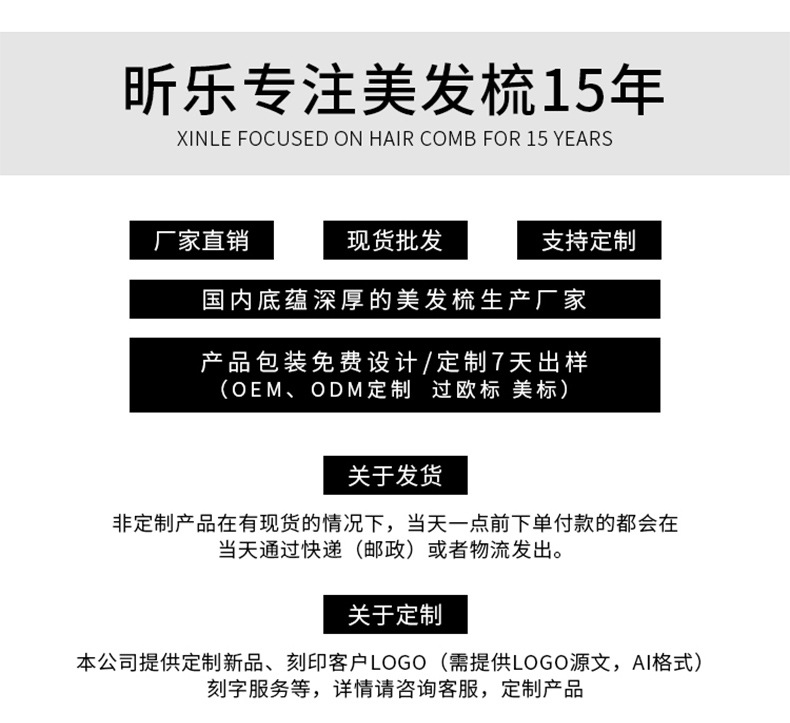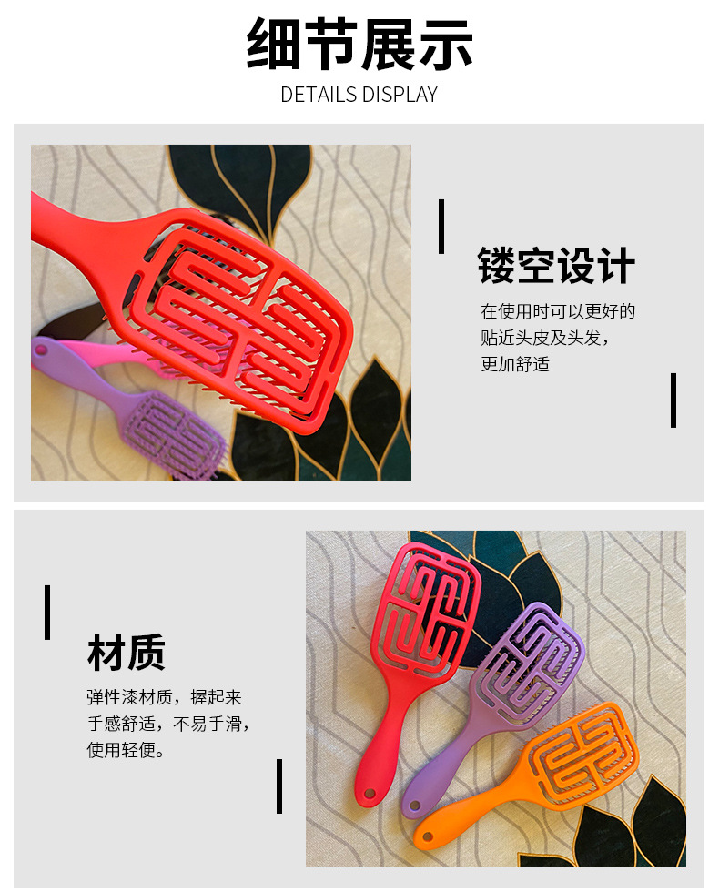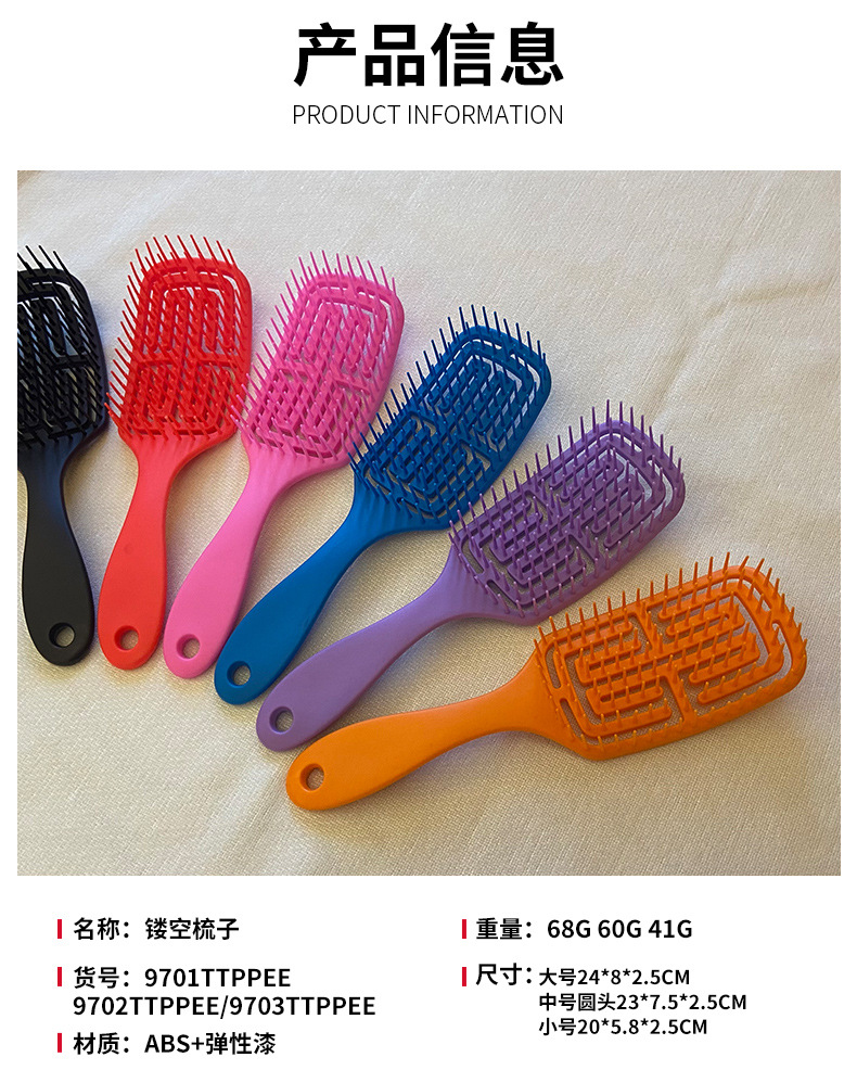 | Especificaciones | Peine hueco cuadrado de gran tamaño 24*8*2,5 cm,Peine hueco oval tamaño mediano 23*7,5*2,5 cm,Peine cuadrado hueco pequeño tamaño 20*5,8*2,5 cm |