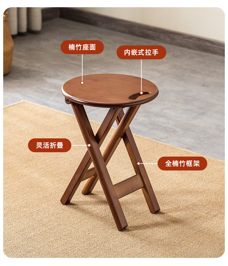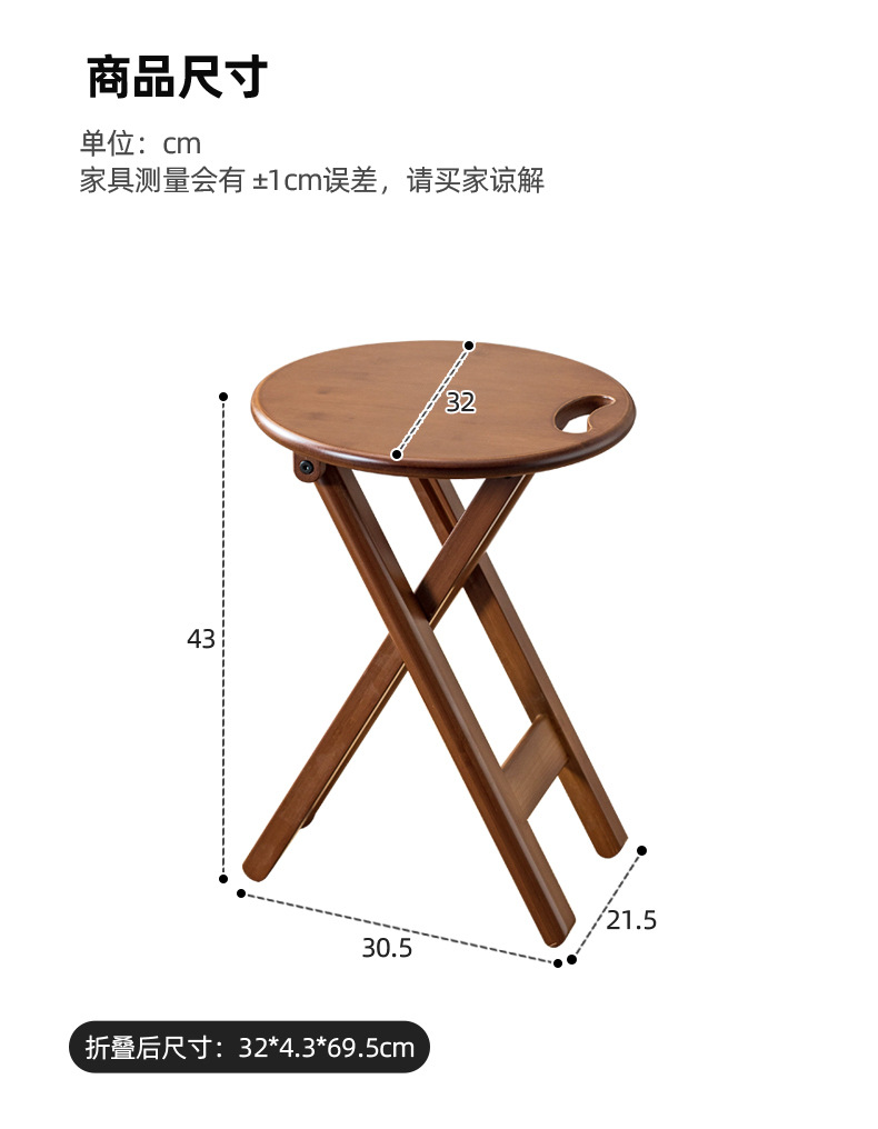 Taburete redondo plegable, silla de comedor simple para el hogar, mesa de bar, taburete pequeño, banco alto, ocio al aire libre, pequeño caballo portátil