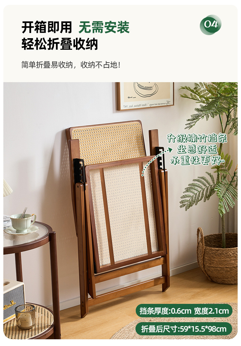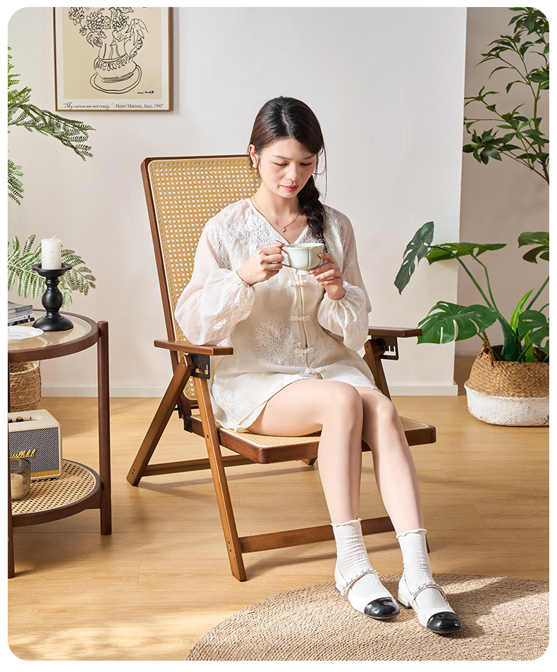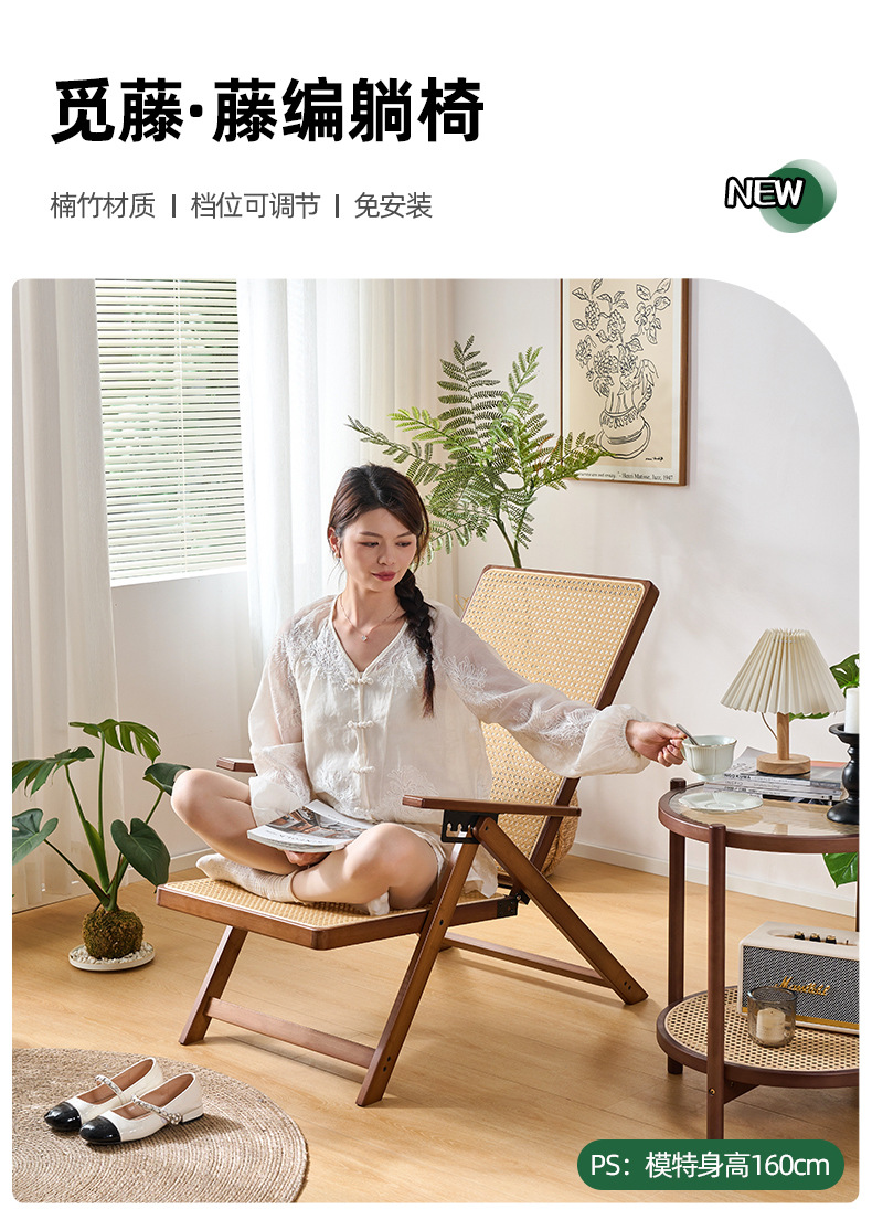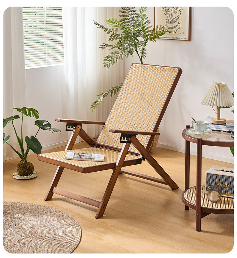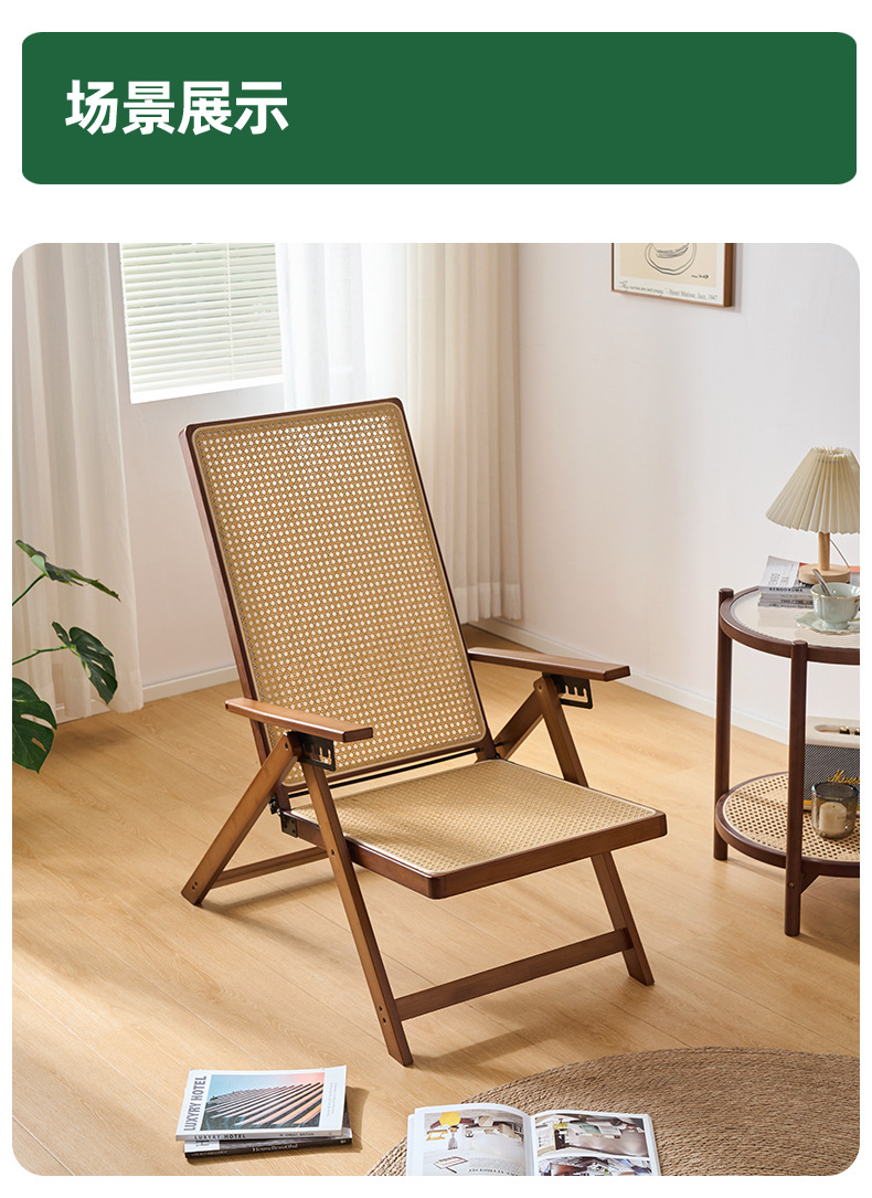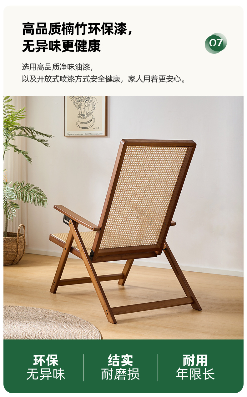 Silla reclinable de bambú tejido de ratán, pausa para el almuerzo plegable, silla de mimbre para ancianos al aire libre, silla de ocio de balcón resistente y duradera