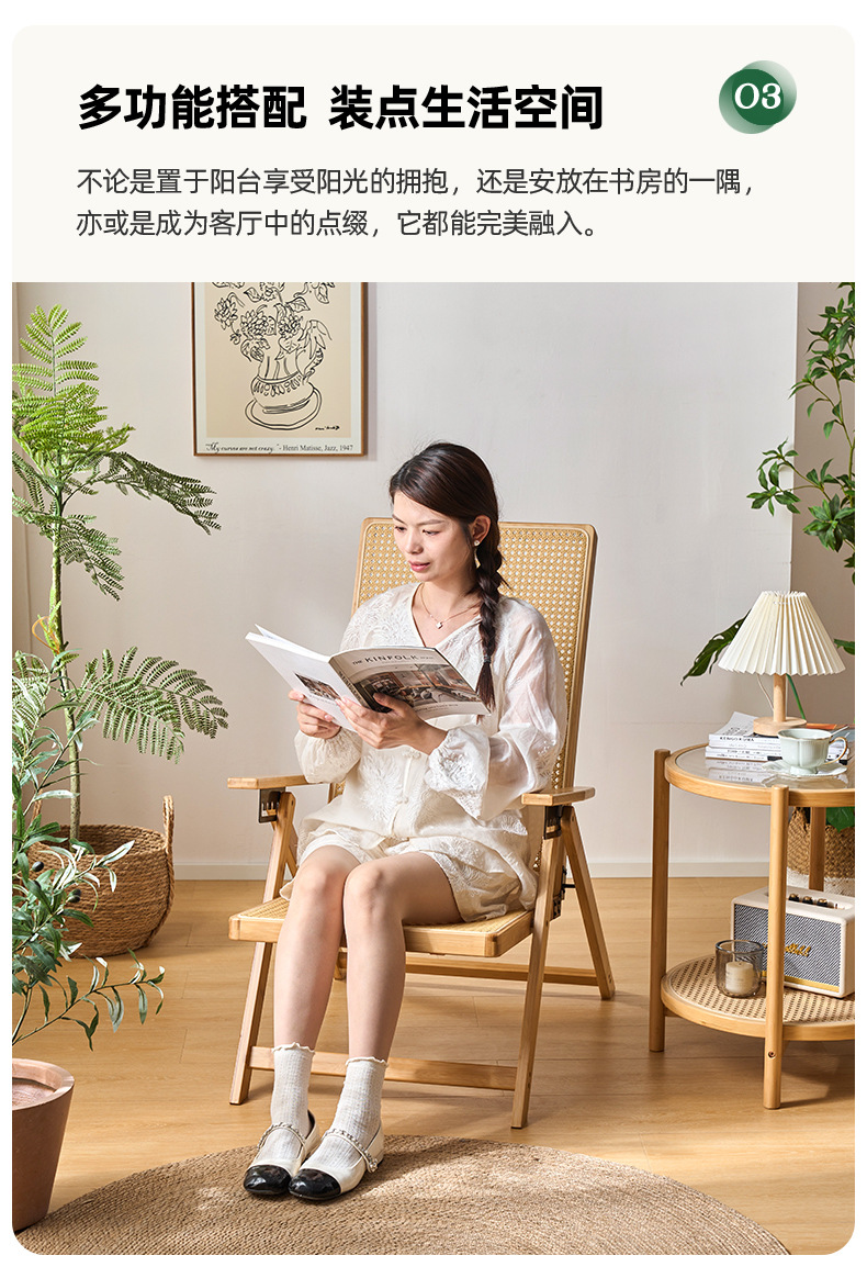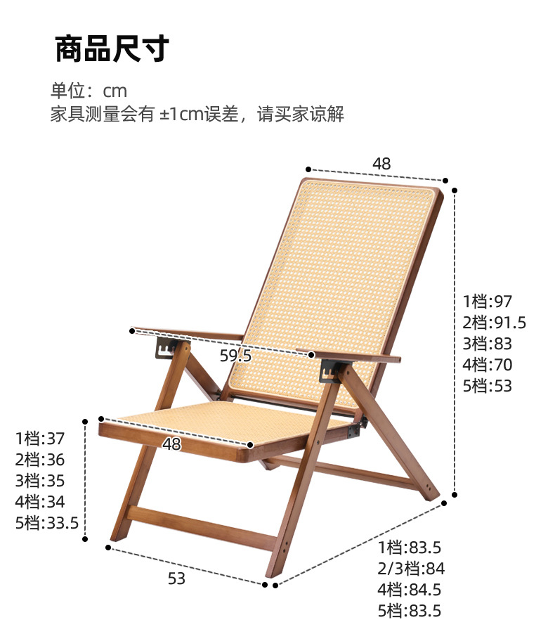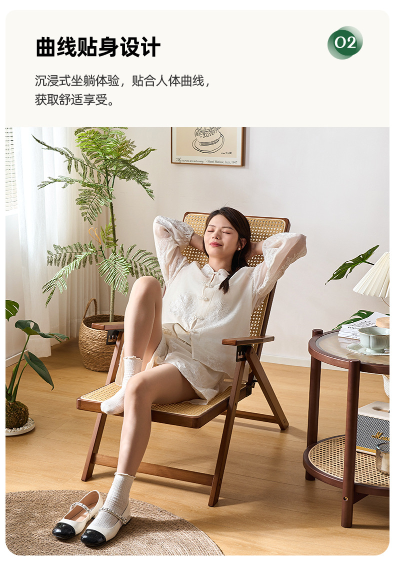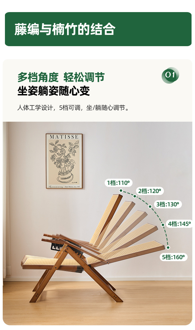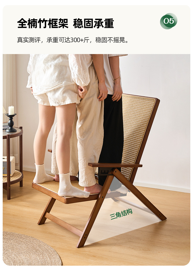 Silla reclinable de bambú tejido de ratán, pausa para el almuerzo plegable, silla de mimbre para ancianos al aire libre, silla de ocio de balcón resistente y duradera