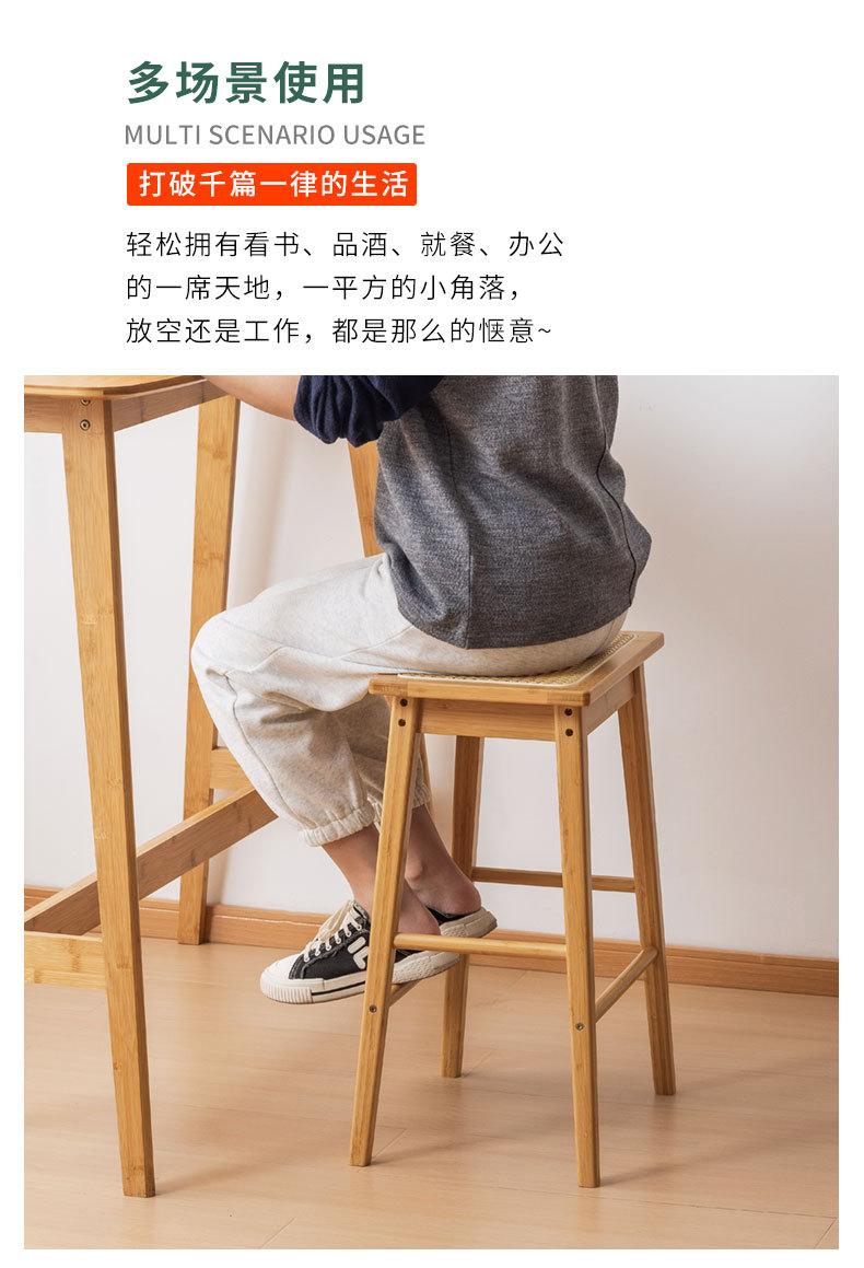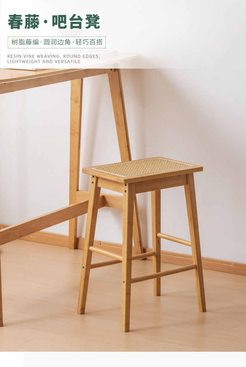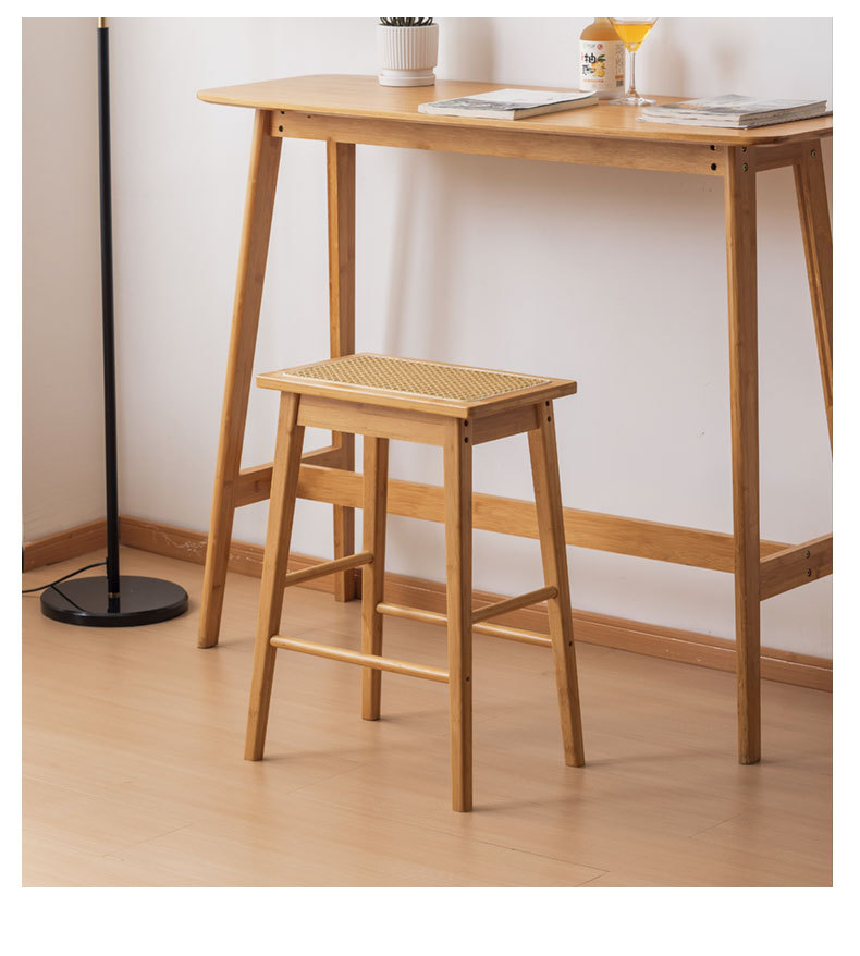 Taburete alto de ratán Taburete alto grueso para el hogar retro japonés, banco alto fuerte y duradero, banco alto, plataforma de isla de madera maciza, taburete de bar