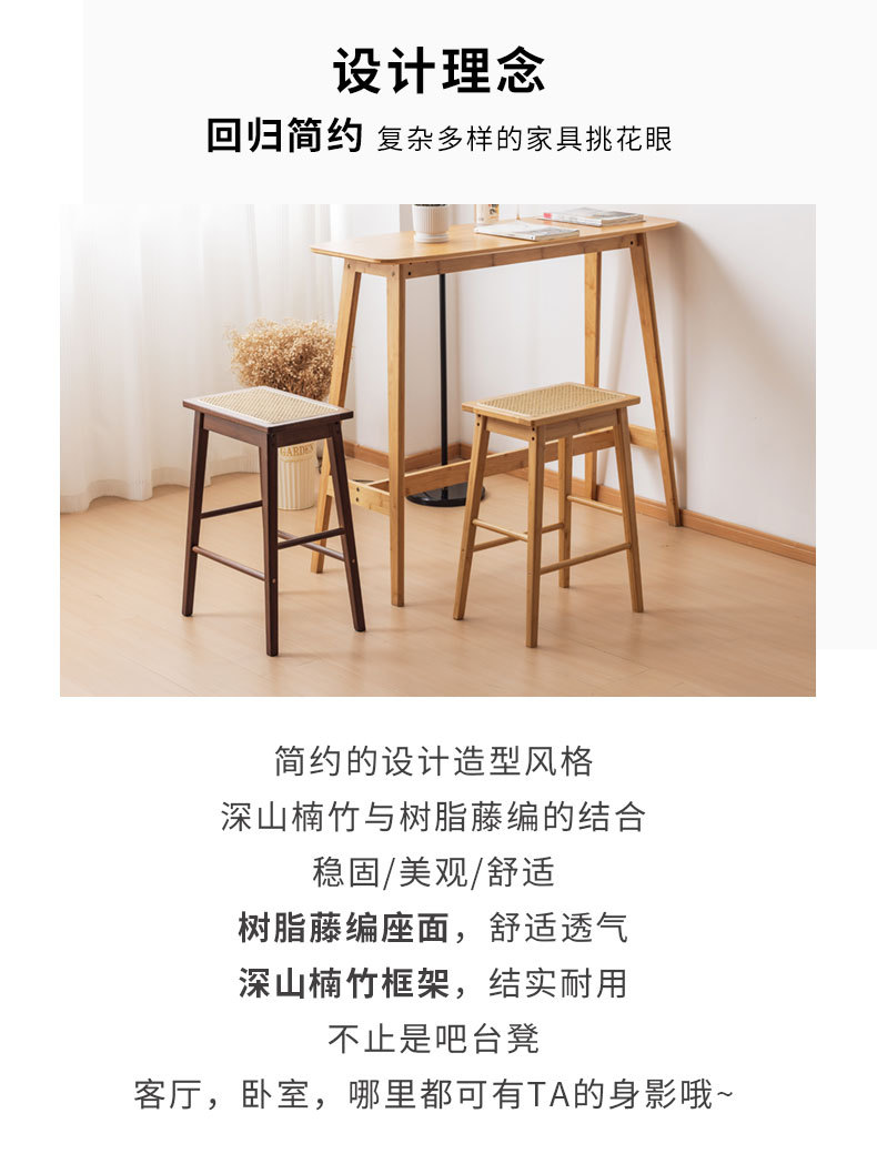 Taburete de barra de enredadera-color primario,Taburete de bar de enredadera-nogal
