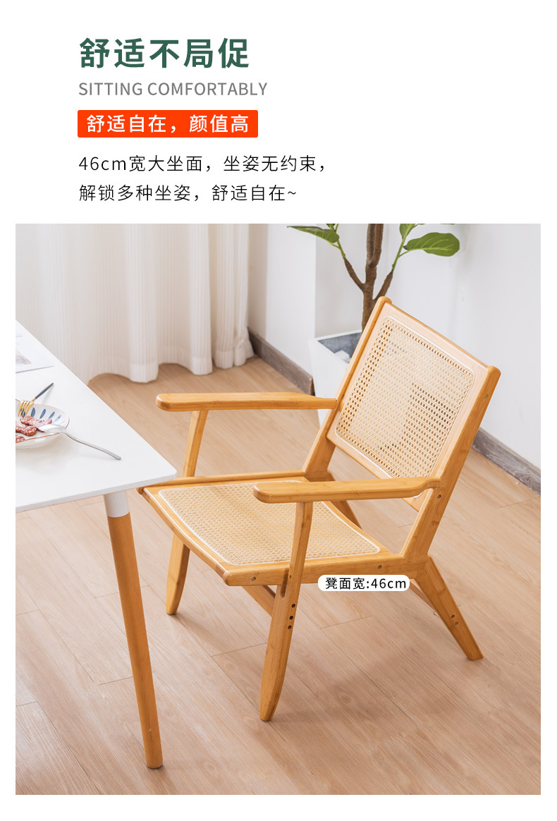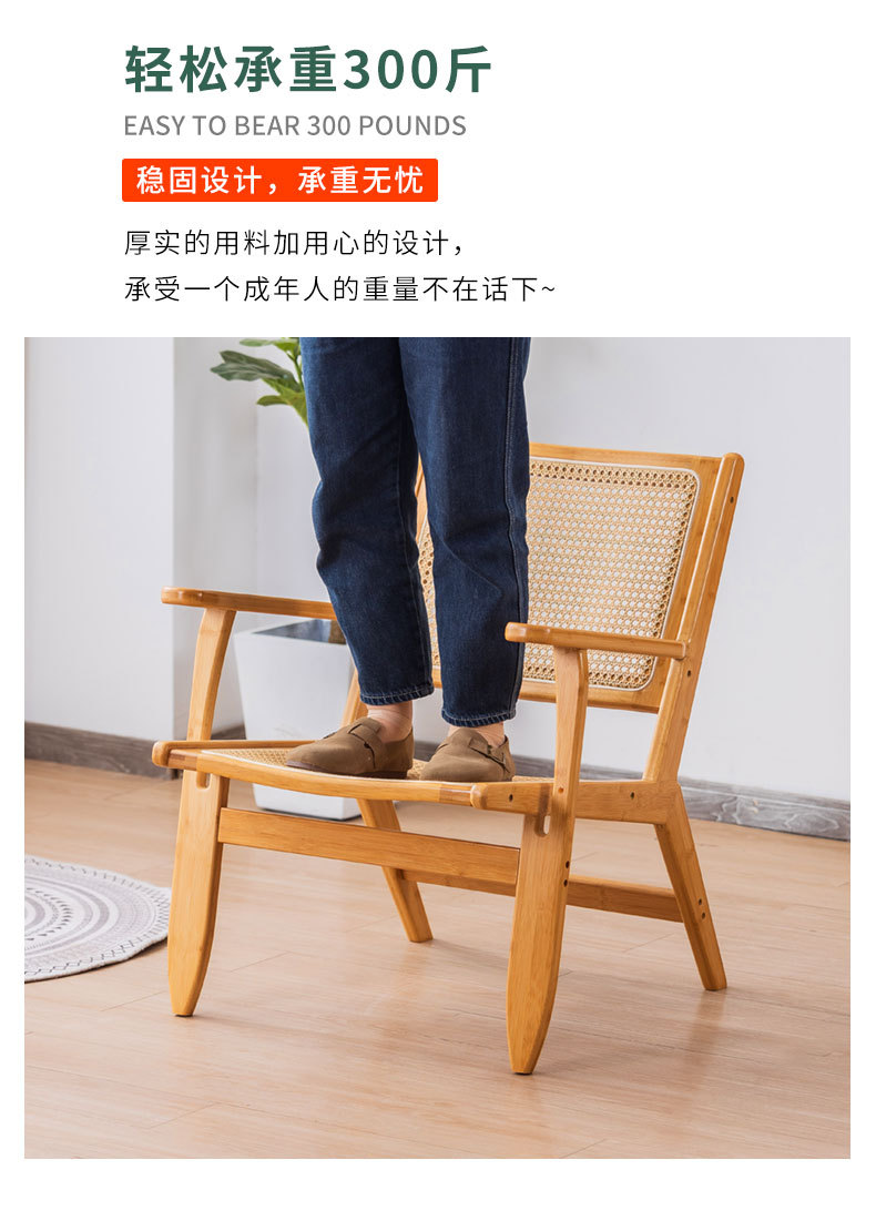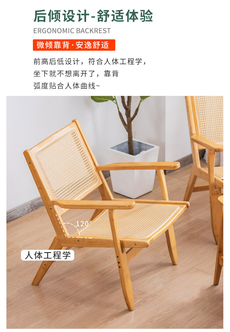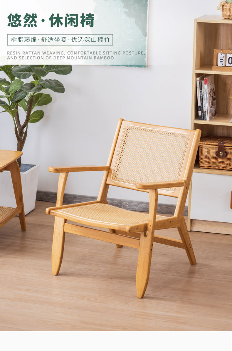 Silla de ocio de ratán de bambú con apoyabrazos, balcón doméstico con silla de respaldo, sofá al aire libre, sillón reclinable, nuevo estilo