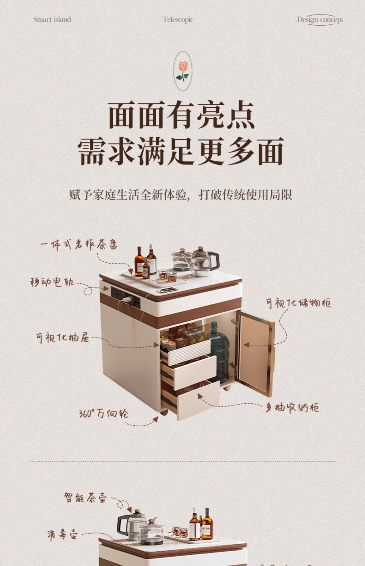 Mesa de isla de estilo antiguo, barra de agua de restaurante moderna separada, mesa de isla de roca independiente móvil, mesa de escritorio invertida, hogar