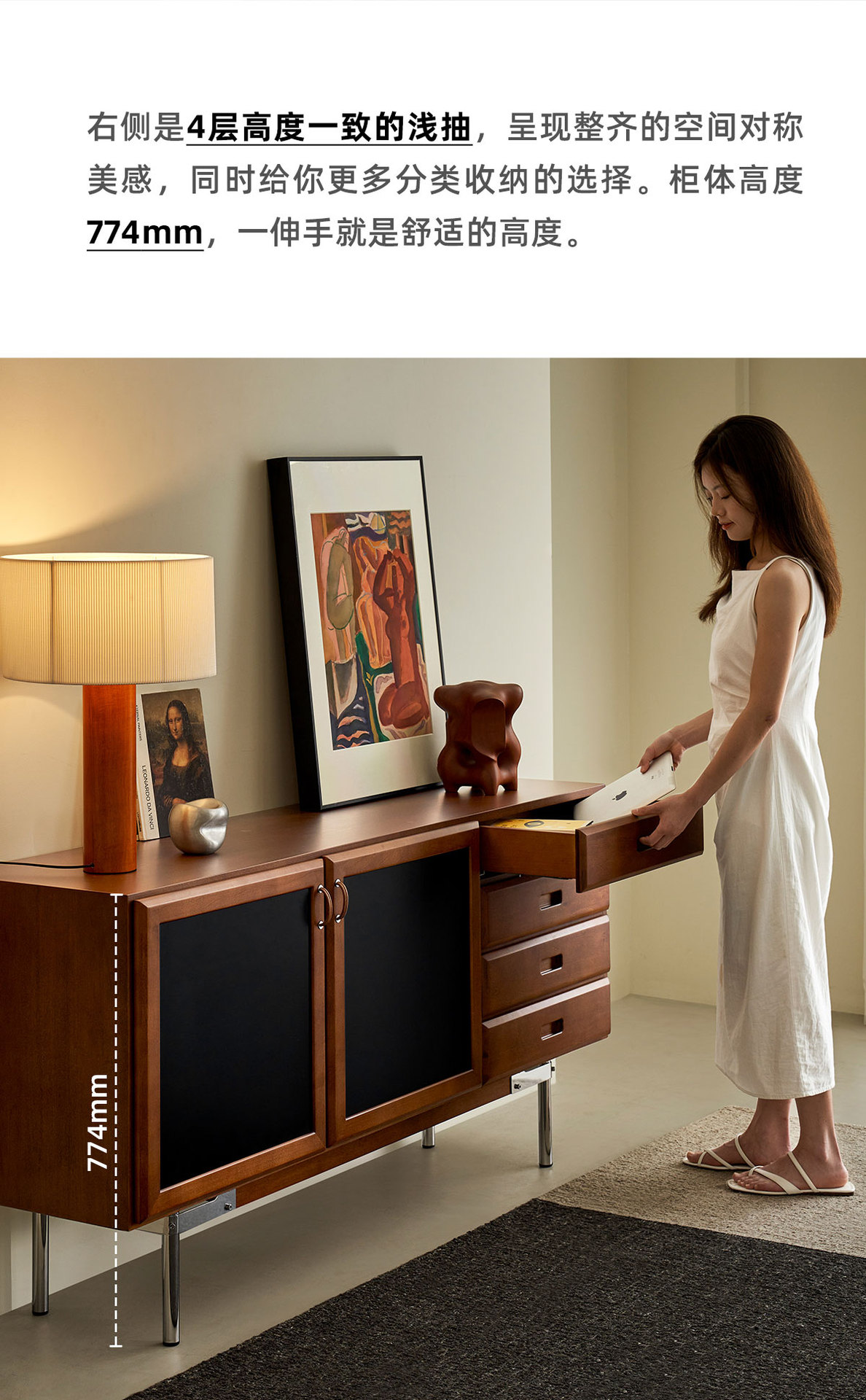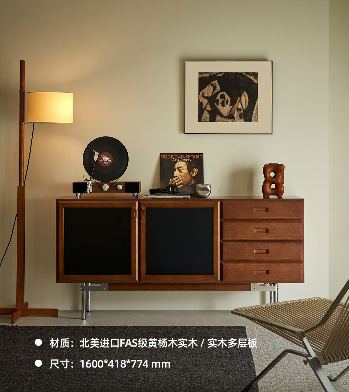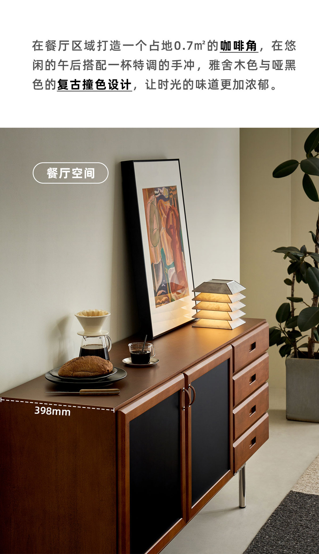 Gabinete de comedor medieval, gabinete de almacenamiento retro de madera maciza contra la pared, gabinete de almacenamiento de sala de estar doméstico integrado, mesa de colocación de máquina de café