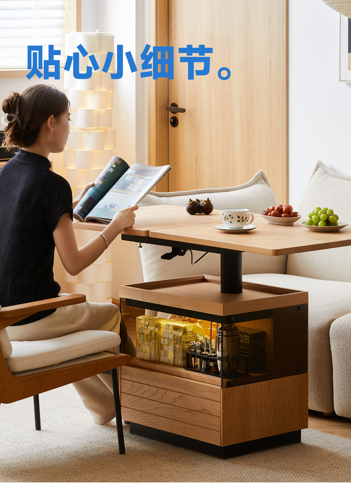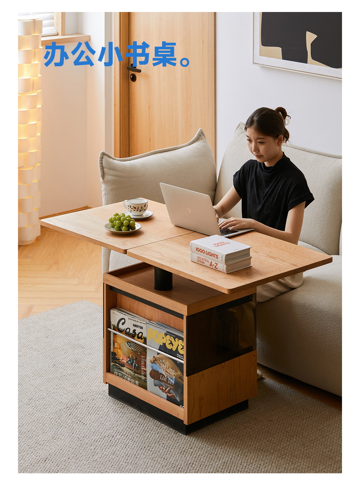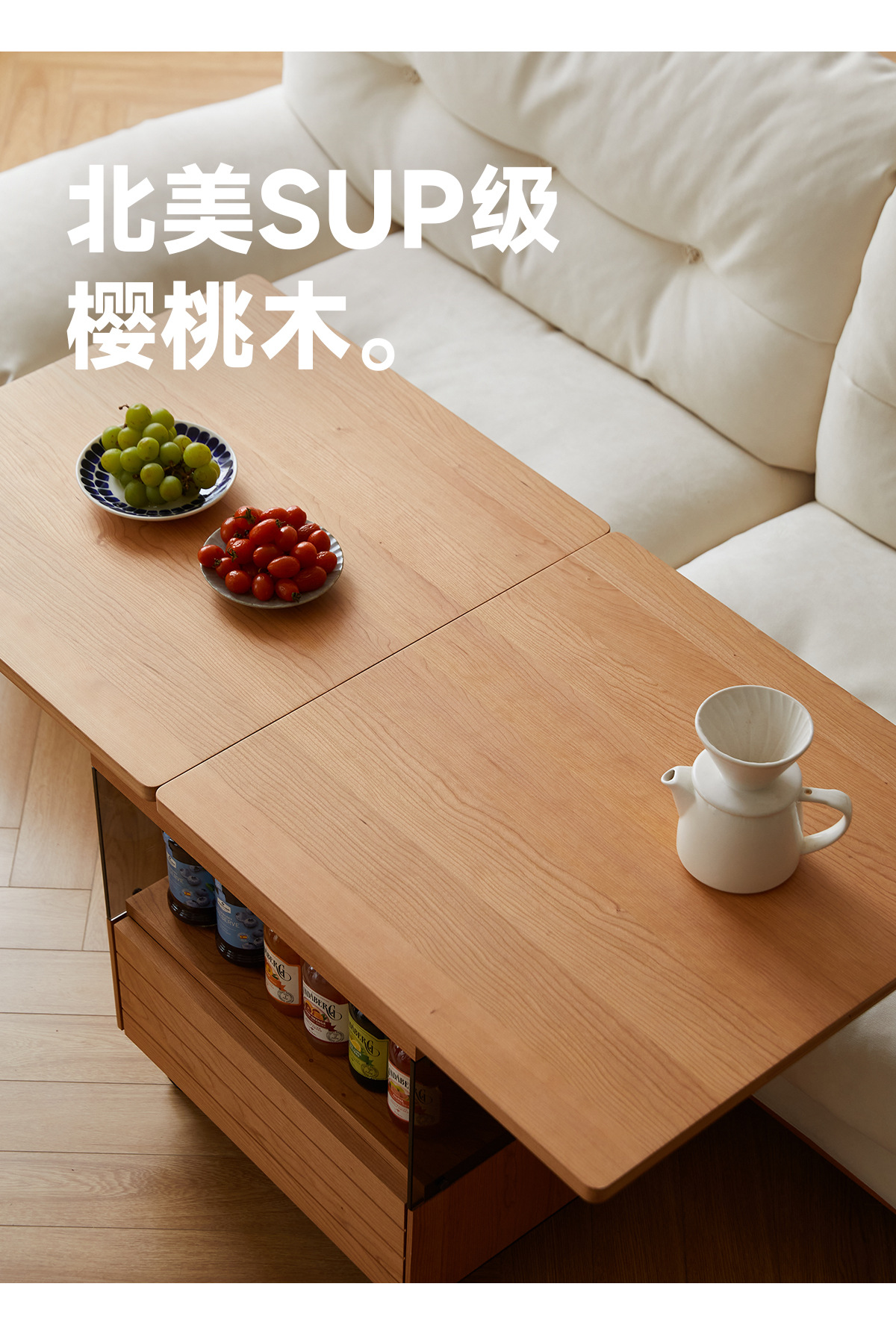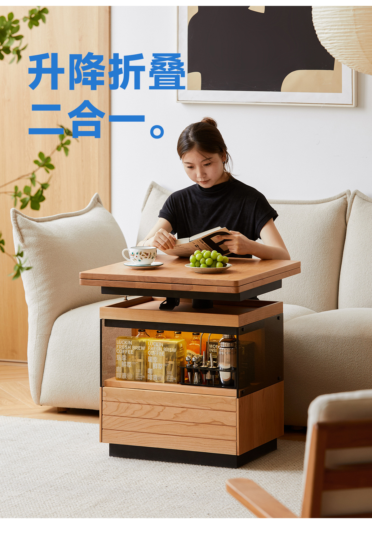 Mesa de centro elevadora de madera maciza, mesa de comedor, color de madera de cerezo, sala de estar de apartamento pequeño, mesa lateral móvil retráctil plegable, mesa de té