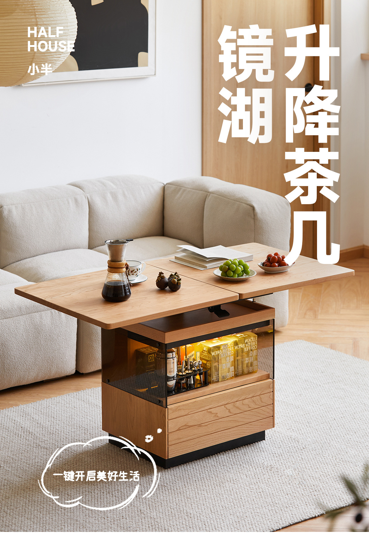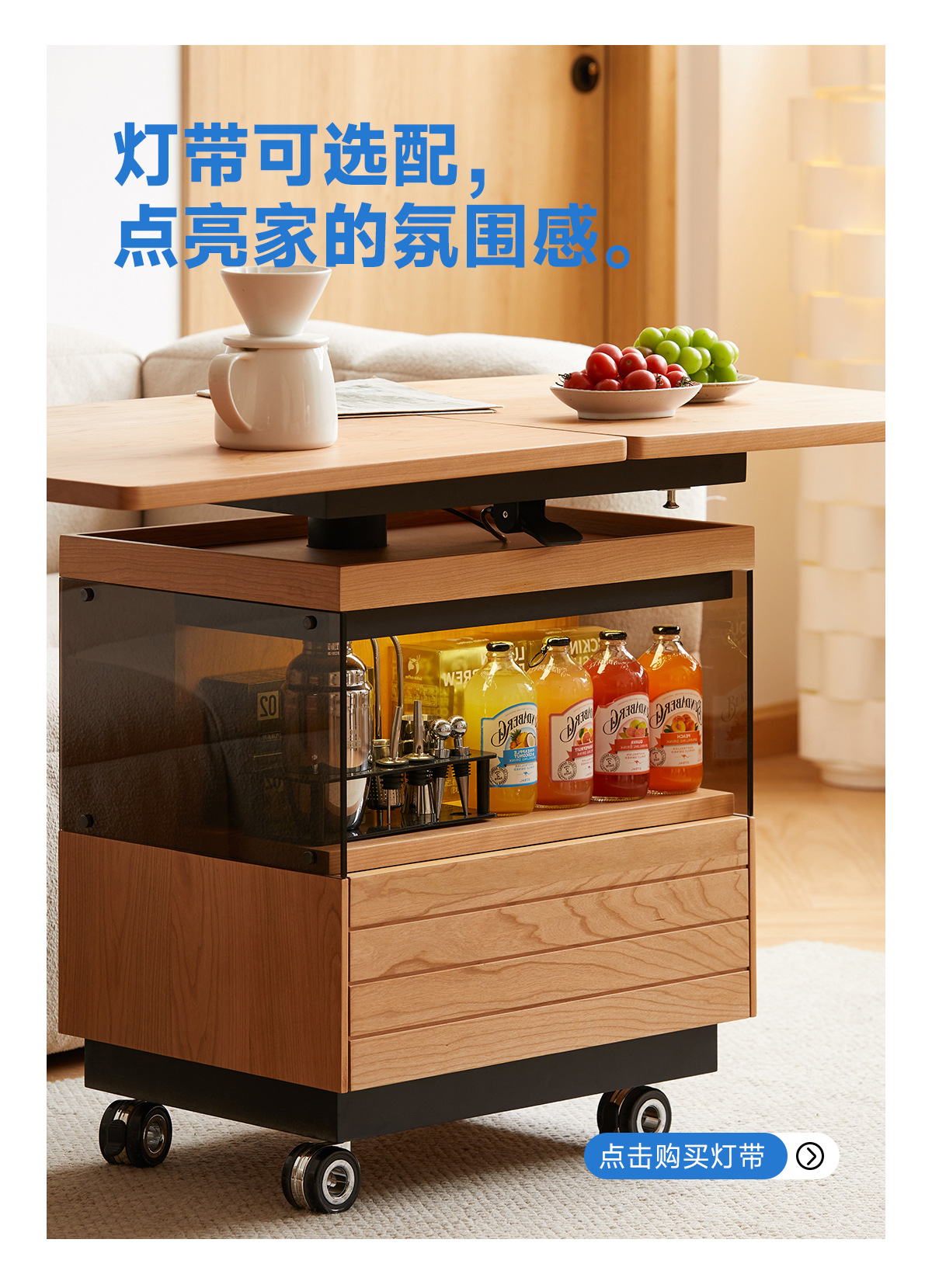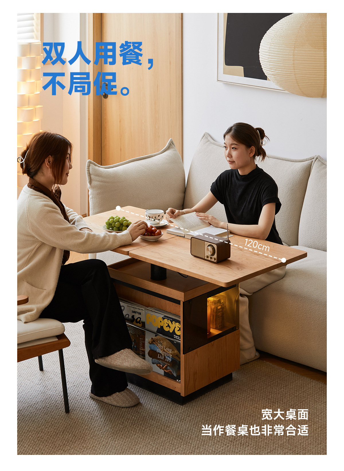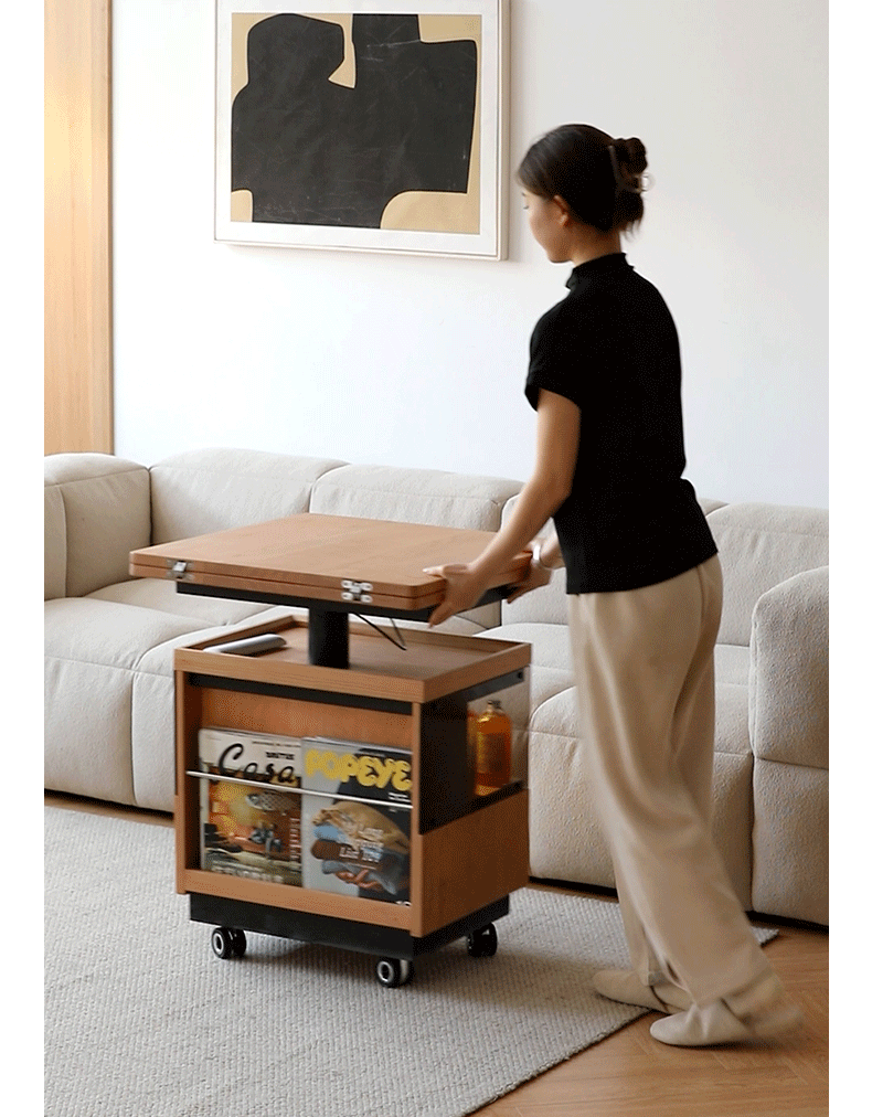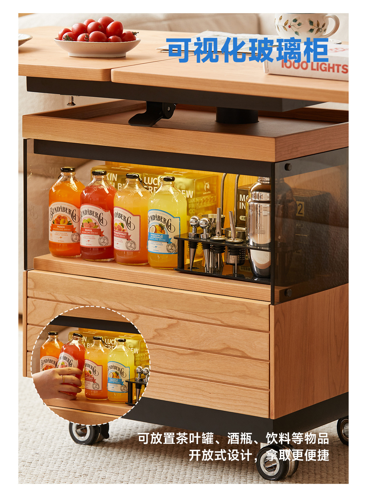 Mesa de centro elevadora de madera maciza, mesa de comedor, color de madera de cerezo, sala de estar de apartamento pequeño, mesa lateral móvil retráctil plegable, mesa de té