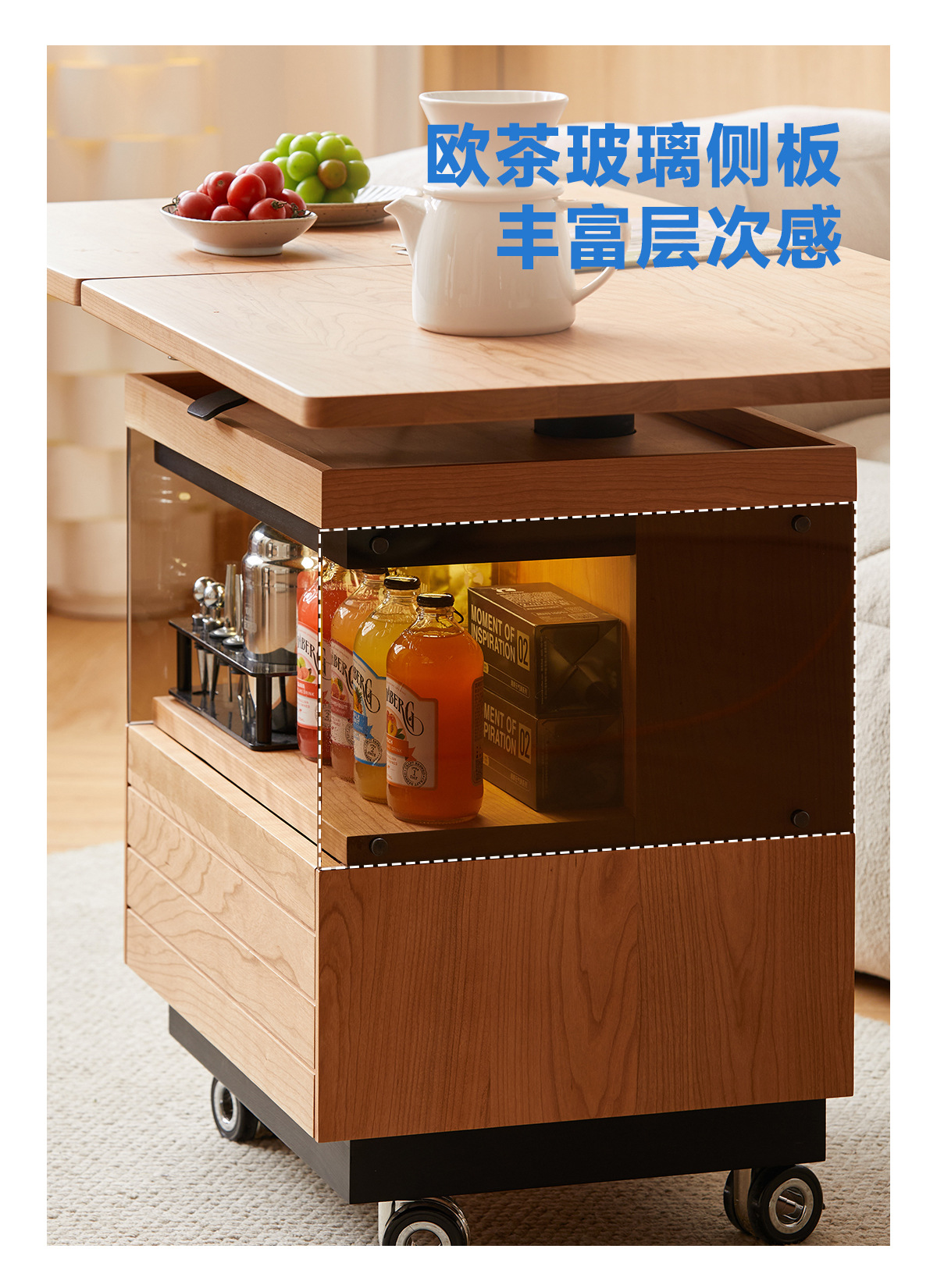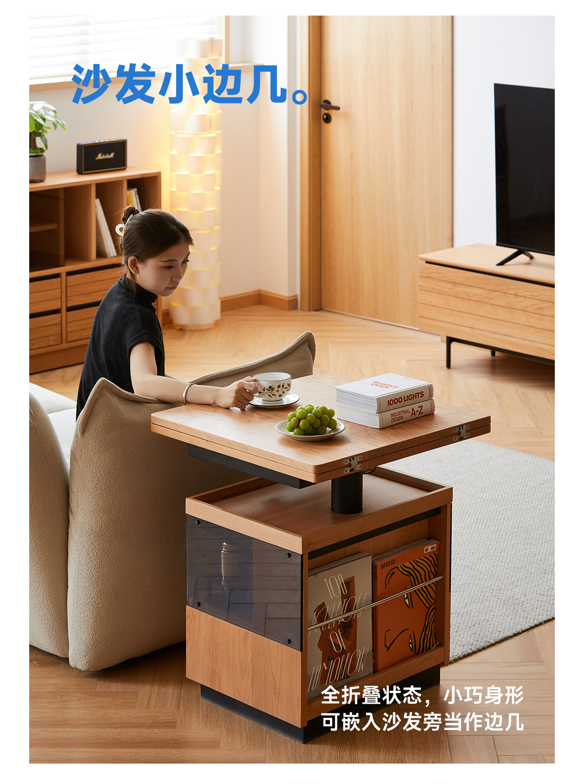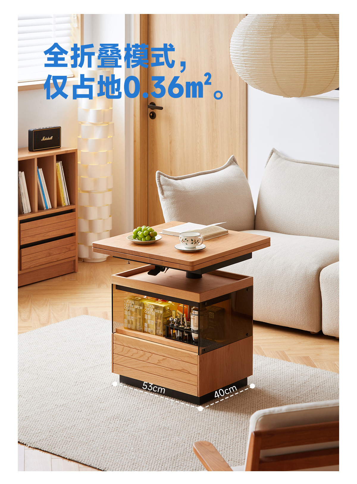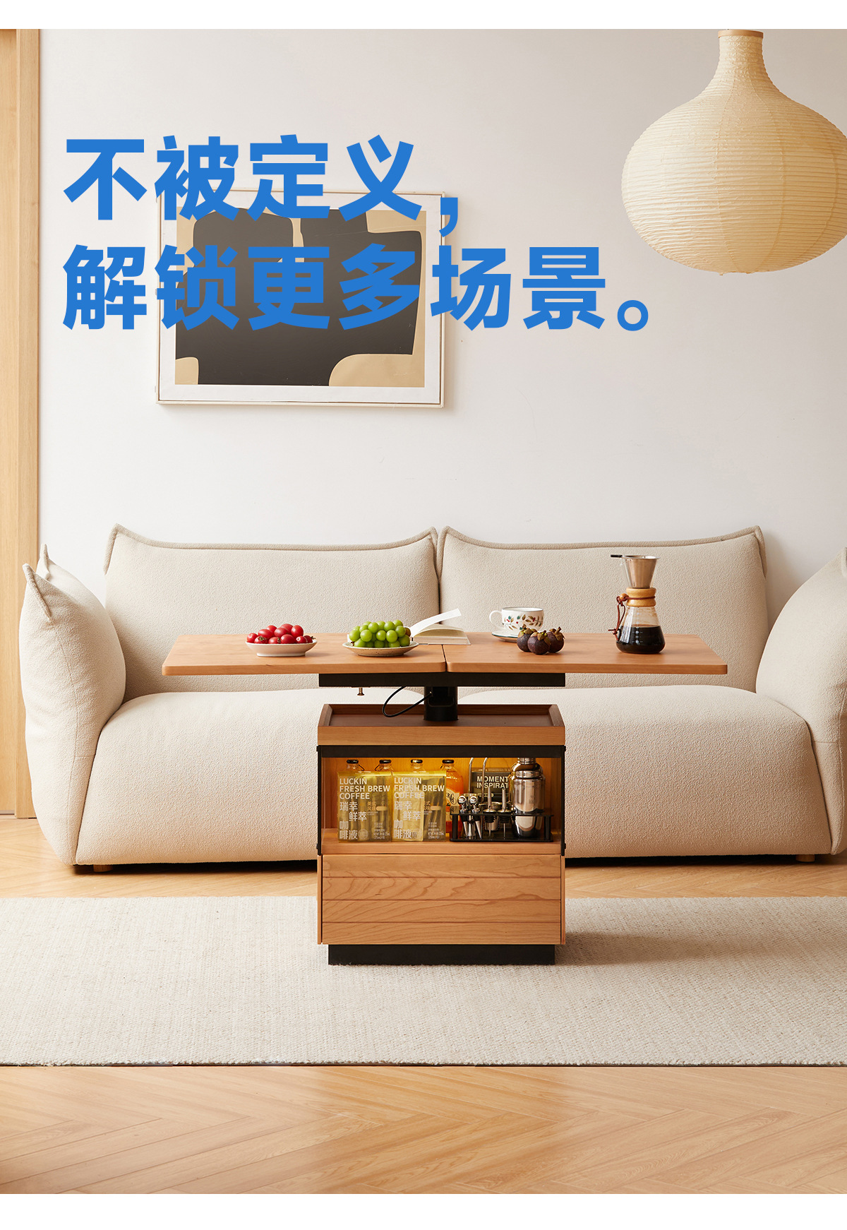 Mesa de centro elevadora de madera maciza, mesa de comedor, color de madera de cerezo, sala de estar de apartamento pequeño, mesa lateral móvil retráctil plegable, mesa de té