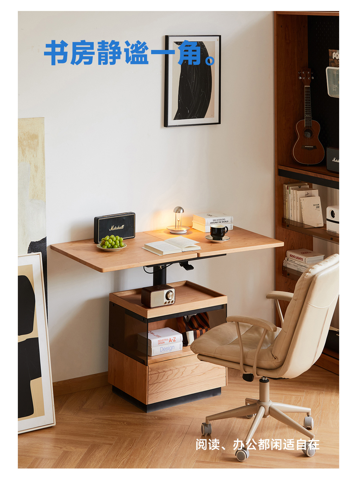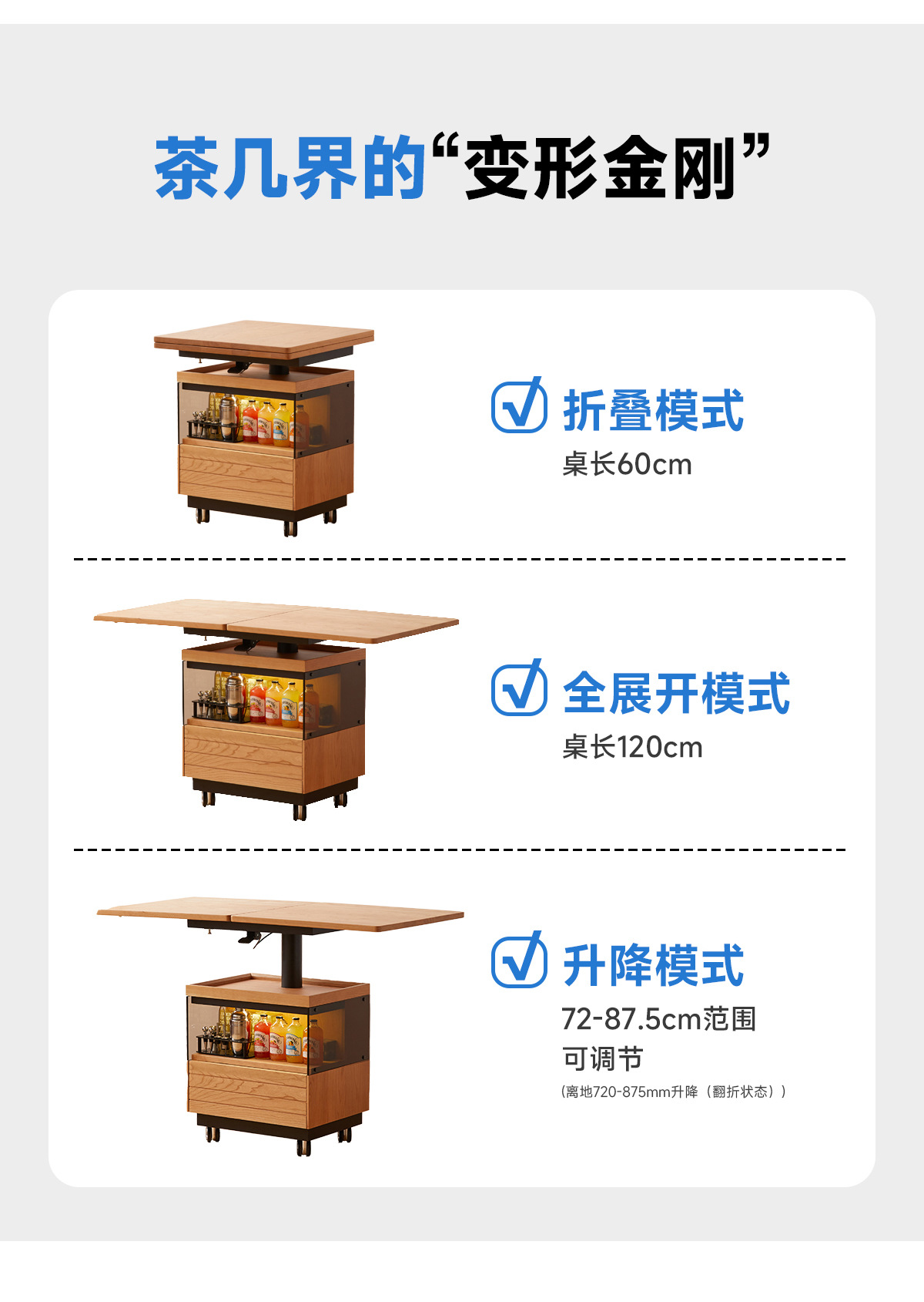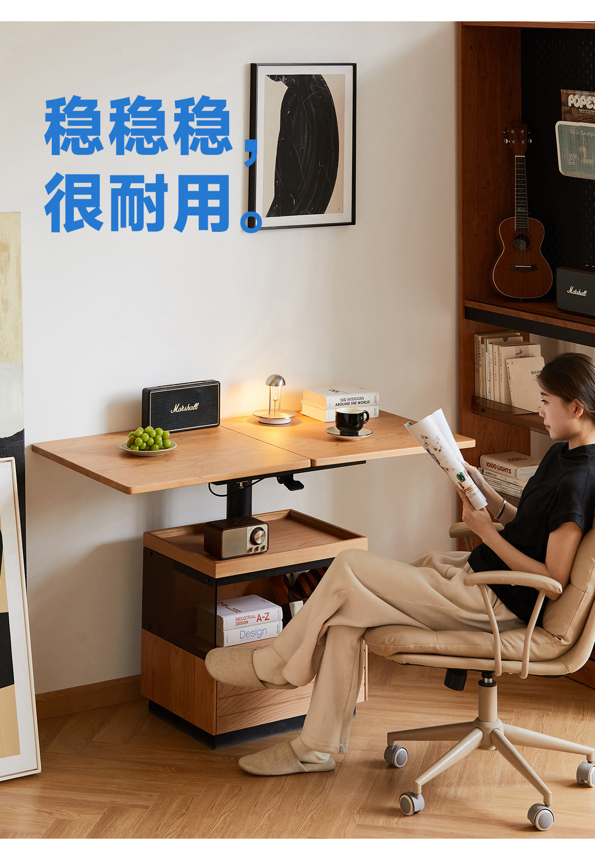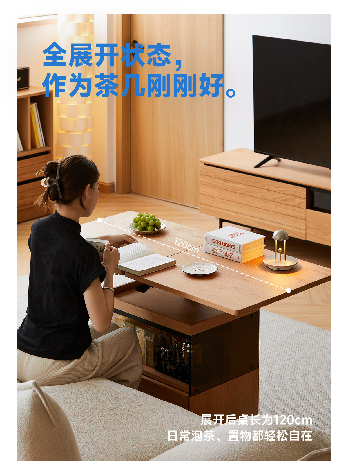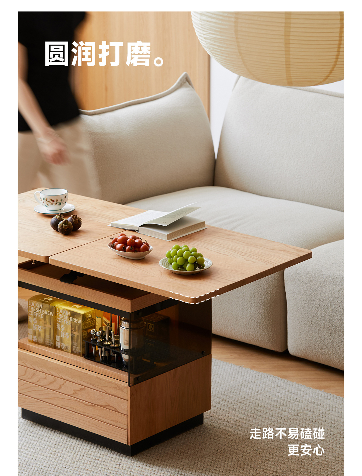 Mesa de centro elevadora de madera maciza, mesa de comedor, color de madera de cerezo, sala de estar de apartamento pequeño, mesa lateral móvil retráctil plegable, mesa de té