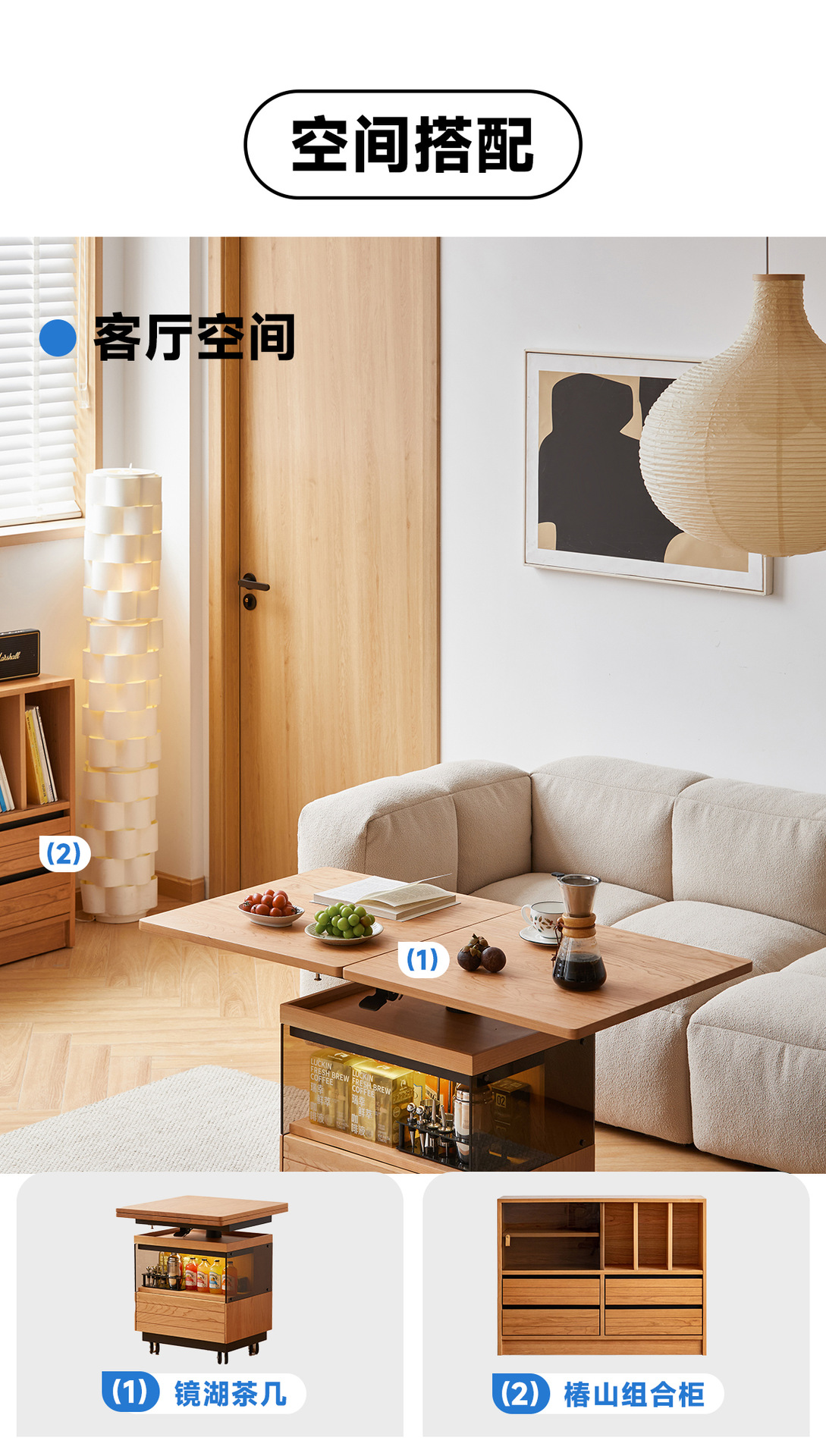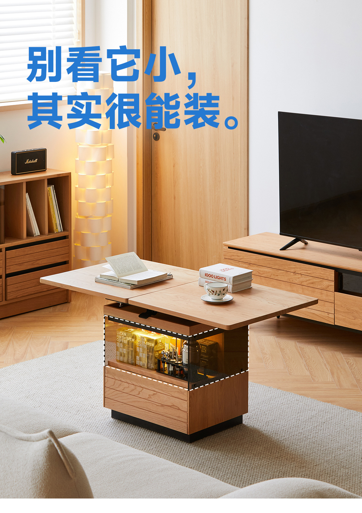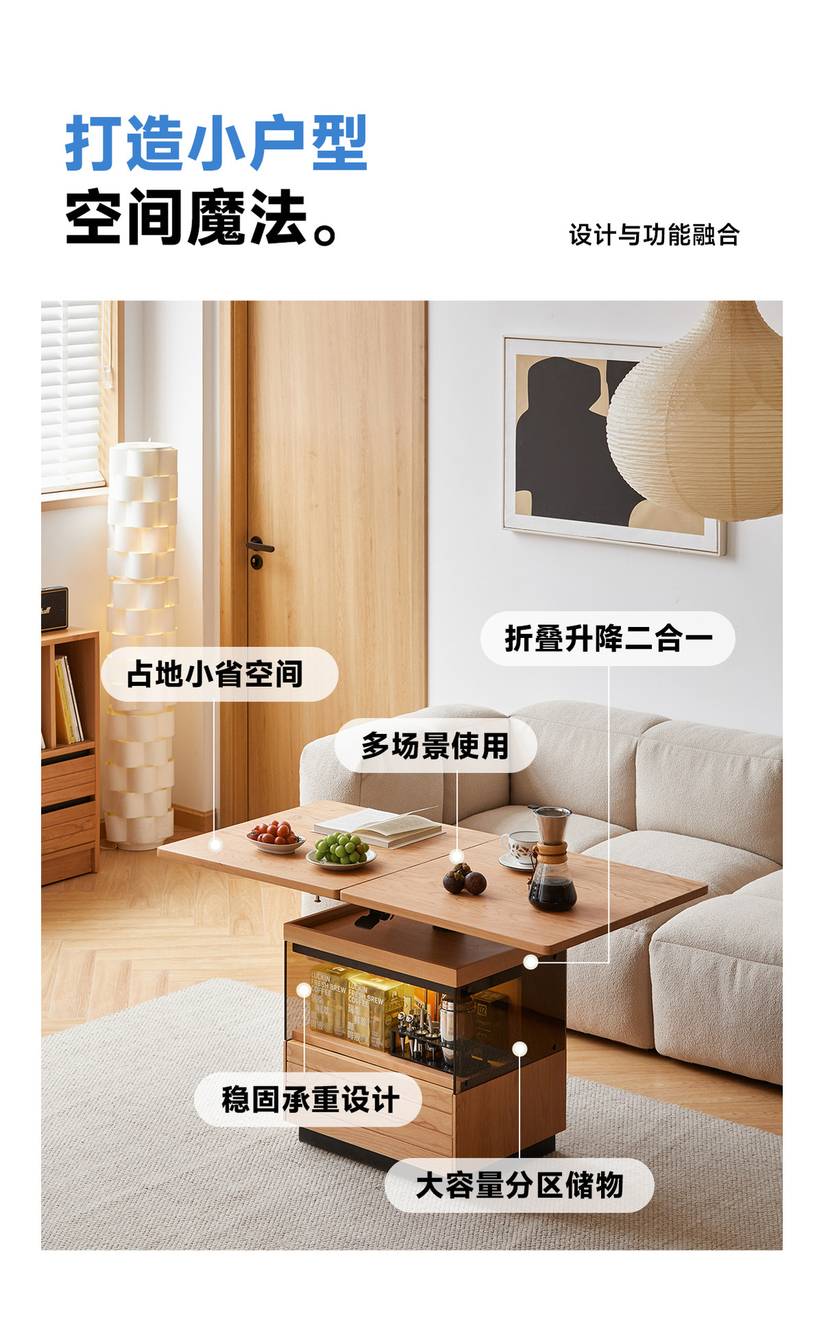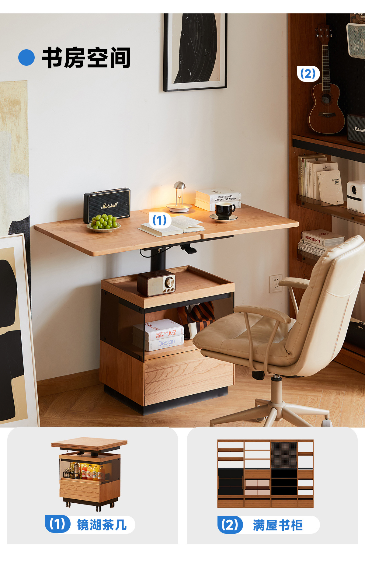 Mesa de centro elevadora de madera maciza, mesa de comedor, color de madera de cerezo, sala de estar de apartamento pequeño, mesa lateral móvil retráctil plegable, mesa de té