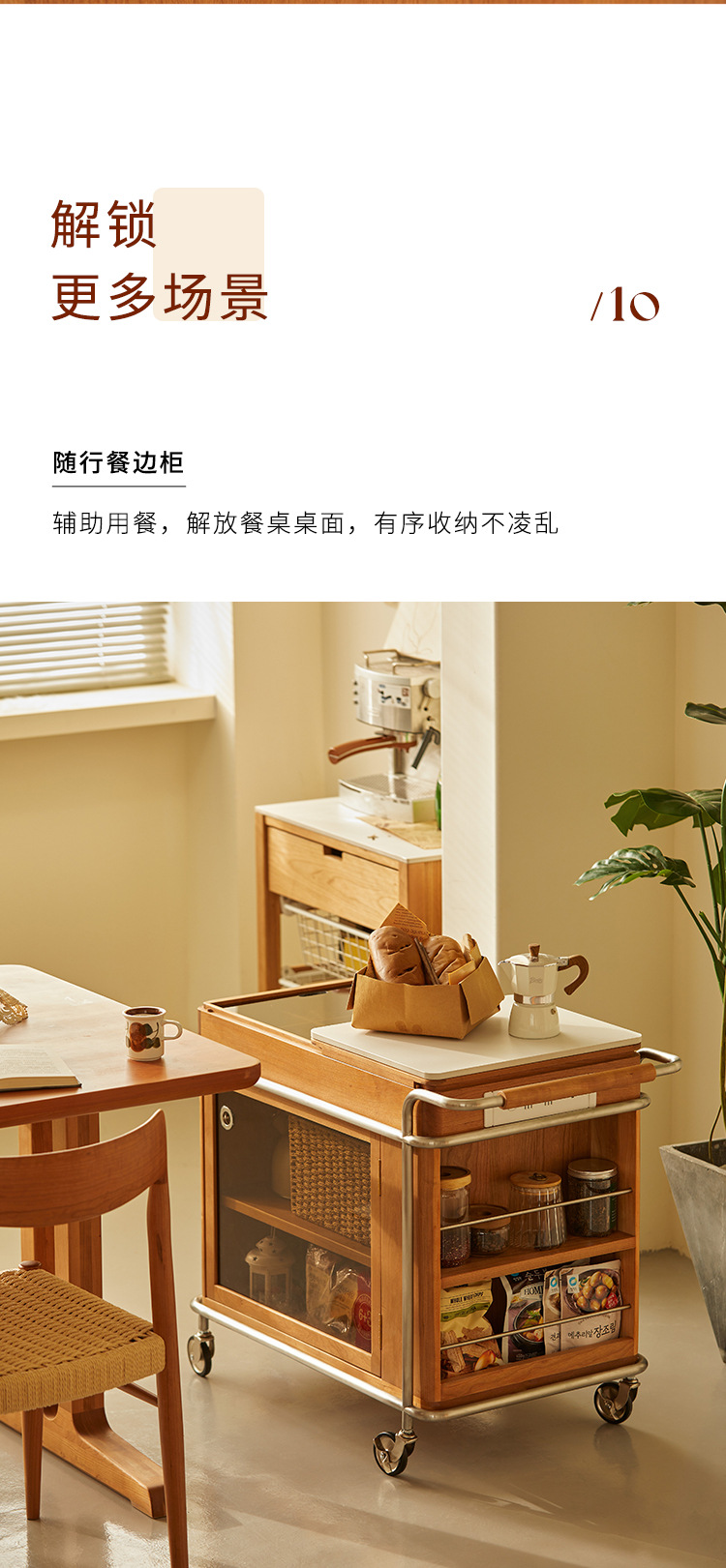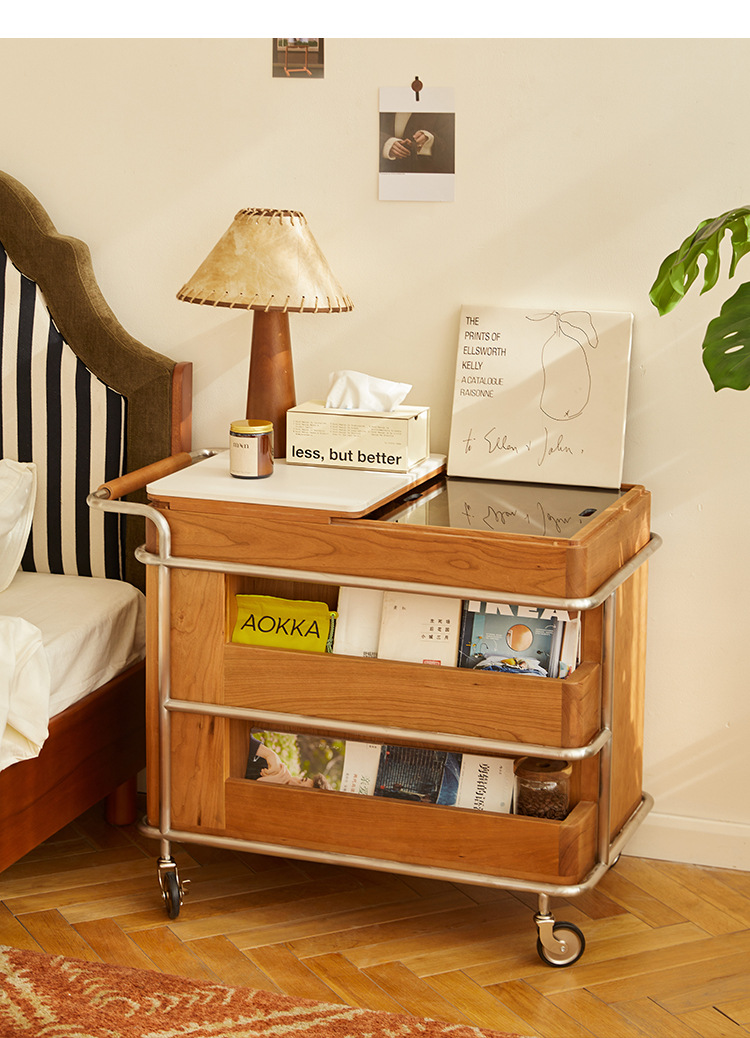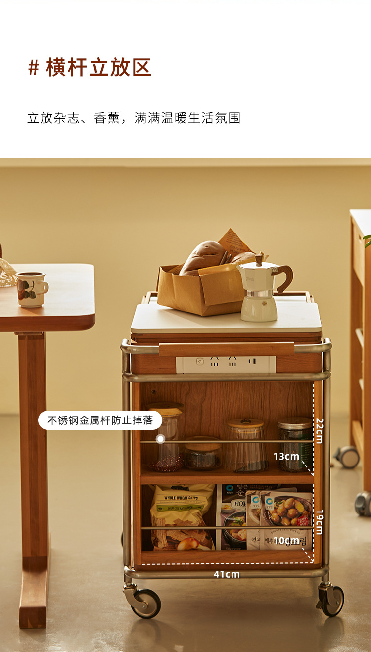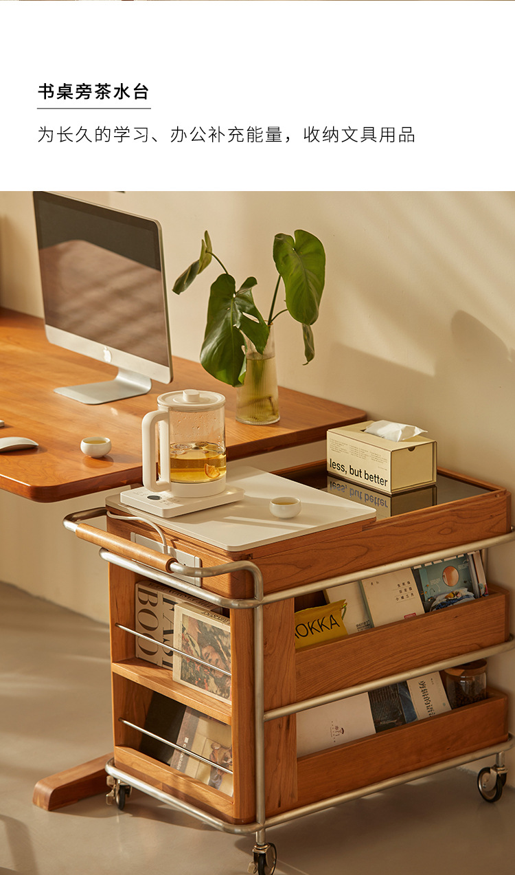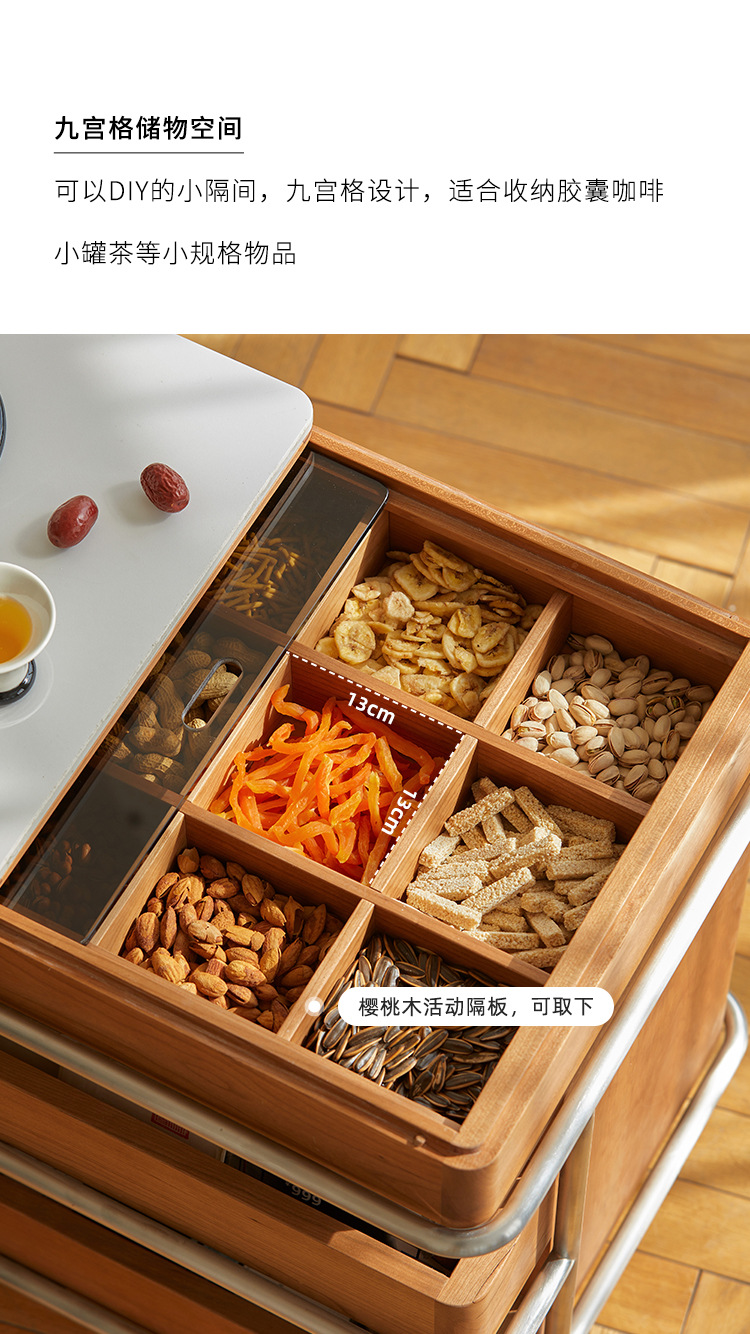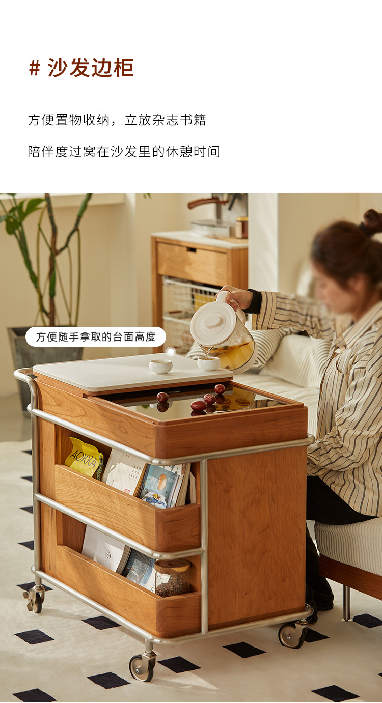 Mueble de té móvil de estilo antiguo, mesa de té, sofá, gabinete lateral, carrito, color de madera de cerezo, balcón de apartamento pequeño, mesa de té pequeña