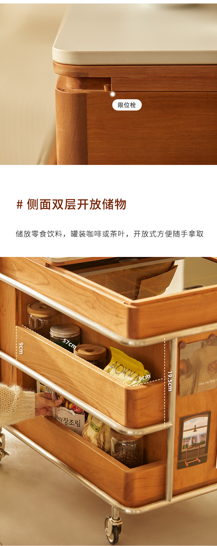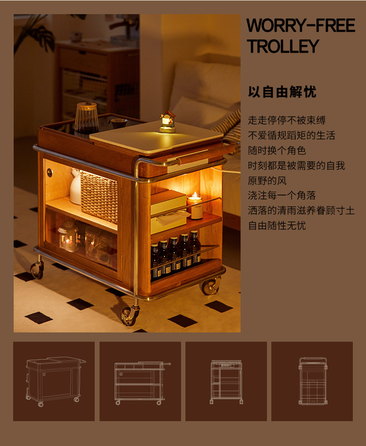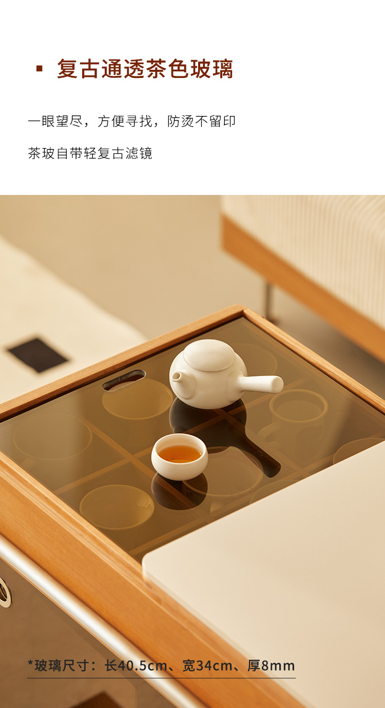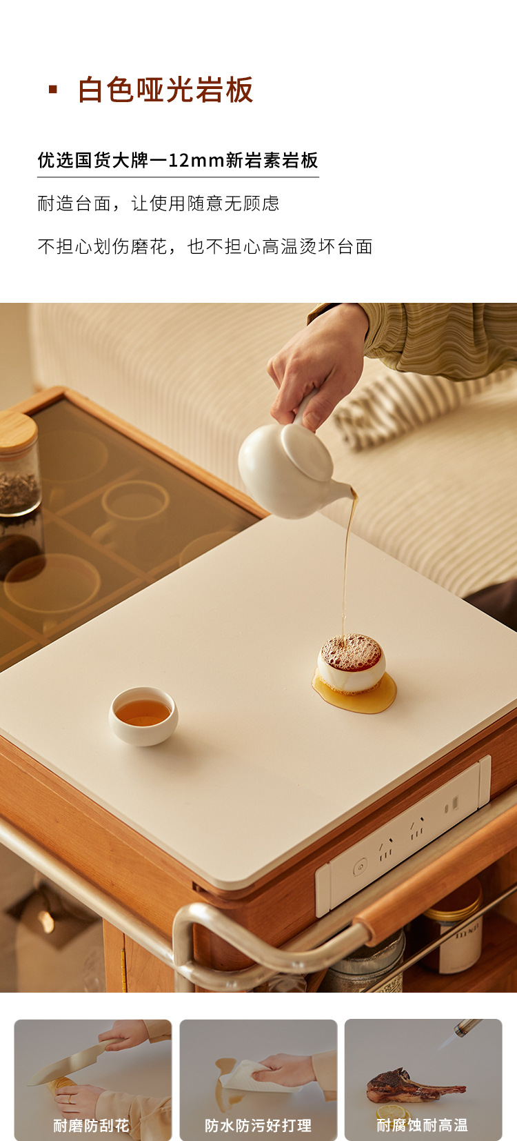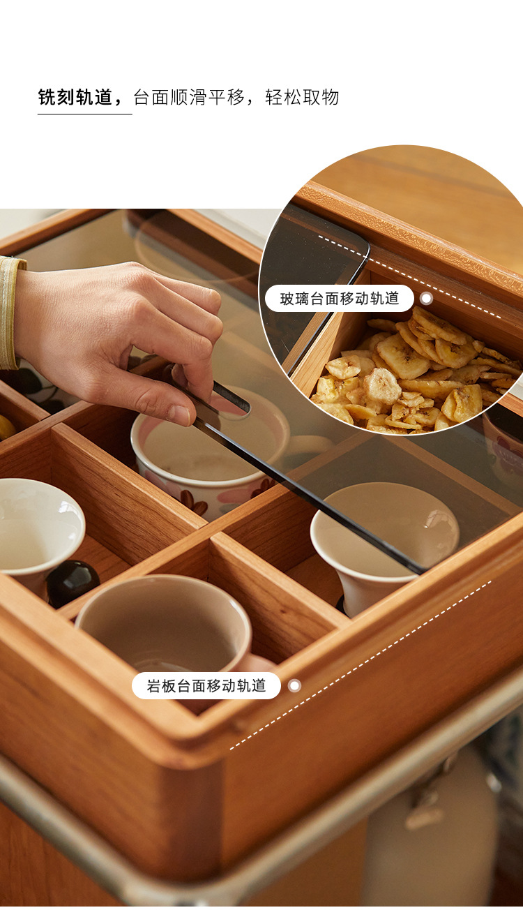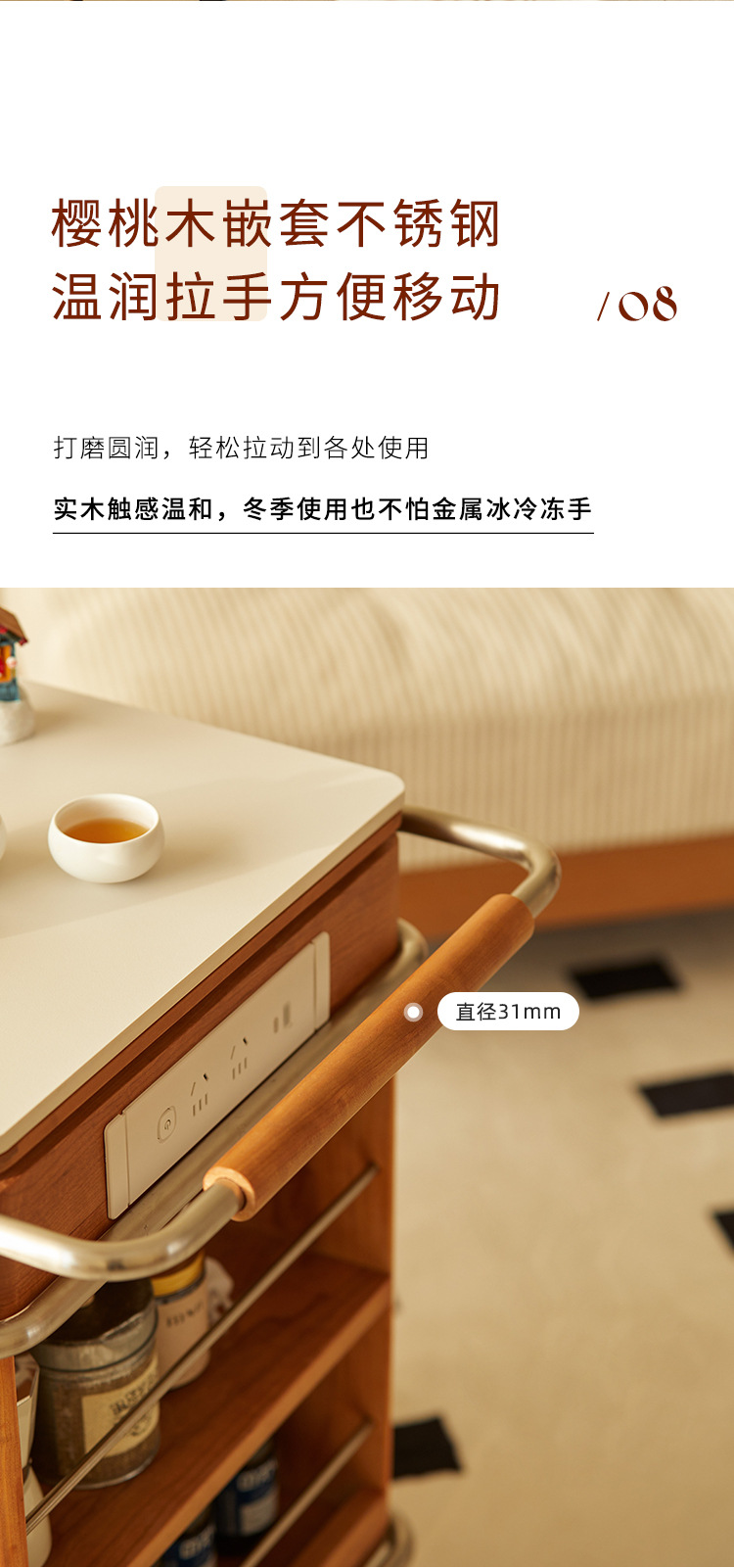 Mueble de té móvil de estilo antiguo, mesa de té, sofá, gabinete lateral, carrito, color de madera de cerezo, balcón de apartamento pequeño, mesa de té pequeña