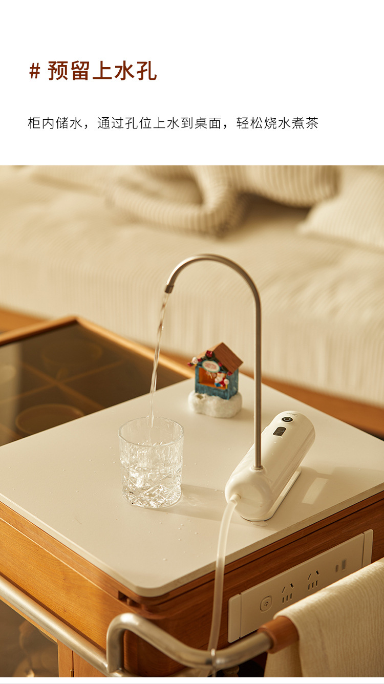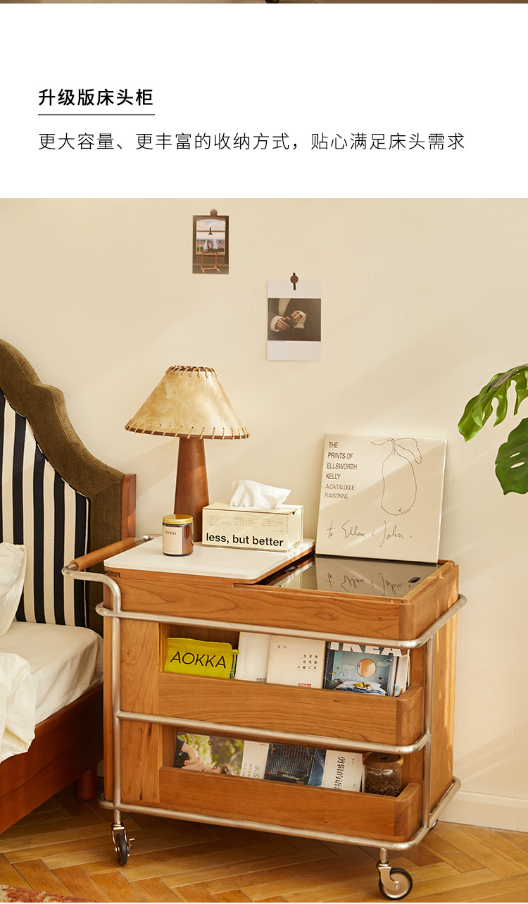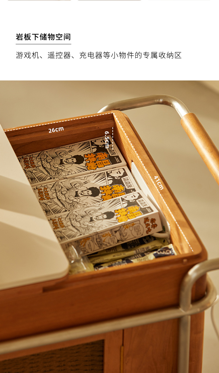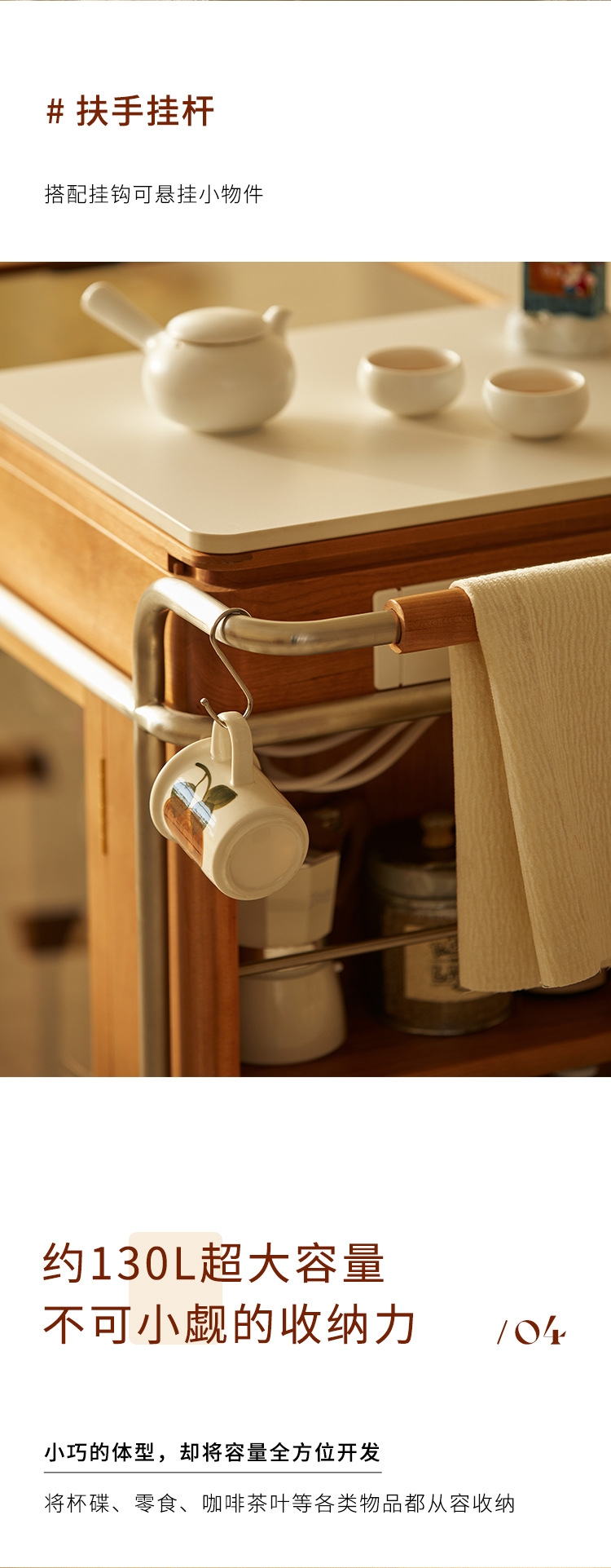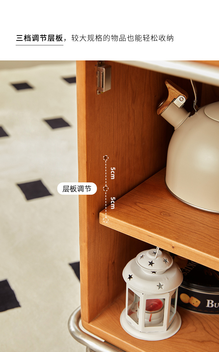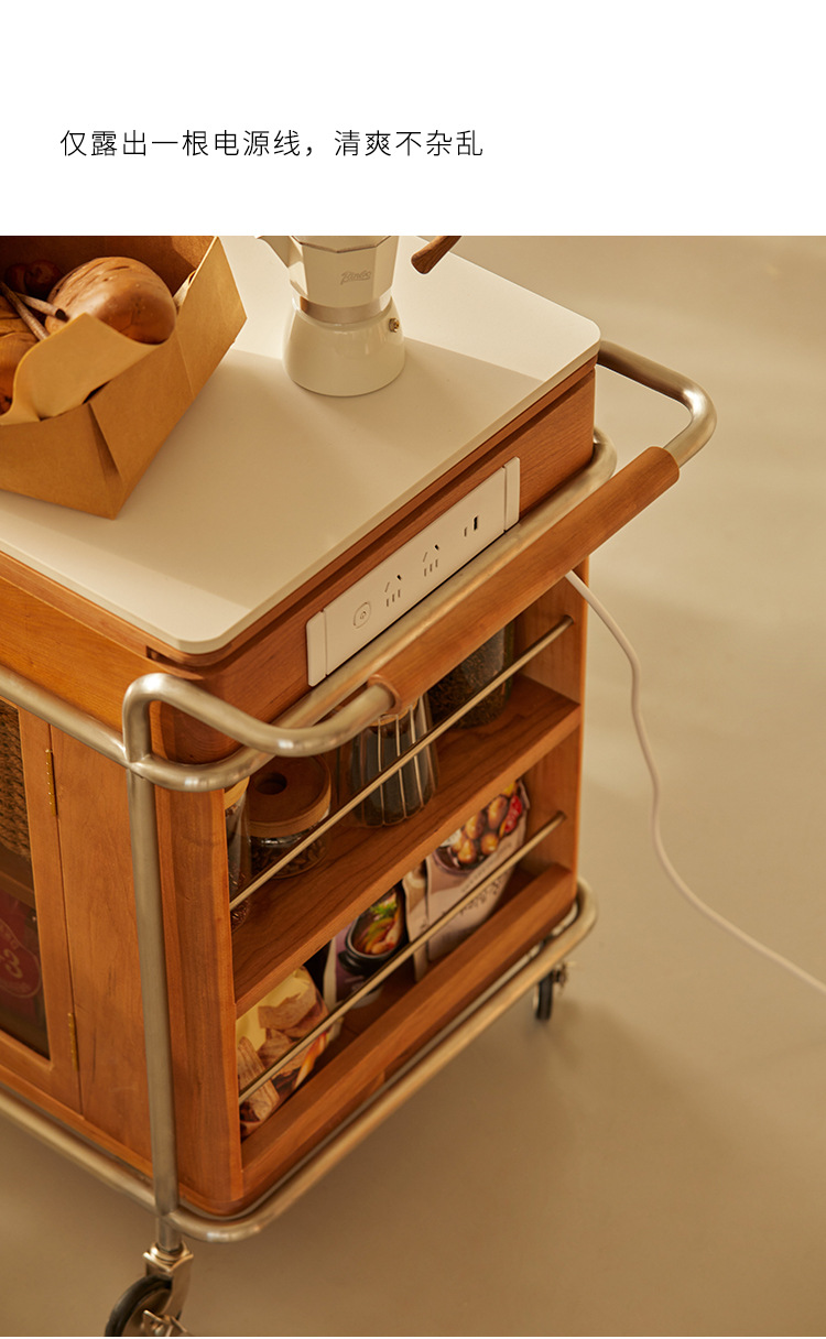 Mueble de té móvil de estilo antiguo, mesa de té, sofá, gabinete lateral, carrito, color de madera de cerezo, balcón de apartamento pequeño, mesa de té pequeña