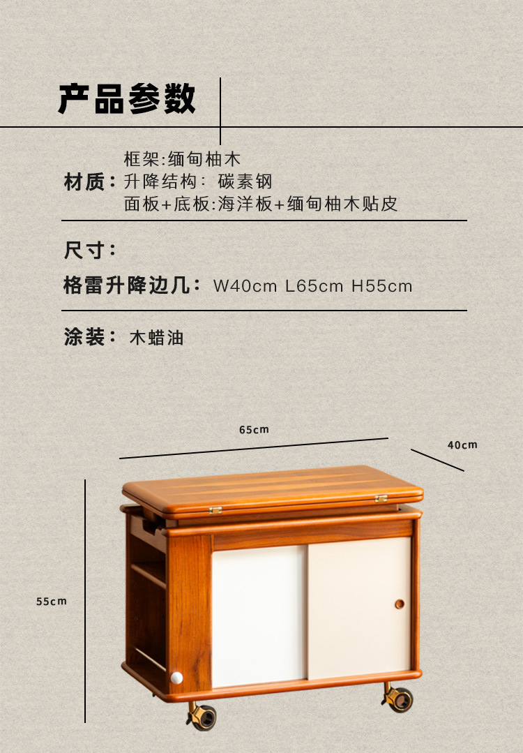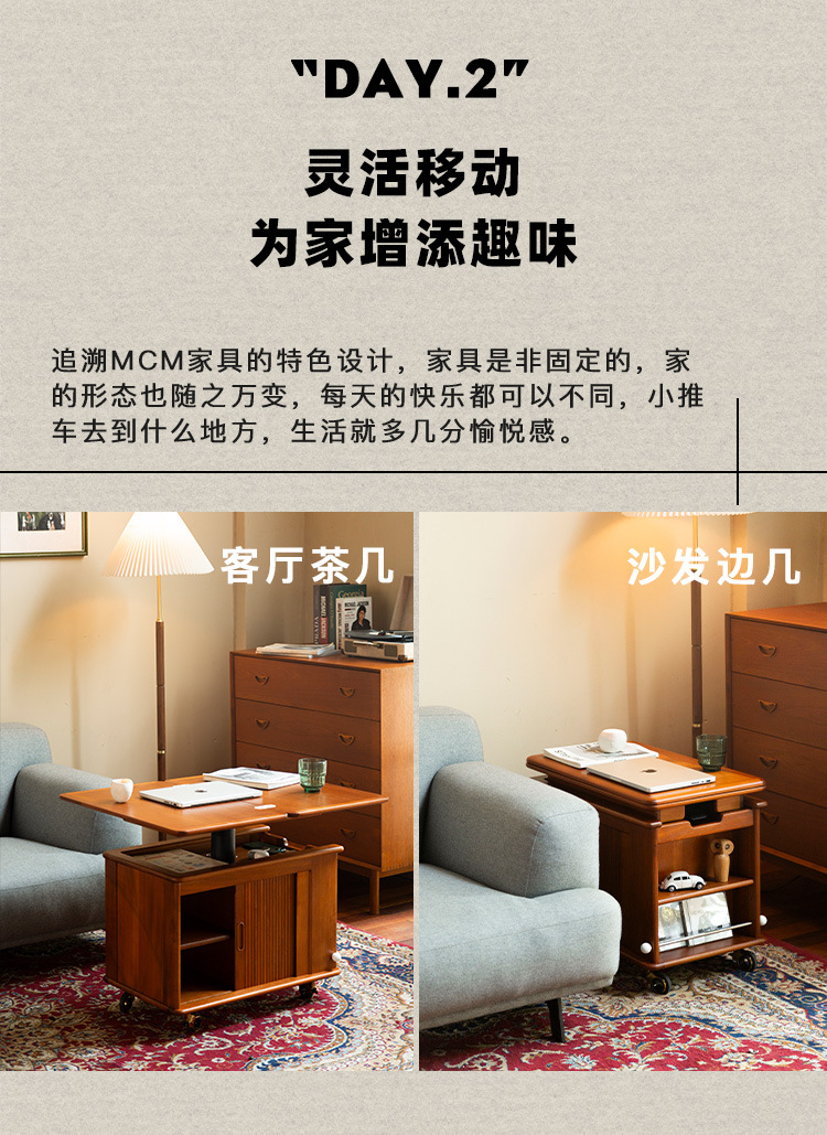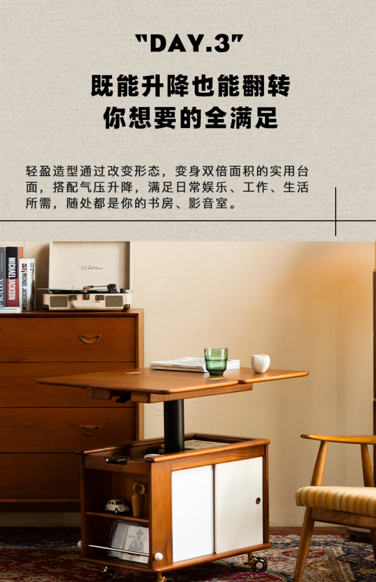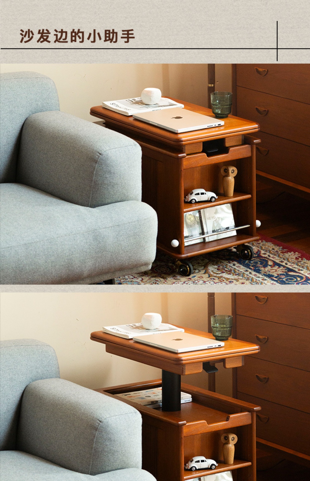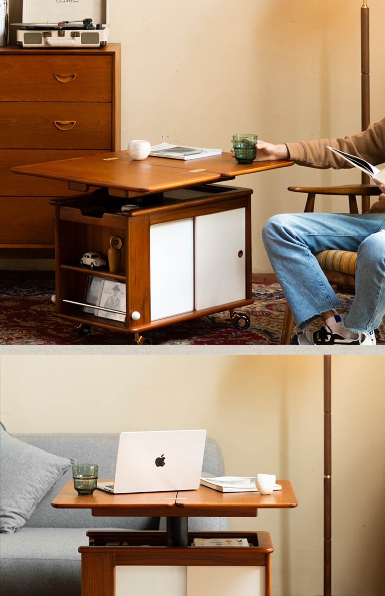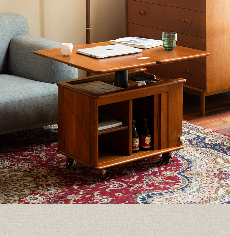 El carro de la mesa de centro plegable móvil de estilo antiguo se puede levantar, el sofá de la sala de estar del apartamento pequeño, el gabinete lateral, la mesa pequeña