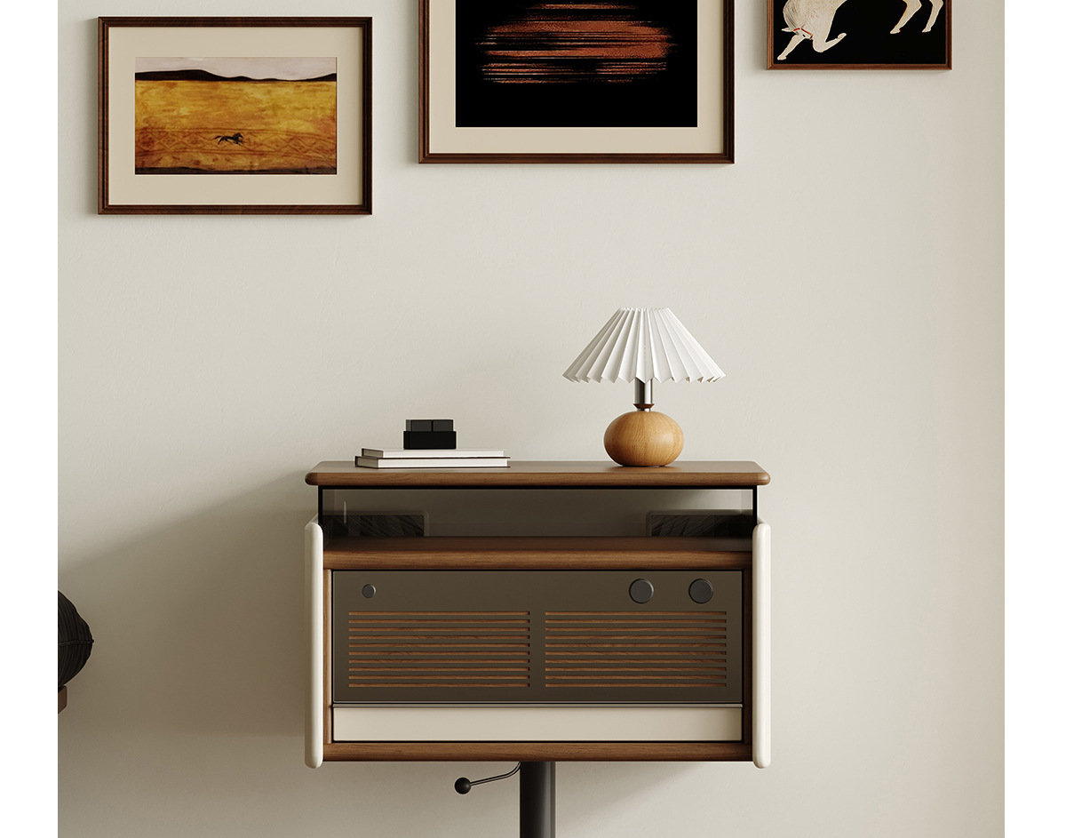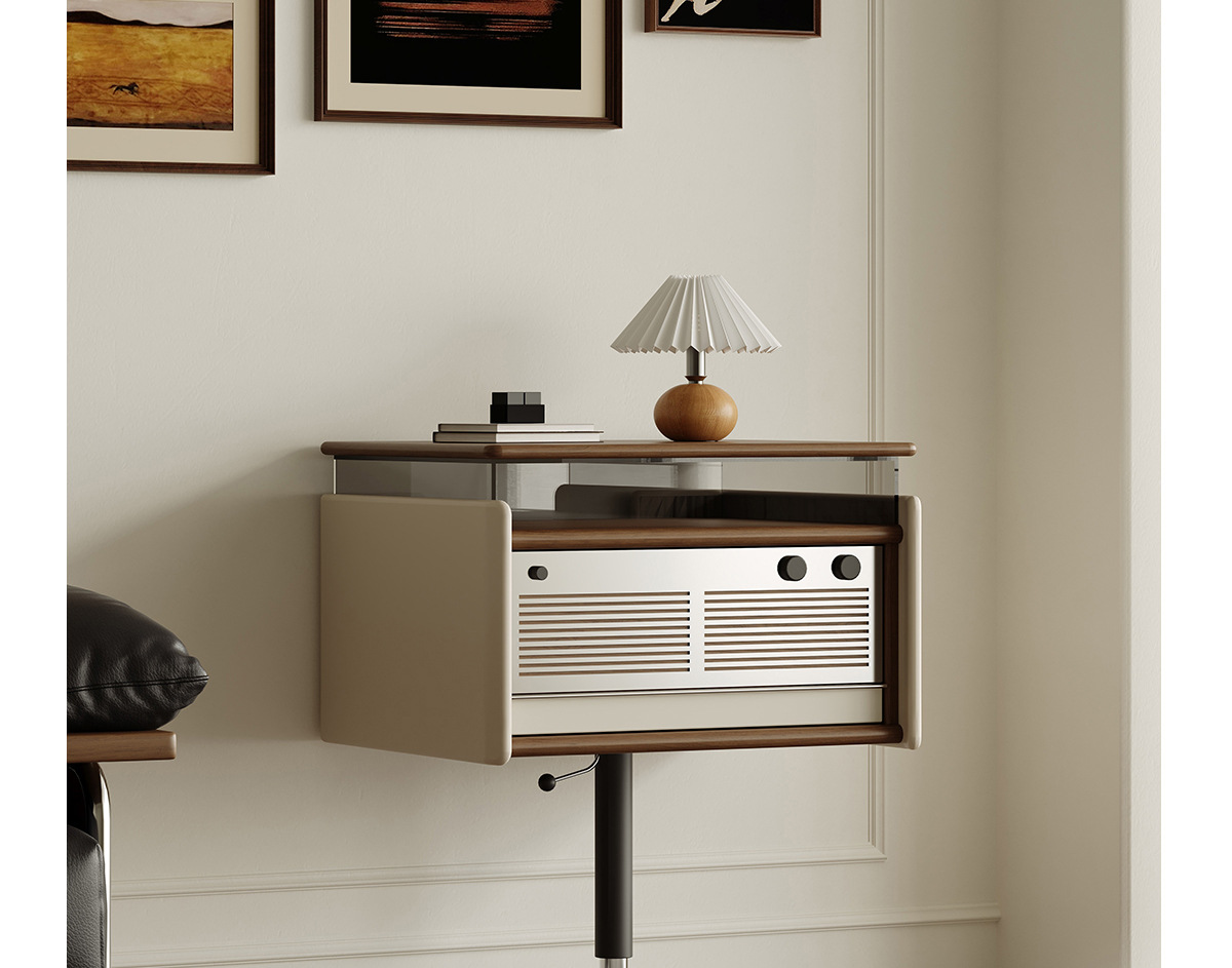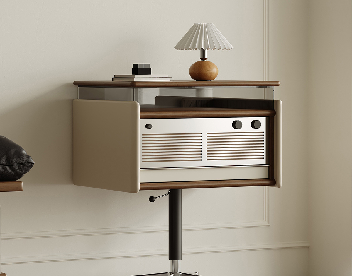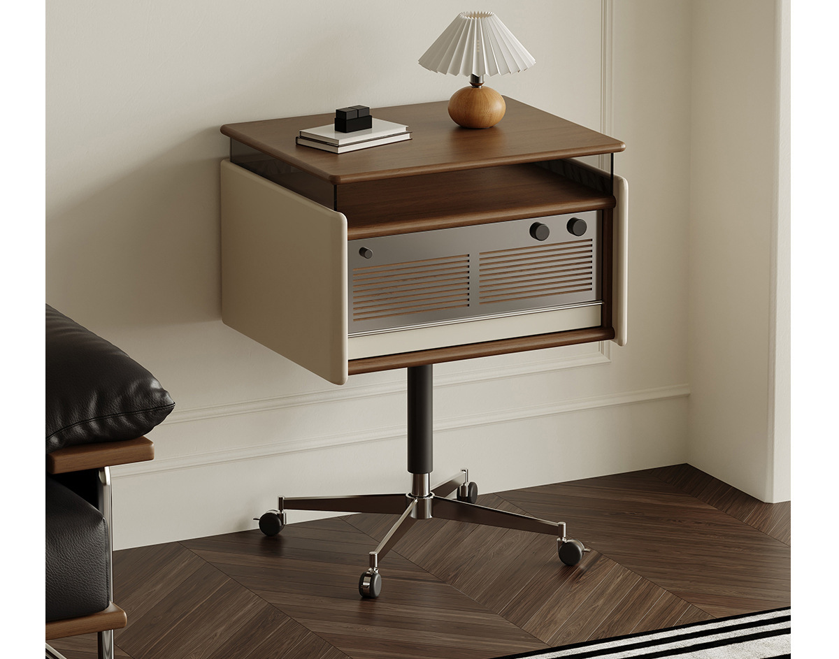 Elevación de madera maciza sofá giratorio mesa lateral mesita de noche de madera de cerezo sala de estar armario lateral de almacenamiento gabinete de disco retro móvil