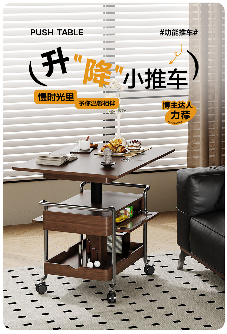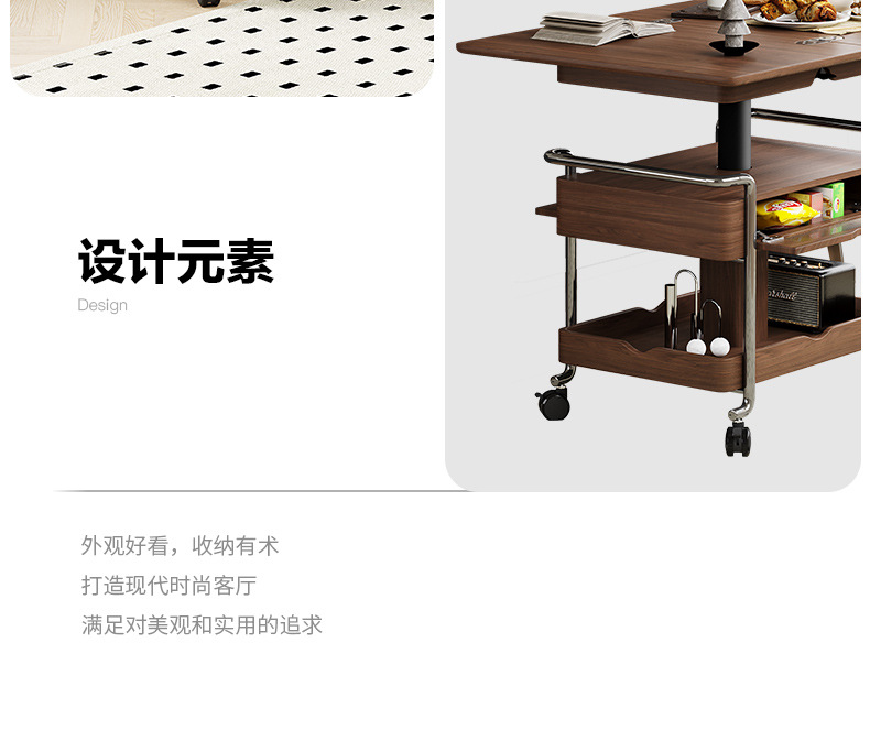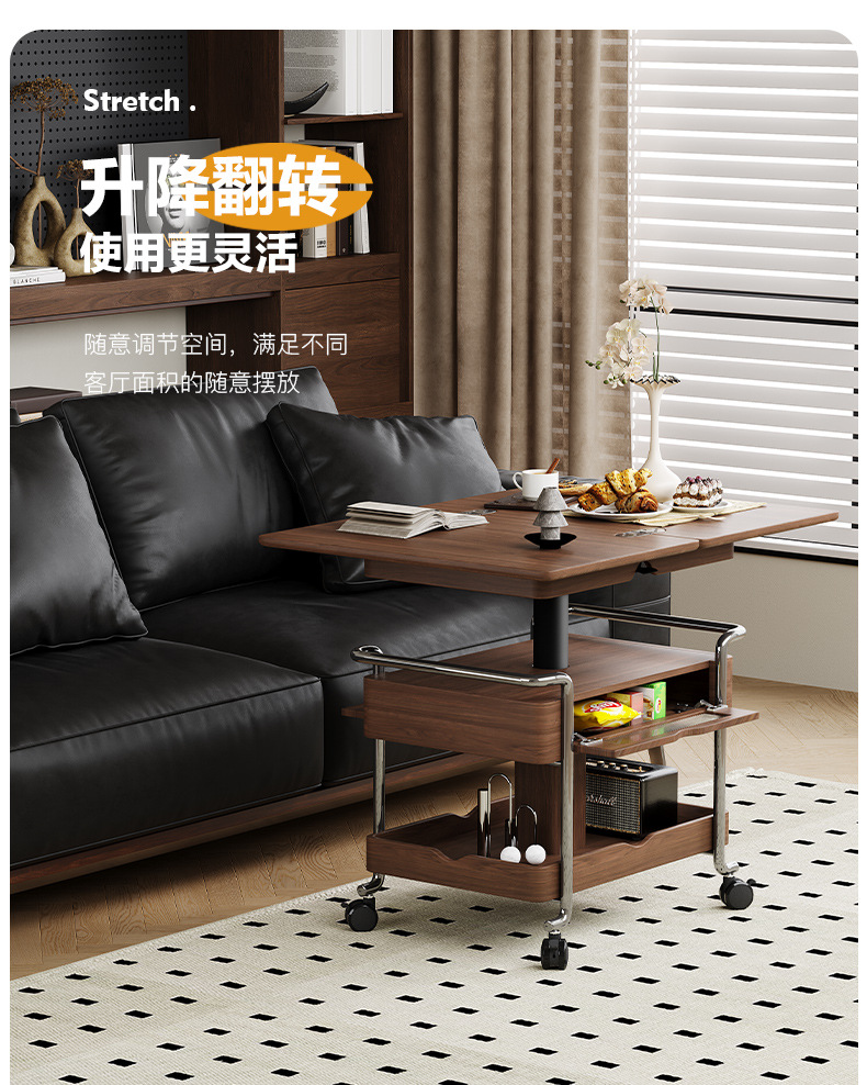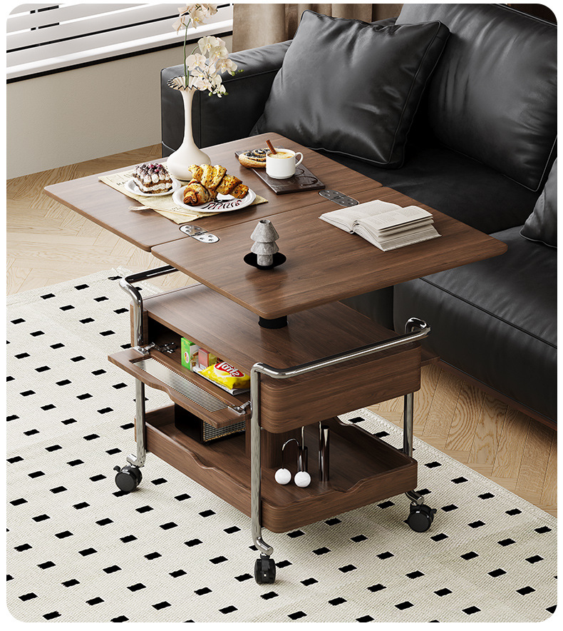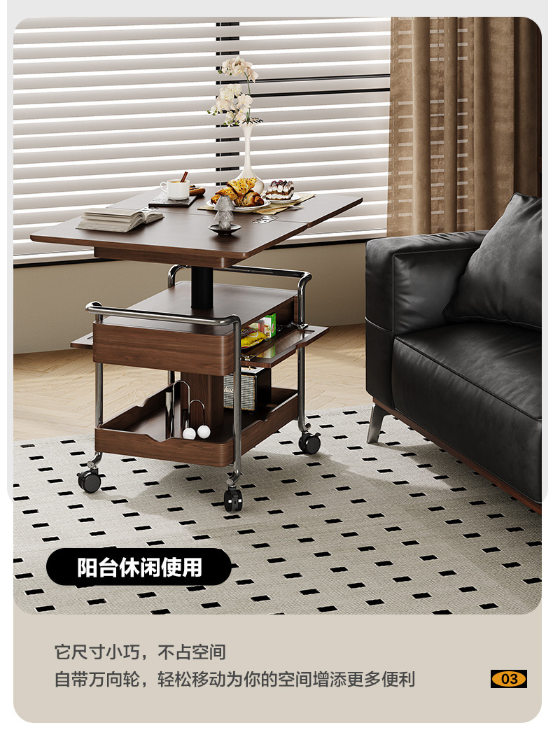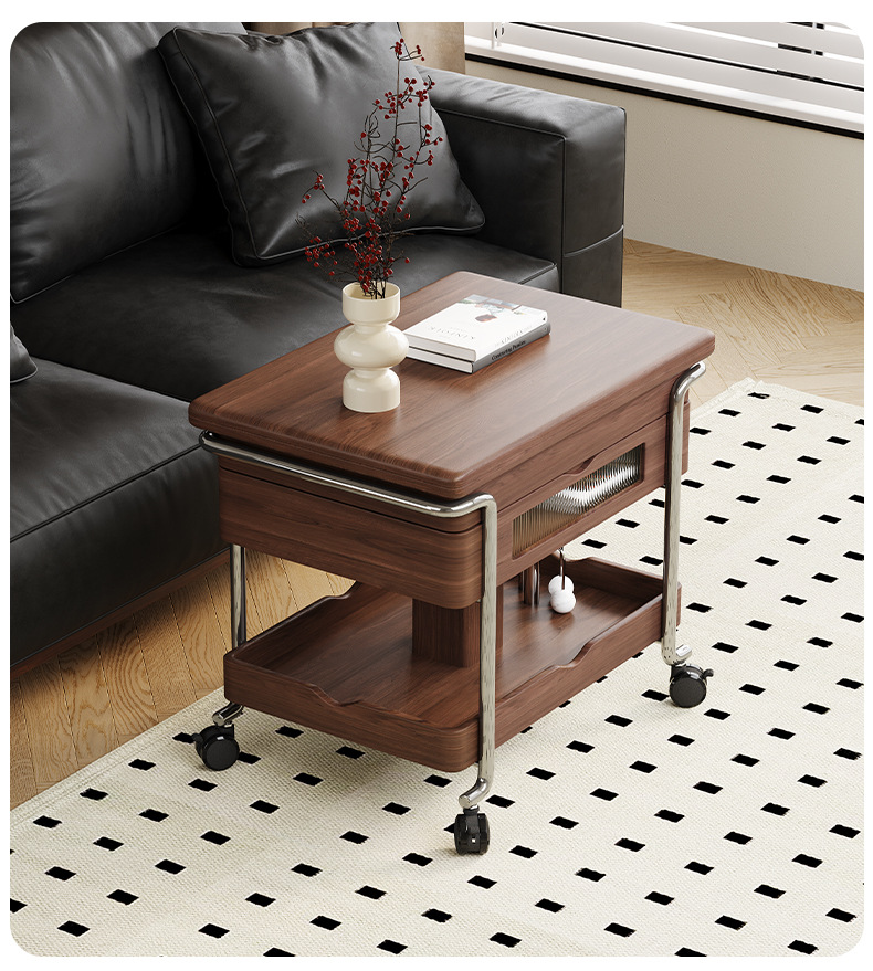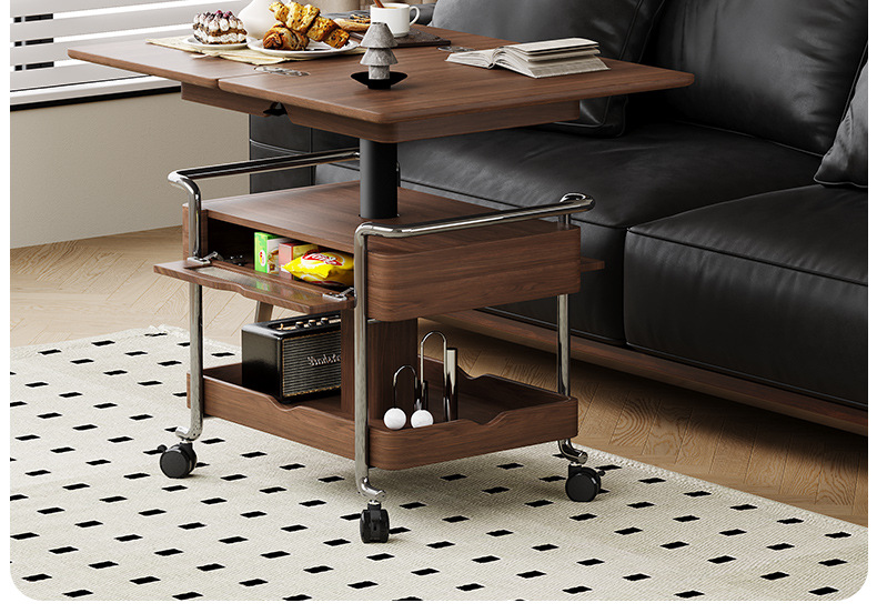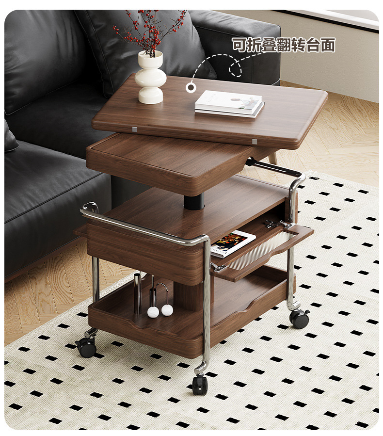 Carro medieval sala de estar con ruedas plegables móviles mesa móvil mesa de centro elevadora mesa lateral de sofá mesa lateral de cama