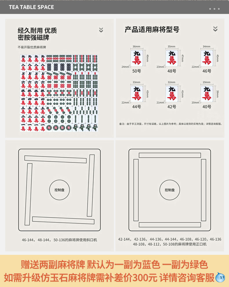 | Colores | Mesa de centro Mahjong [dos fichas de mahjong gratis],Mesa de centro Mahjong [Dos ruedas universales de mahjong gratis],Mesa de centro Mahjong [movimiento de control de luz ultravioleta _ dos fichas de mahjong gratis],Mesa de centro Mahjong [Movimiento de control de luz ultravioleta _ envíe dos fichas de mahjong _ rueda universal],Mesa de centro Mahjong [Dos fichas de mahjong gratis] _ Silla trasera * 4,Mesa de centro Mahjong [Dos fichas Mahjong gratis _ Wheel universal] _ Silla trasera * 4,Mesa de centro Mahjong [Movimiento de control de luz ultravioleta _ Dos fichas de mahjong gratis] _ Silla trasera * 4,Mesa de centro Mahjong [movimiento de control de luz ultravioleta _ dos fichas de mahjong gratis _ rueda universal] _ silla trasera * 4 |