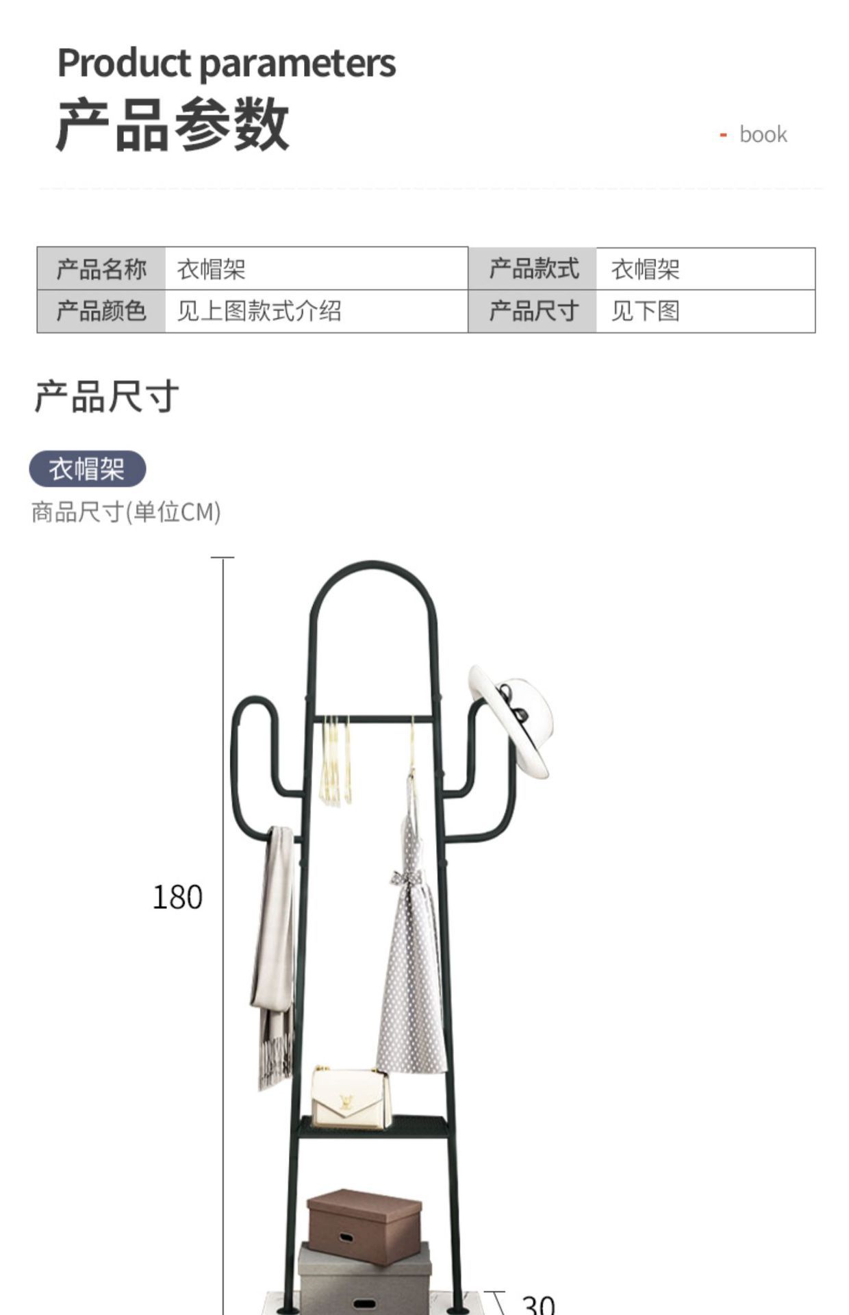 北欧轻奢衣帽架落地家用多功能挂衣架创意仙人掌晾衣架客厅置衣架