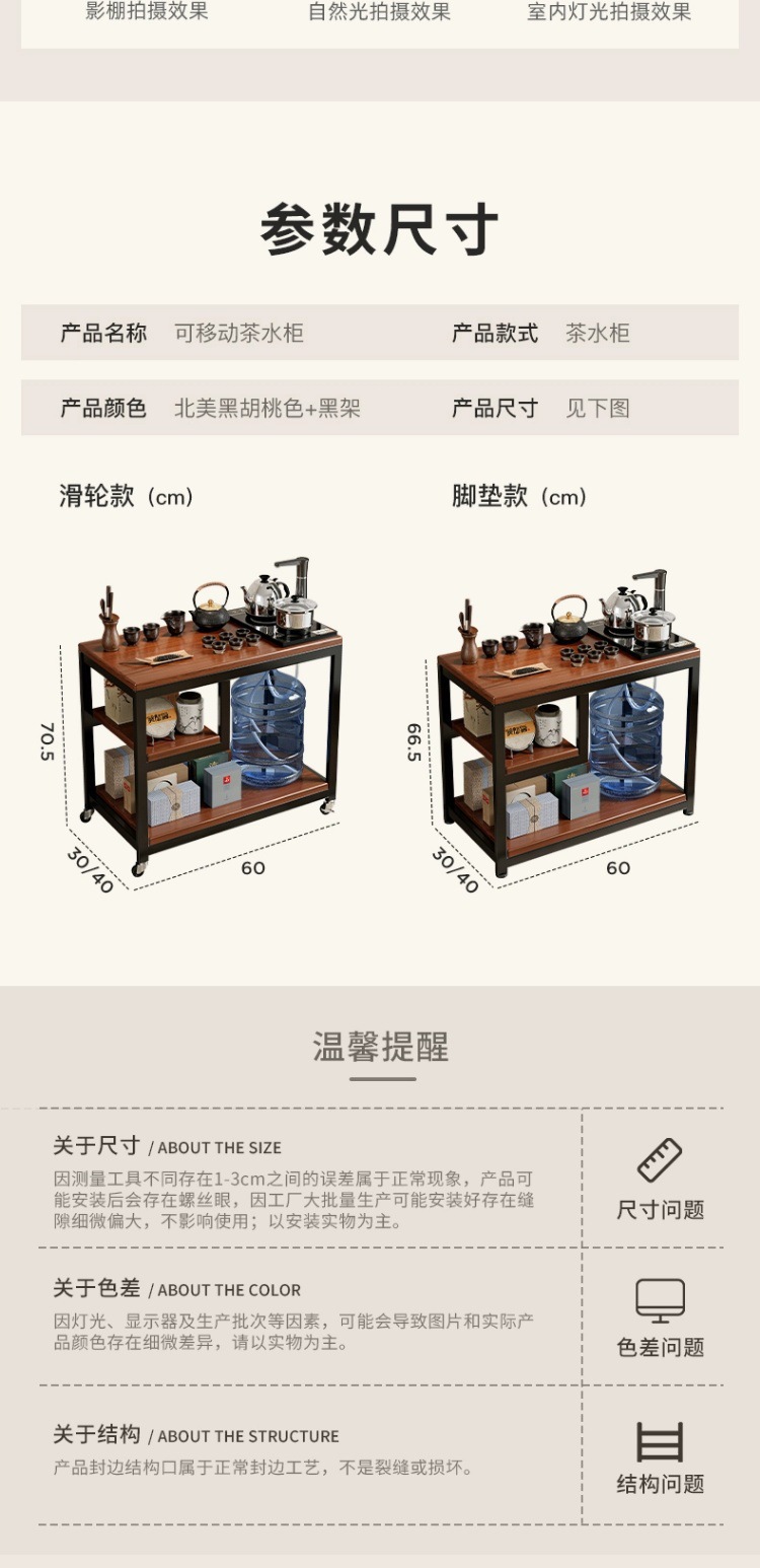 | Colores | [Tablero ecológico de madera maciza engrosada] 60*30*70,5 cm Marco negro de nogal negro norteamericano [con rueda silenciosa],[Tablero ecológico de madera maciza engrosada] 60*40*70,5 cm Marco negro de nogal negro norteamericano [con rueda silenciosa],[Con hervidor automático] [Tablero ecológico de madera maciza mejorado] 60*30*70,5 cm Marco negro de nogal negro norteamericano [con rueda silenciosa],[Con hervidor automático] [Tablero ecológico de madera maciza mejorado] 60*40*70,5 cm Marco negro de nogal negro norteamericano [con rueda silenciosa] |