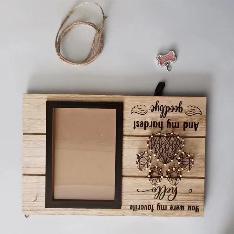 En stock de madera para mascotas marco de fotos Mesa creativa mascota perro colgante Marco de Fotos Perro pies sinuoso conmemorativo