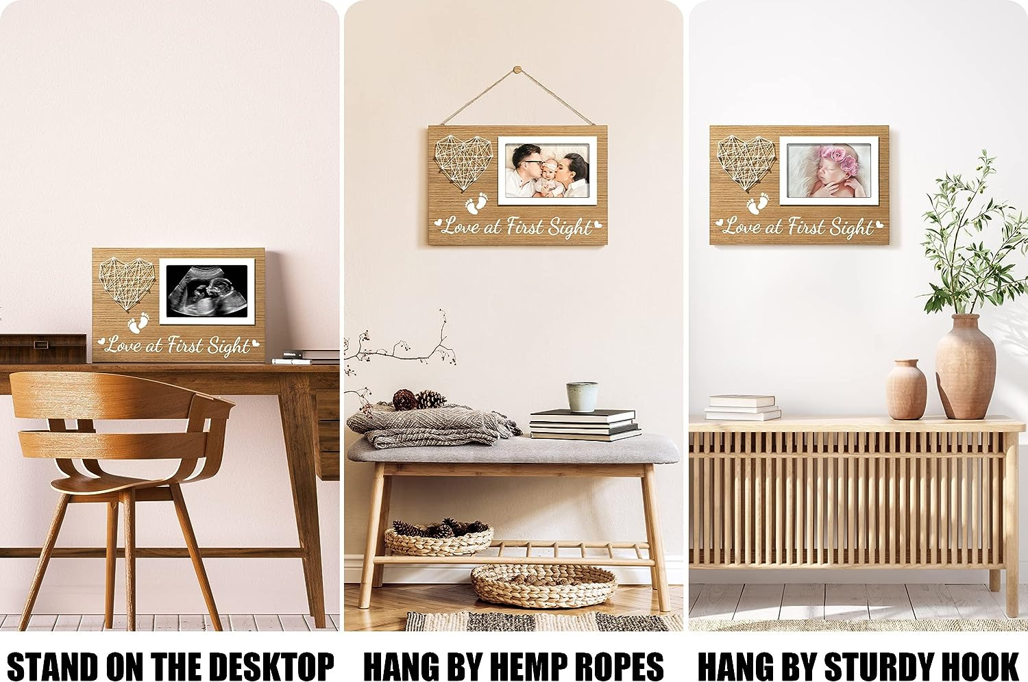Marco de fotos de madera para mascotas Decoración de mesa creativa mesa de bebé colgante marco de fotos estrella en forma de corazón Luna bebé bobinado