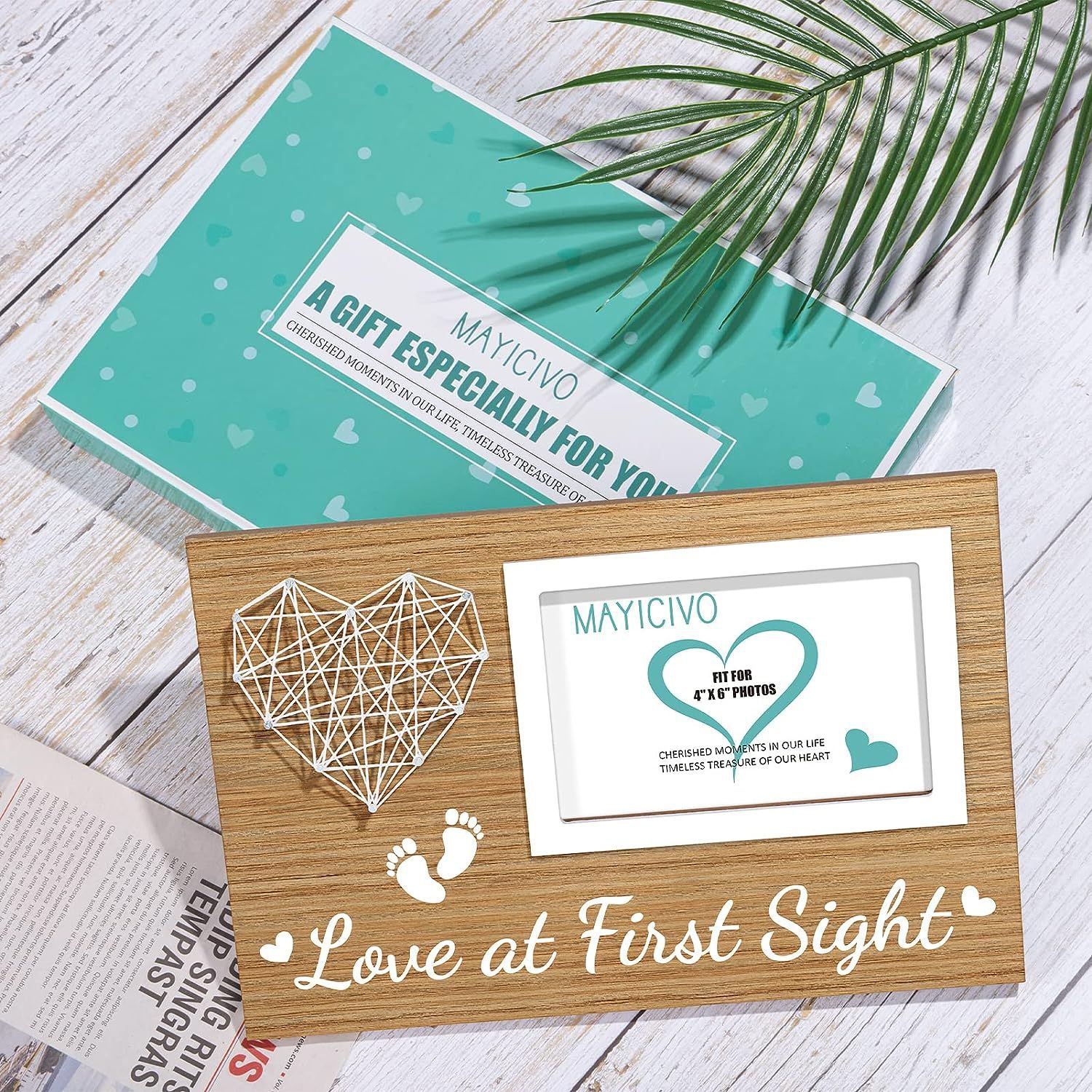 Marco de fotos de madera para mascotas Decoración de mesa creativa Decoración de mesa de bebé marco de fotos en forma de corazón doble latido bobinado