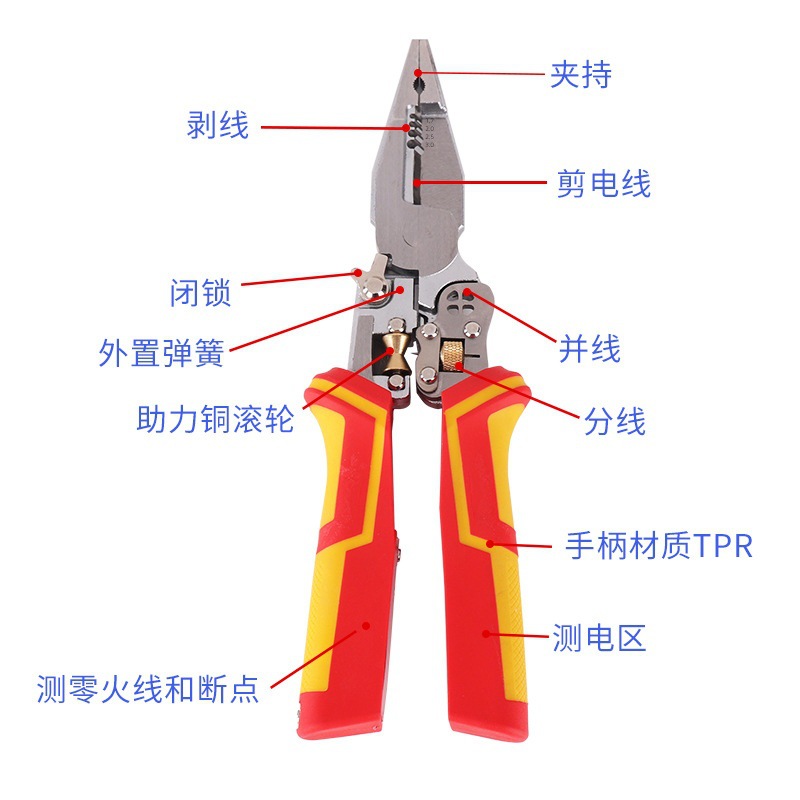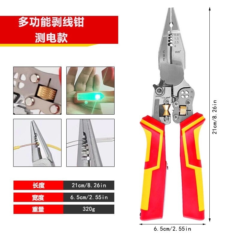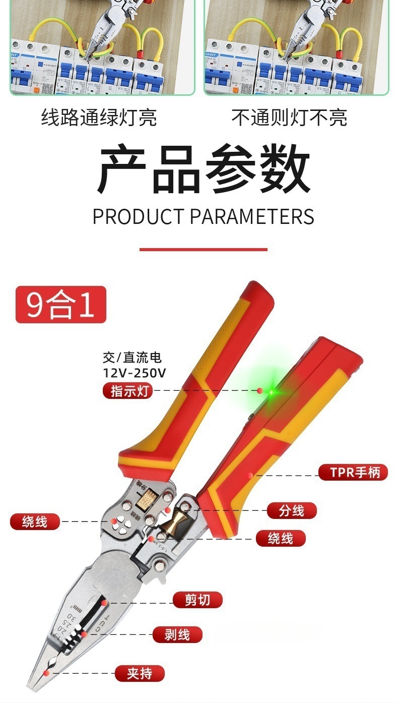 Alicates para electricitador 9 en 1 (prueba de potencia)