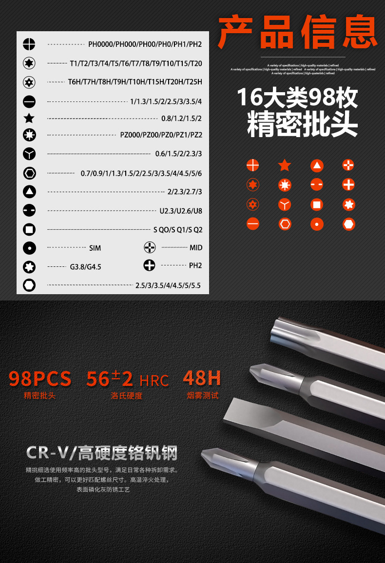 Juego de destornillador 115 en uno destornillador magnético fuerte de alta dureza herramienta de reparación de desmontaje de cabezal de lote de forma especial multifuncional