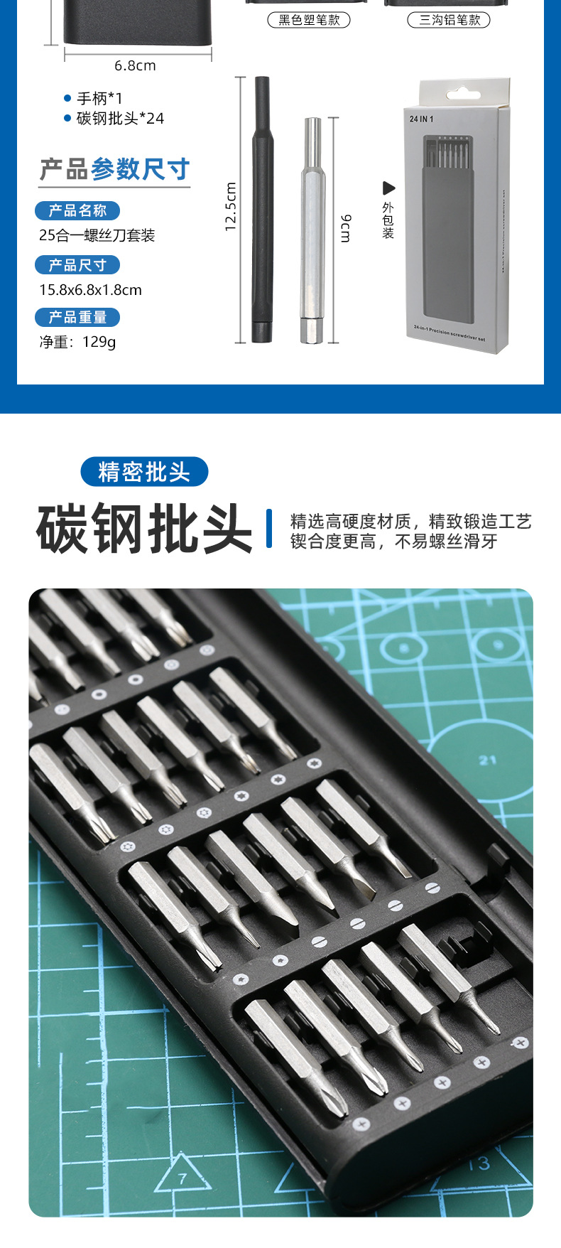 Juego de destornillador 25 en uno con hebilla de lápiz de plástico,Juego de destornillador 25 en uno con hebilla de lápiz de aluminio