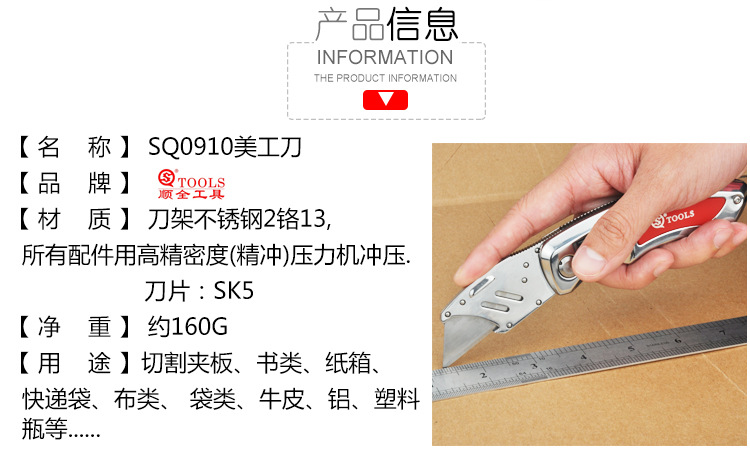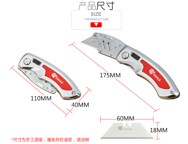 Cuchillo plegable SQ Shunquan SQ0910 con cuchillo de papel pesado Cuchillo manual Hoja reemplazable