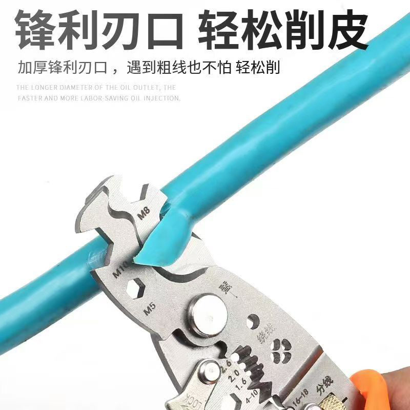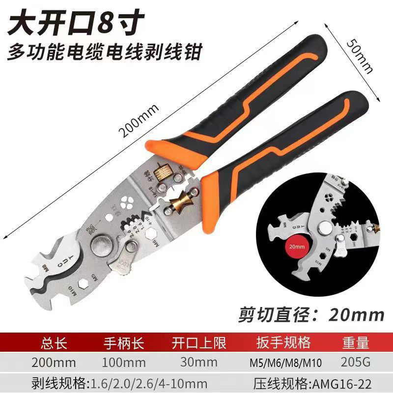 Cable de gran apertura transfronterizo de 8 pulgadas, cable eléctrico, pelado multifuncional, pelado, pelado, pelado, pelado, pelado, alambre de corte, alicates de alambre