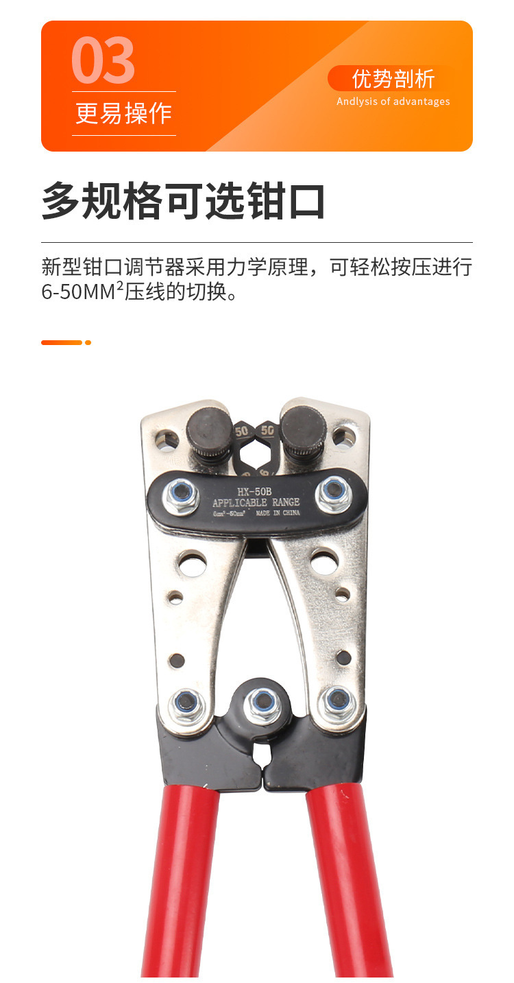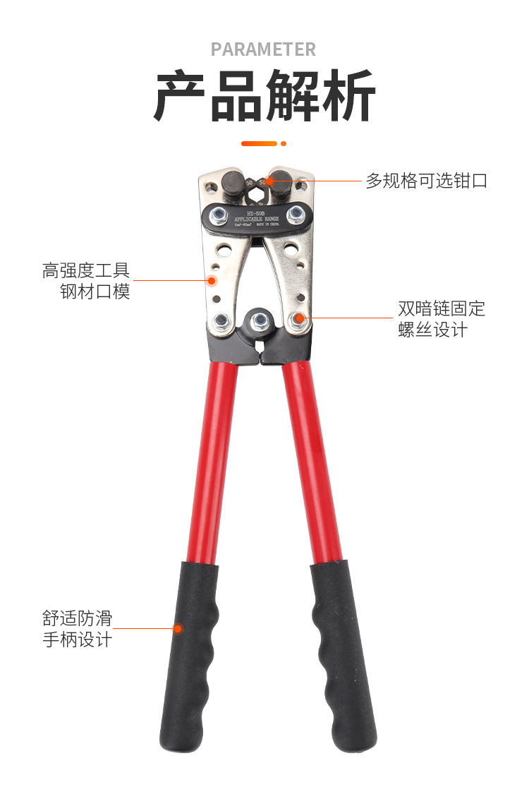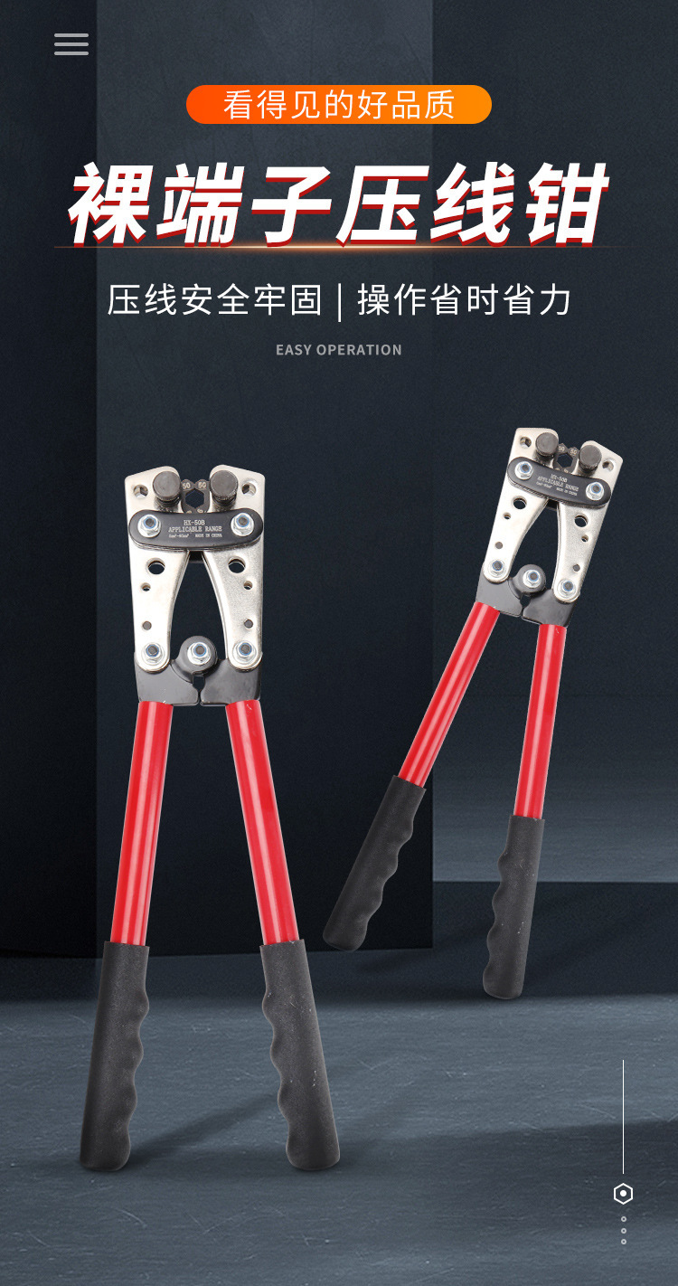 Alicates de engarzamiento grandes que ahorran mano de obra de HX-50B, alicates de terminal de prensado en frío manual para nariz de cobre, alicates de engarzamiento especiales para electricistas