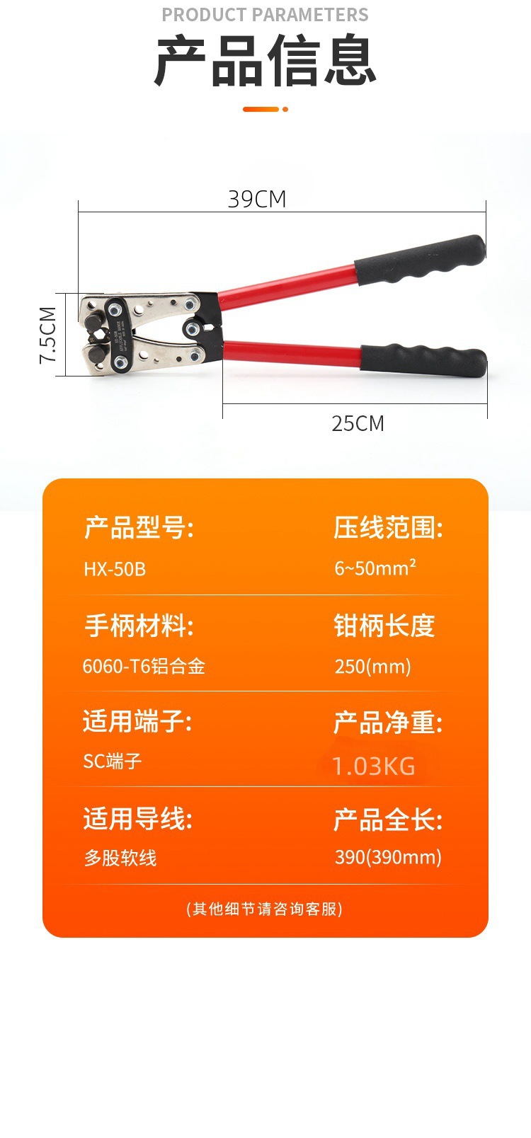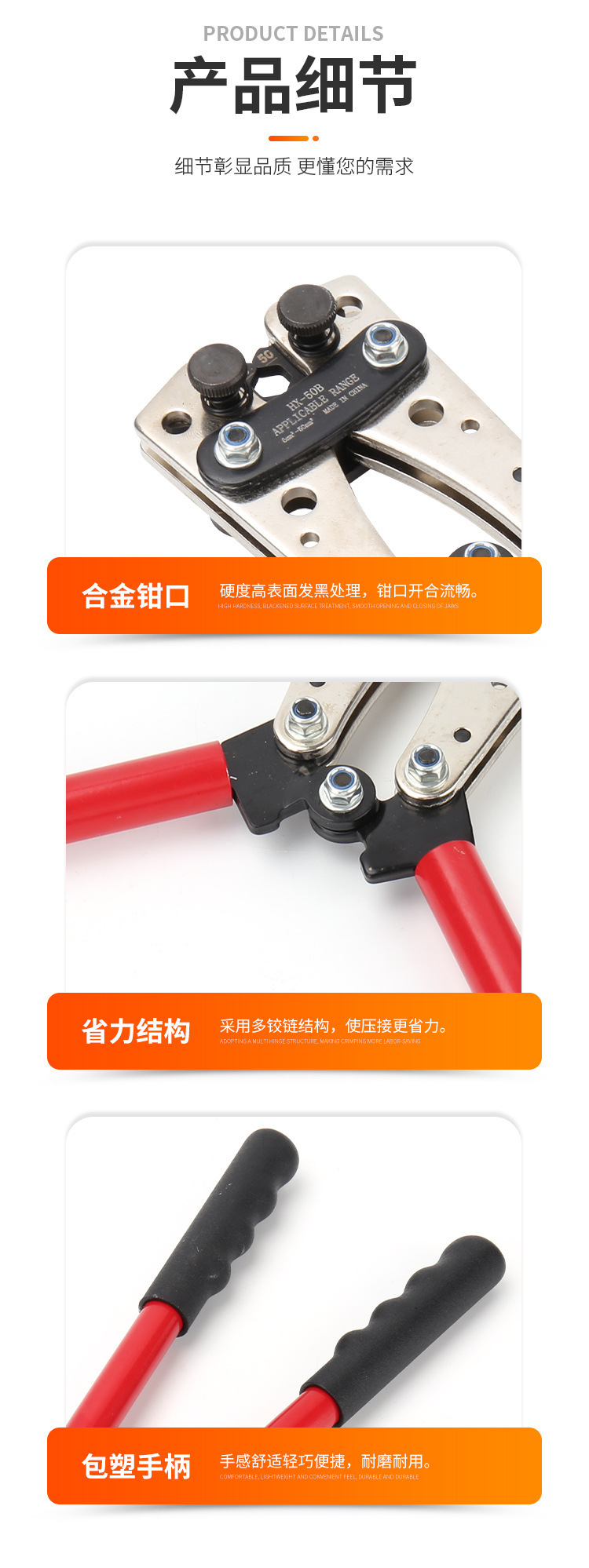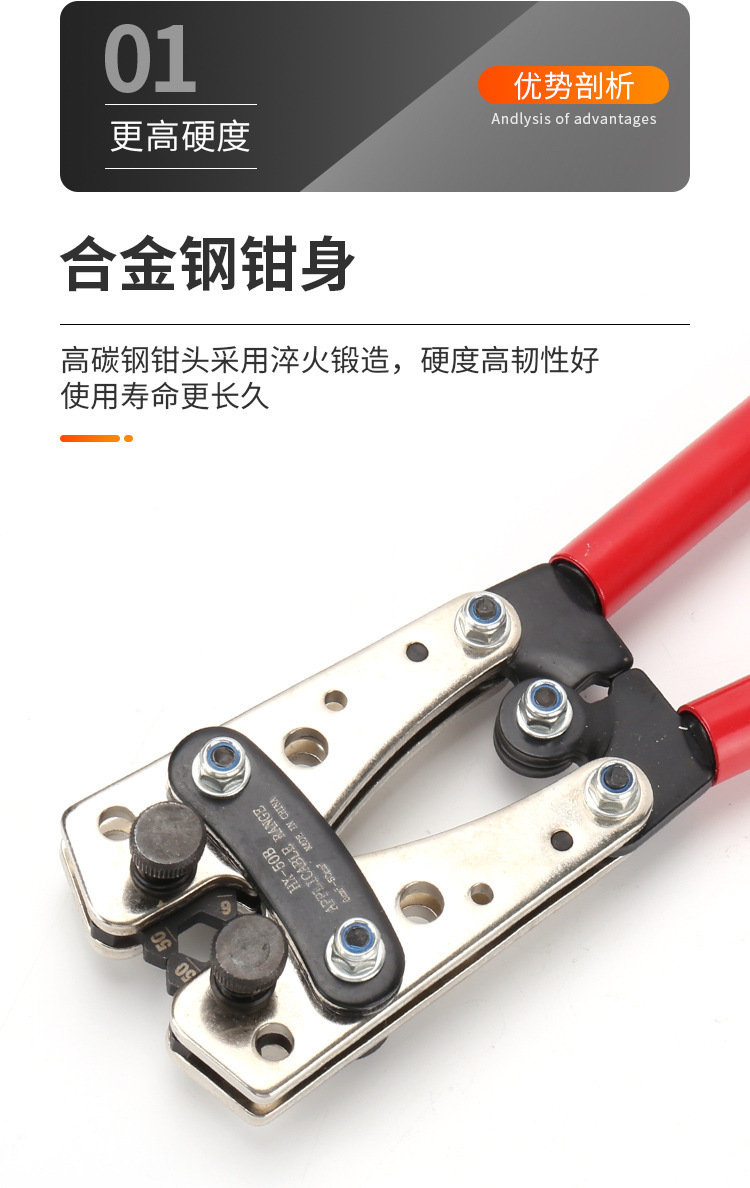 Alicates de engarzamiento grandes que ahorran mano de obra de HX-50B, alicates de terminal de prensado en frío manual para nariz de cobre, alicates de engarzamiento especiales para electricistas